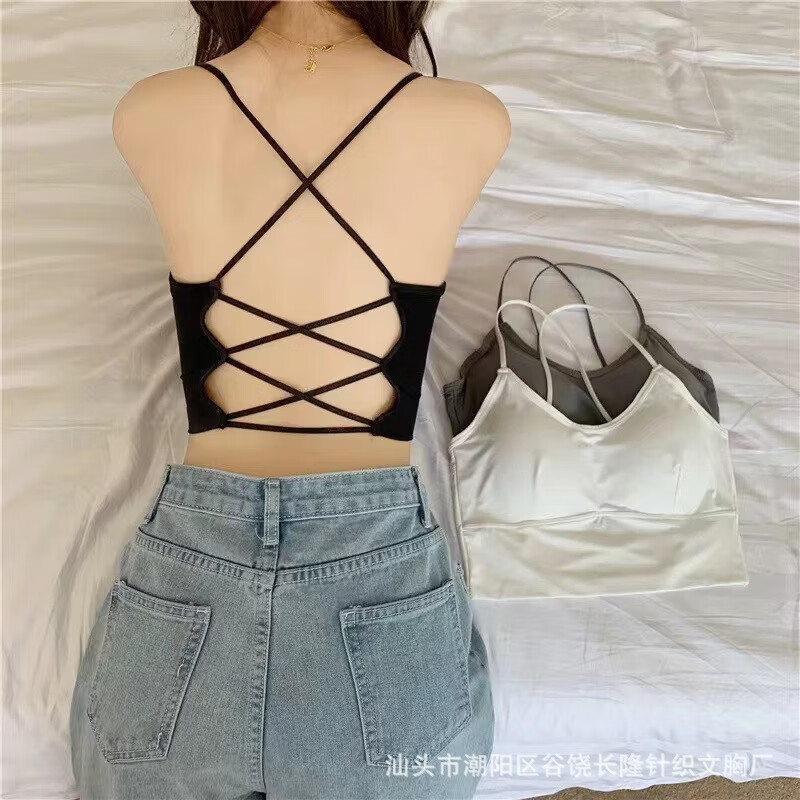 2023 Spring and Summer New Ice Silk Cross Beautiful Back Sexy Underwear Women's Push-Up Latex Cup Can Be Weared Outside Camisole White One Size (80-130Jin Jin is equal to 0.5 kg