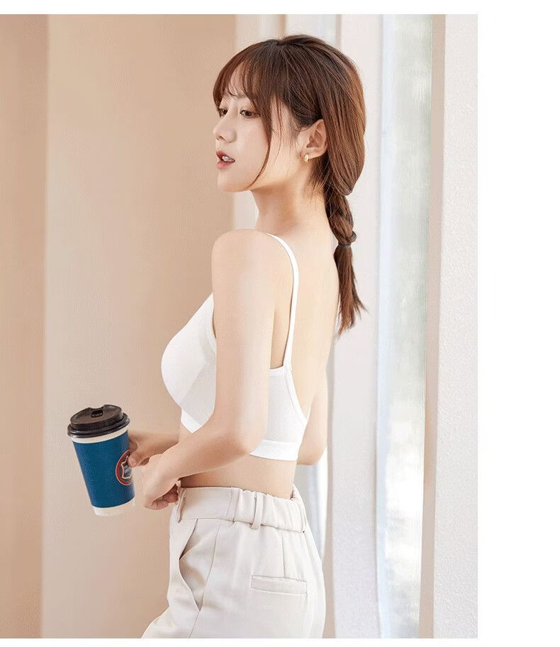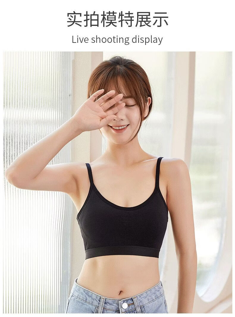 Camisole vest female student beautiful back sports bra one-piece no rims anti-tube top push-up anti-sagging bra quality version white S recommended 70-90Jin Jin equals 0.5 kg