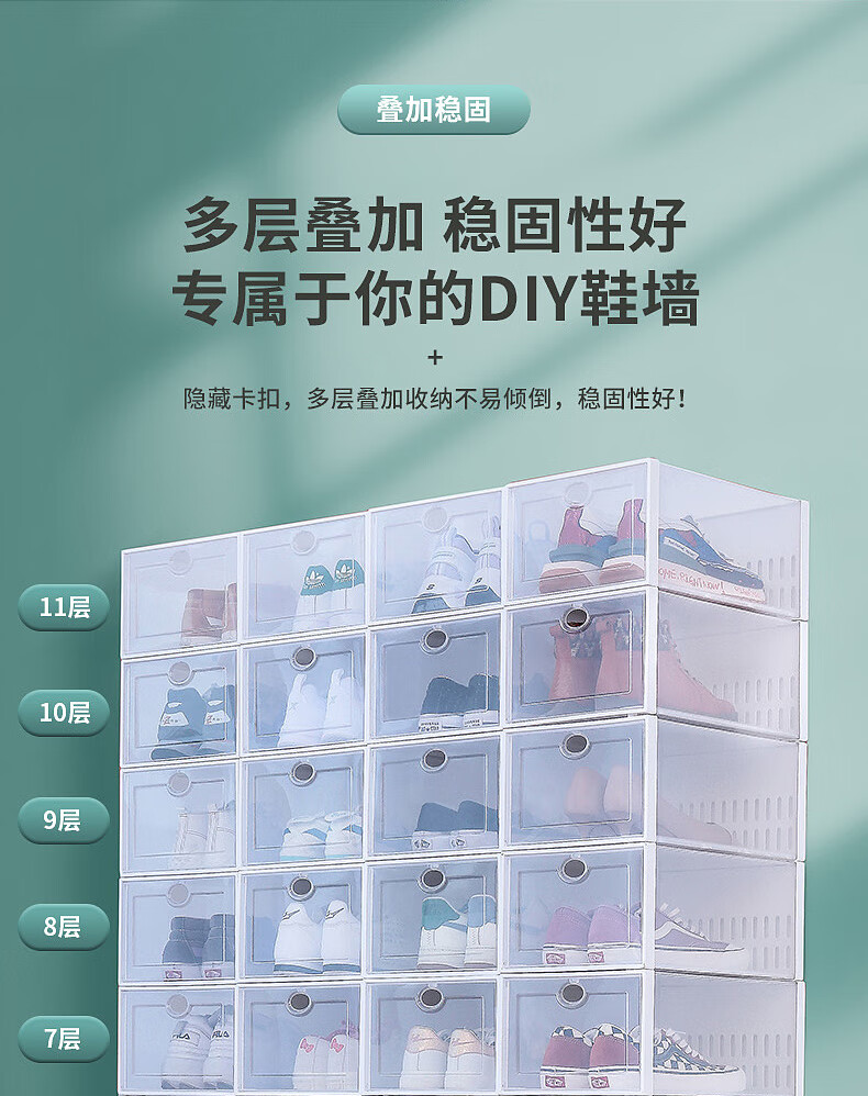 Sailotou thickened shoe box transparent drawer-type shoe storage box shoe box shoe cabinet storage box simple shoe rack black transparent white thickened shoe box 16 pieces