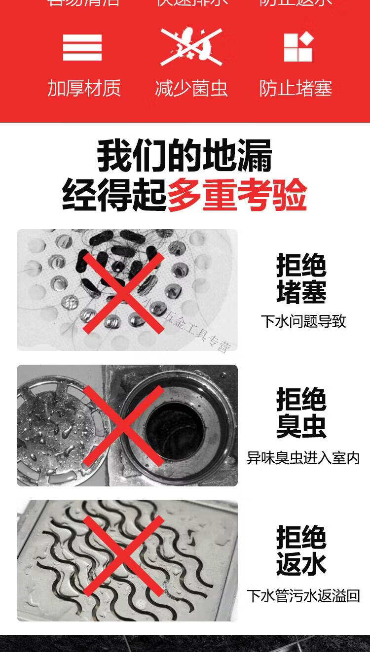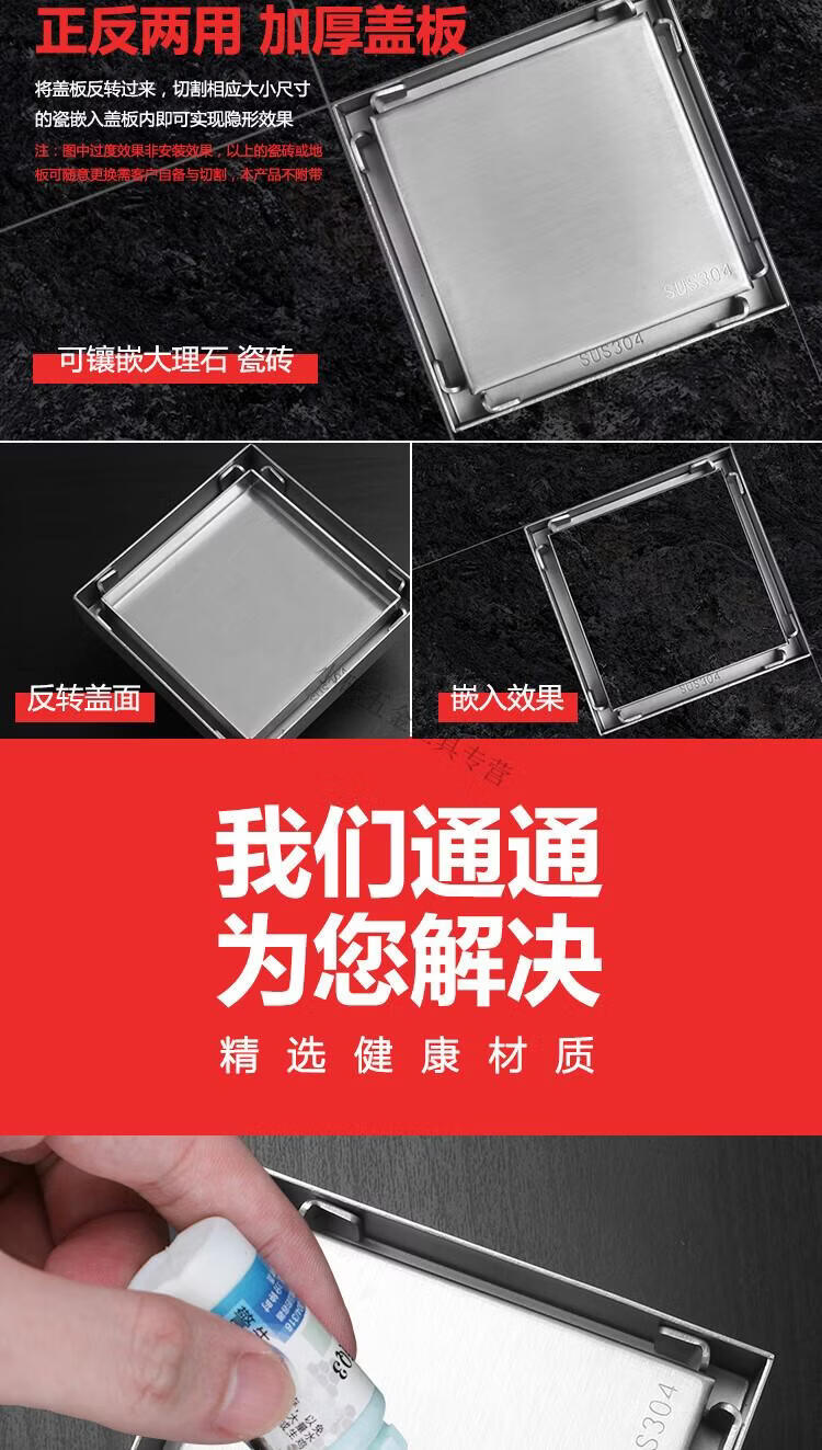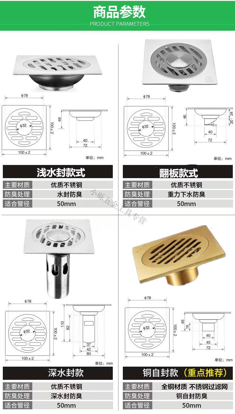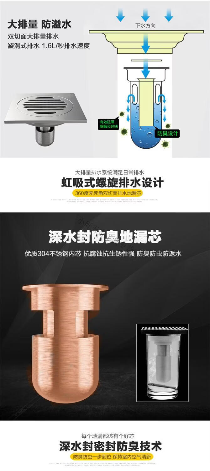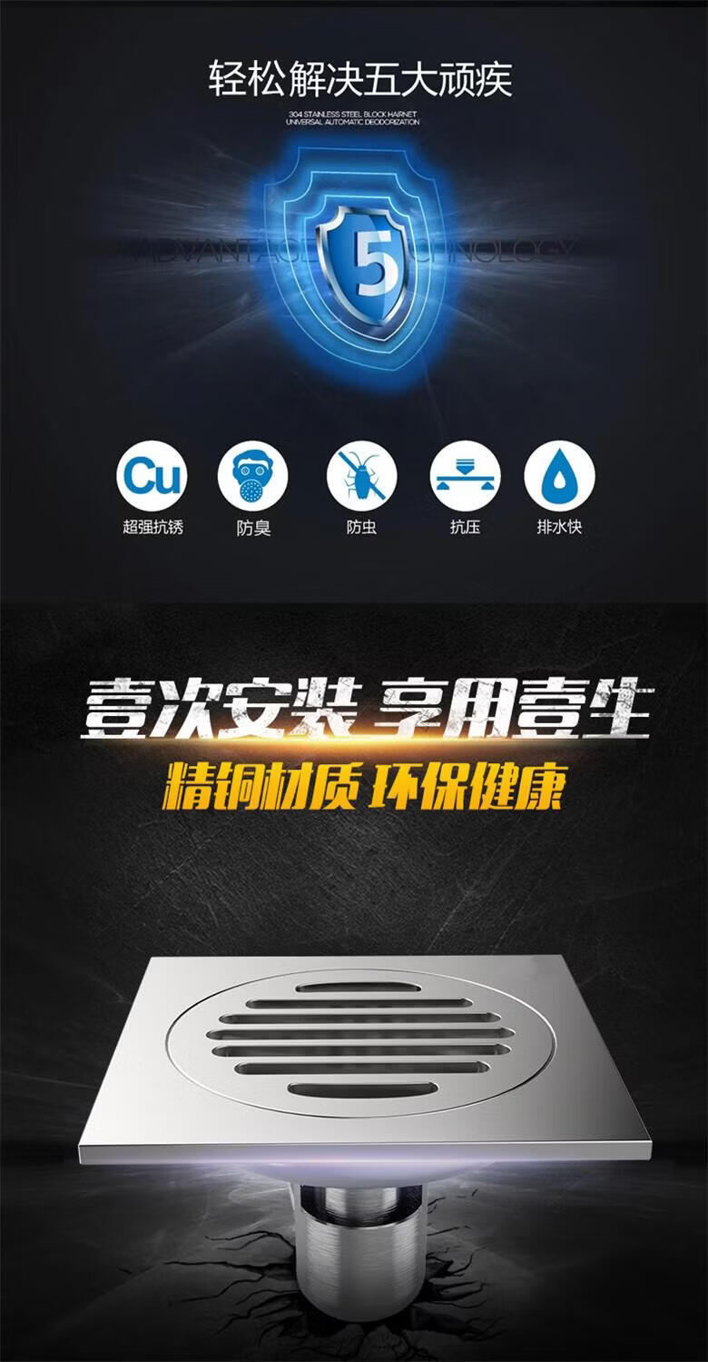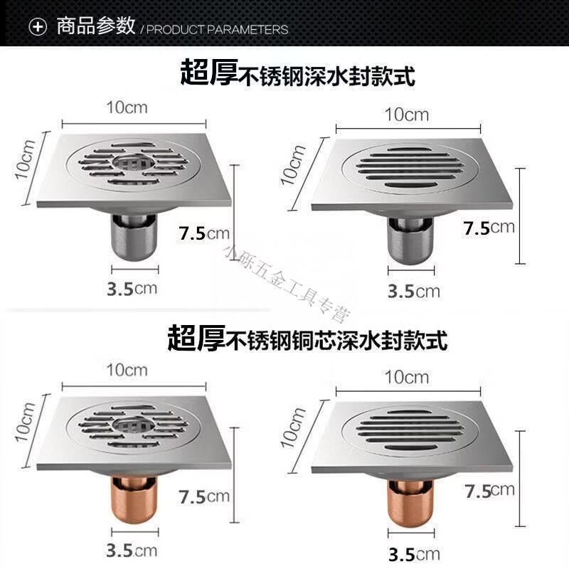 Yingtang floor drain anti-odor round square stainless steel bathroom sewer insect-proof balcony three-way washing machine all-copper floor drain square single use 10cm ultra-thick stainless steel deep water seal anti-odor and anti-blocking