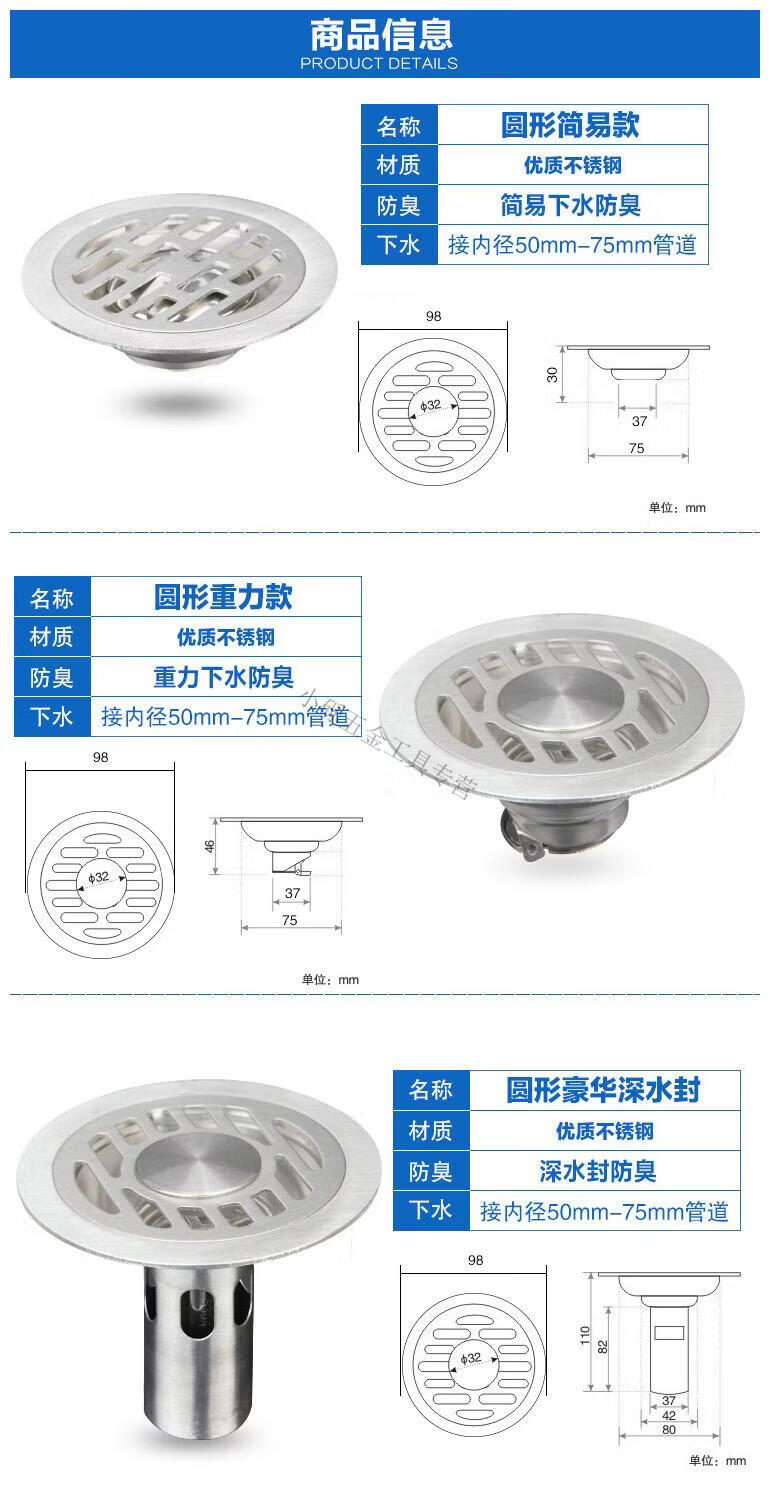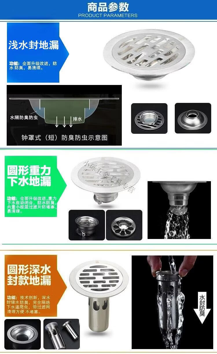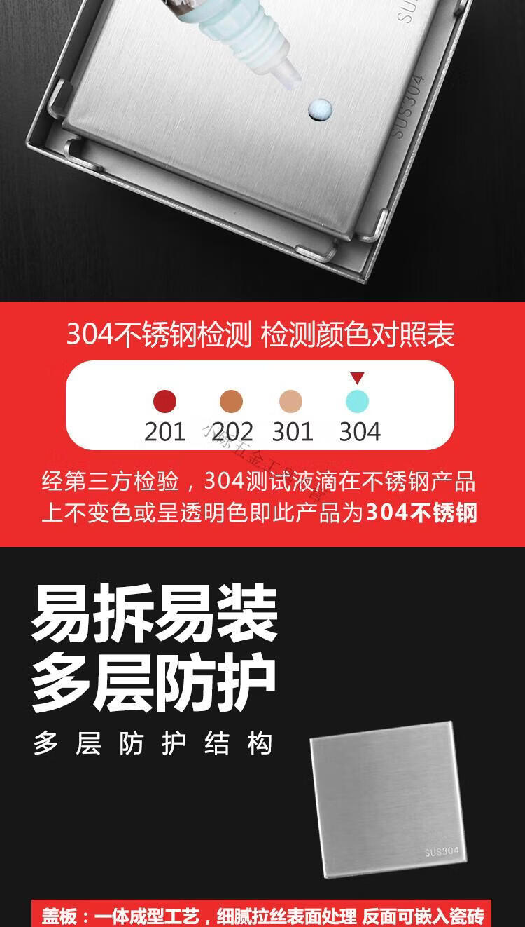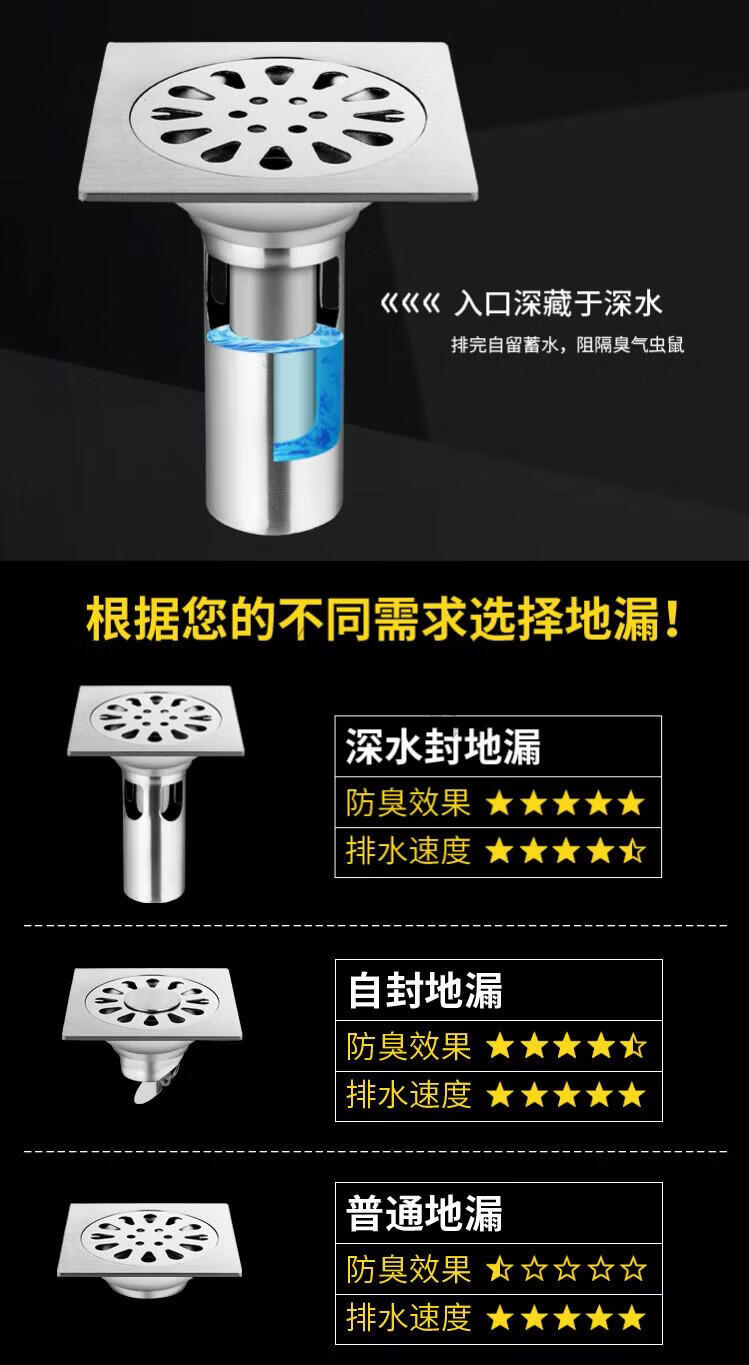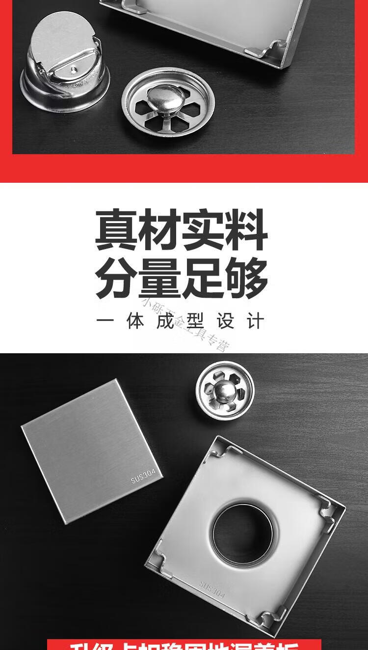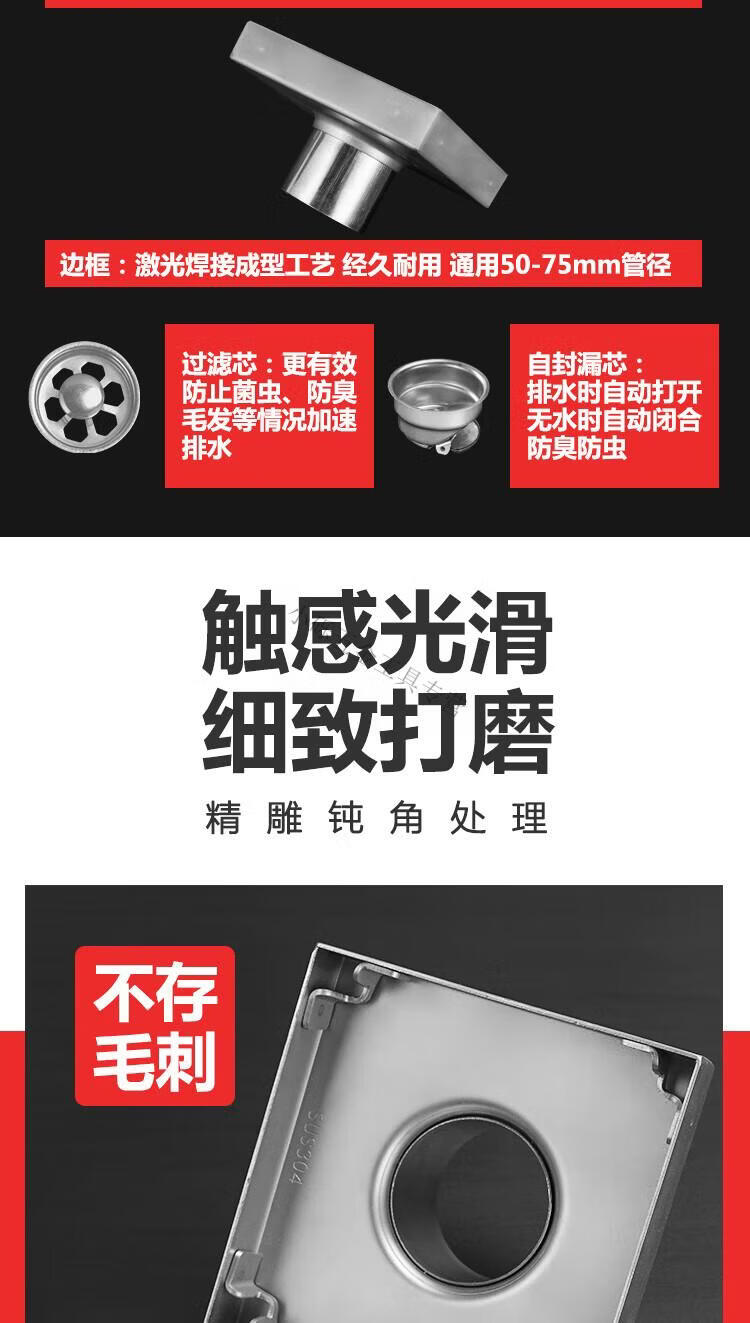 Yingtang floor drain anti-odor round square stainless steel bathroom sewer insect-proof balcony three-way washing machine all-copper floor drain square single use 10cm ultra-thick stainless steel deep water seal anti-odor and anti-blocking