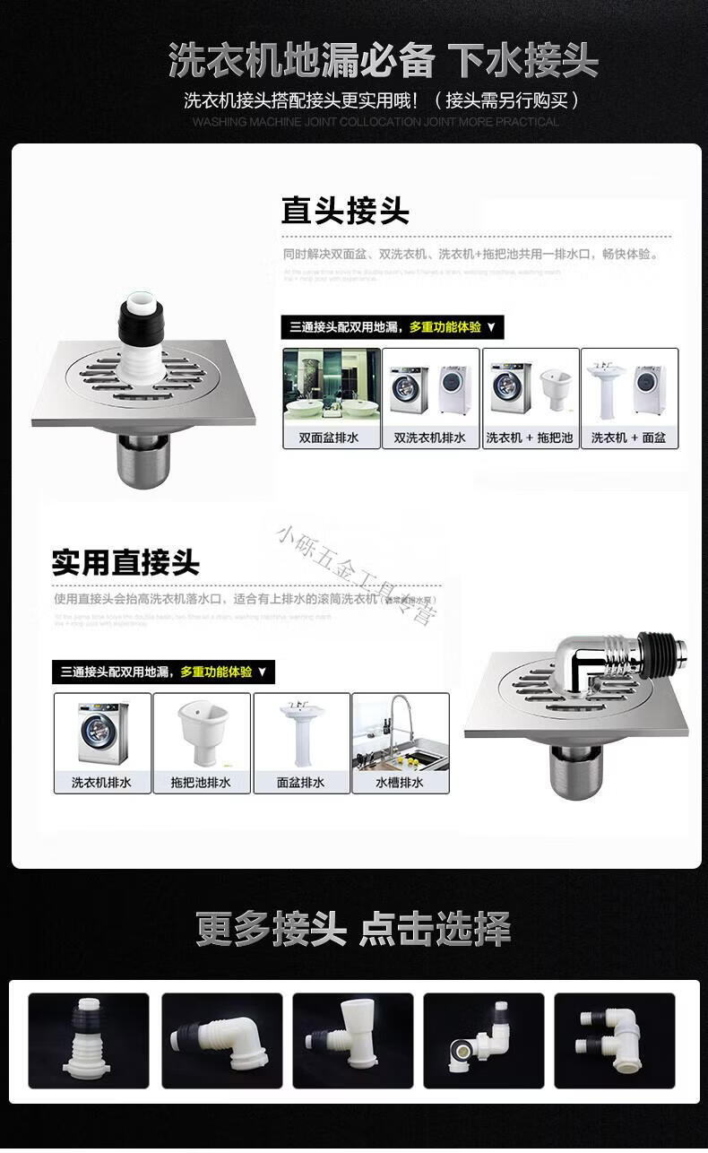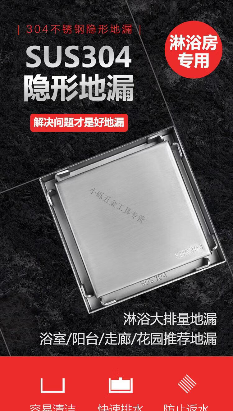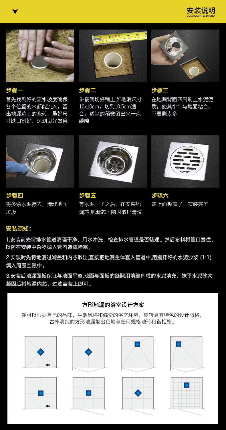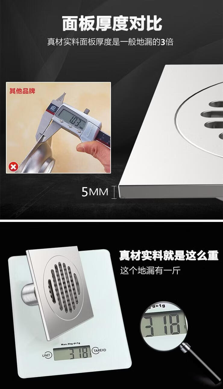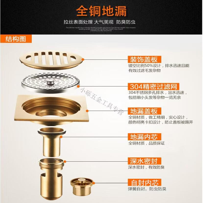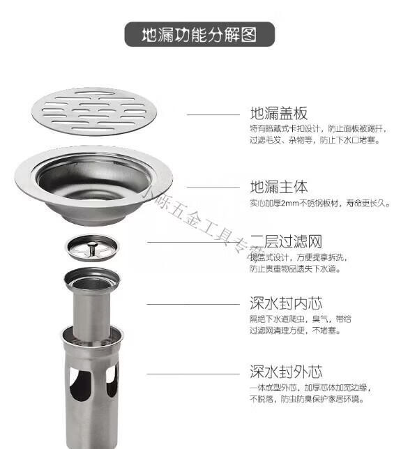 Yingtang floor drain anti-odor round square stainless steel bathroom sewer insect-proof balcony three-way washing machine all-copper floor drain square single use 10cm ultra-thick stainless steel deep water seal anti-odor and anti-blocking
