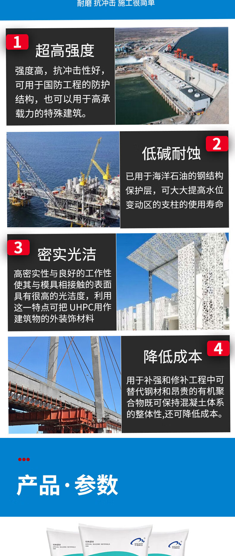 Kezitu uhpc ultra high performance concrete c120c150 high strength bridge deck pavement rpc cover reinforced STC concrete uhpc nuclear crystal powder 50 kg