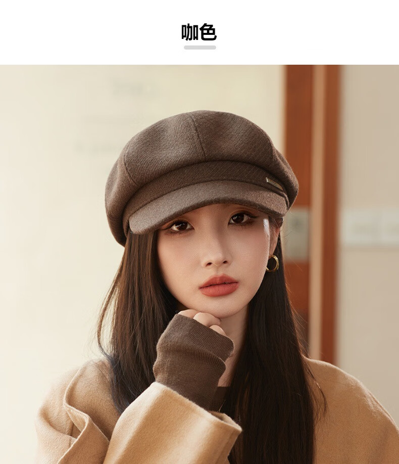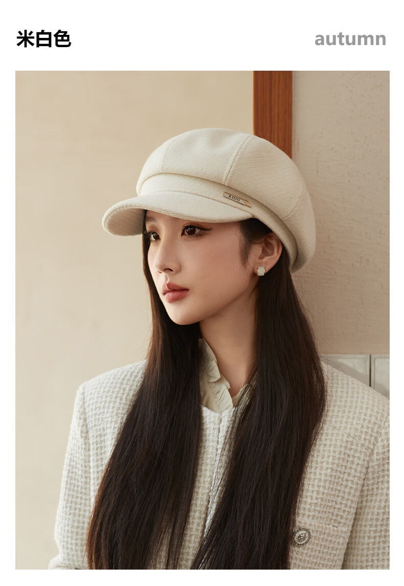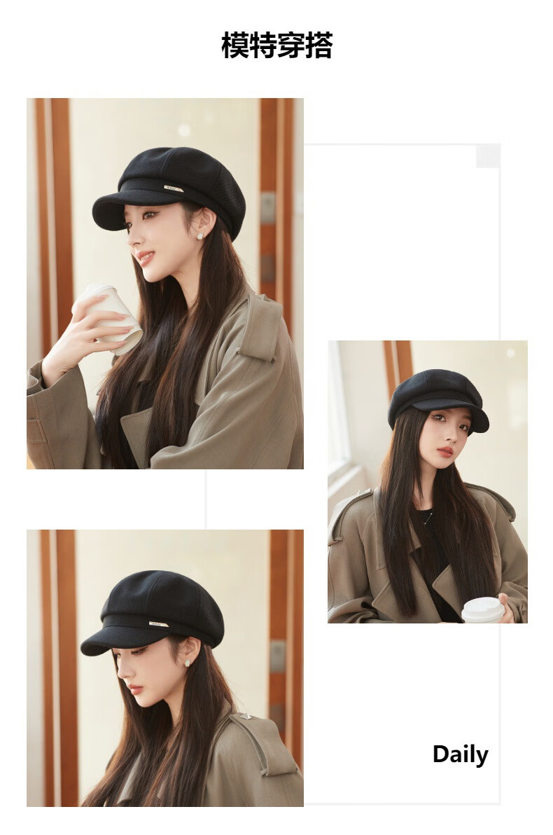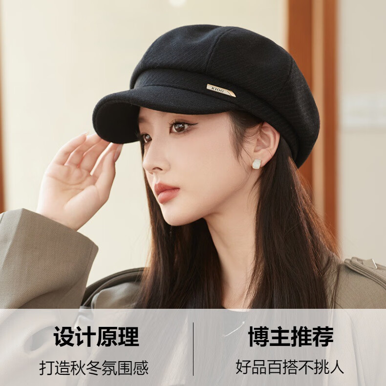 Jimmy Leaf Hat Women's Autumn and Winter New Style Elegant Thickened Woolen Octagonal Hat Korean Style Light Luxury Simple Beret Black