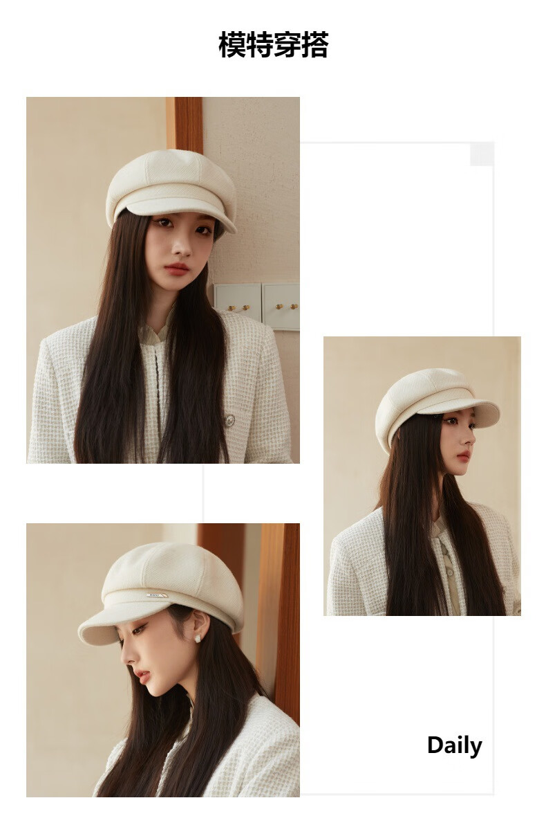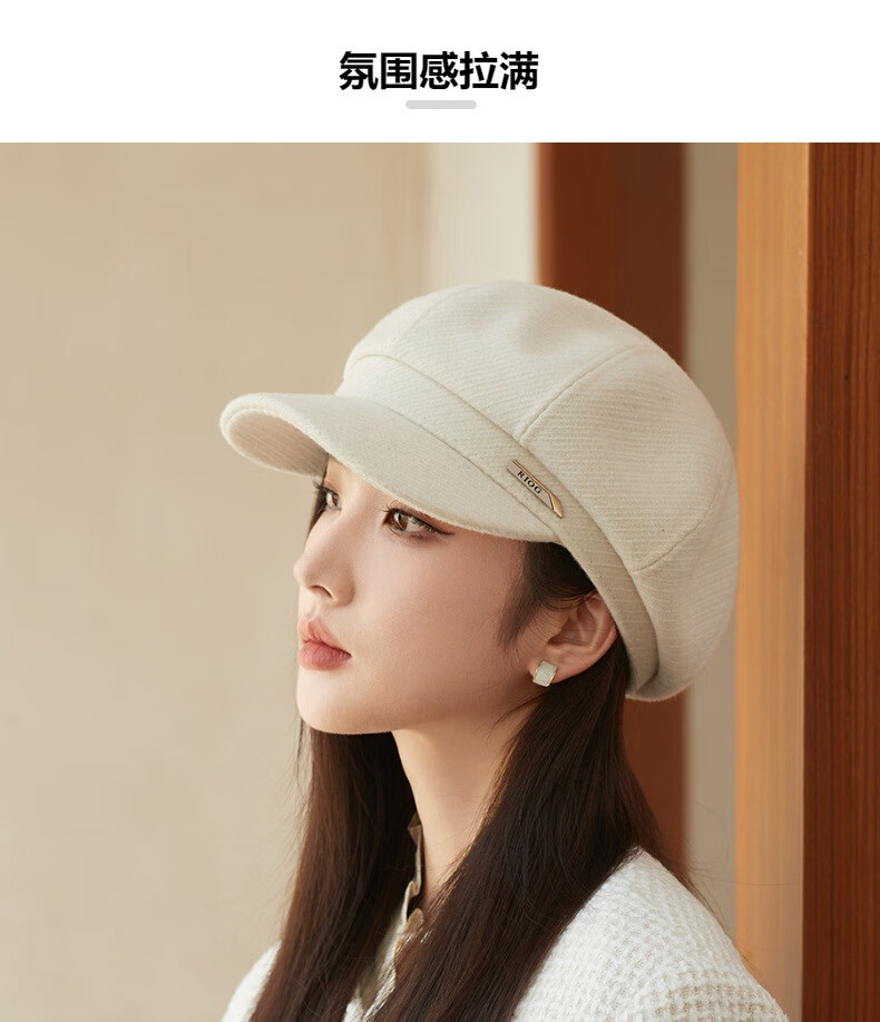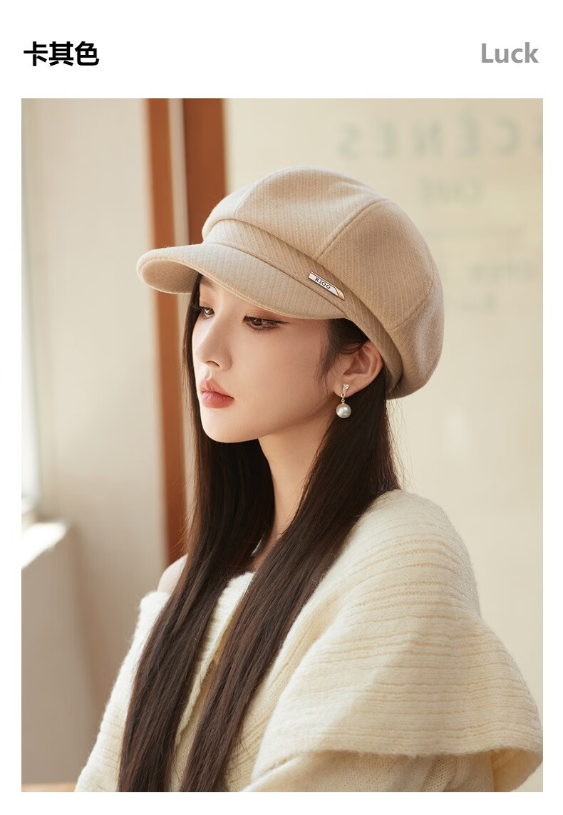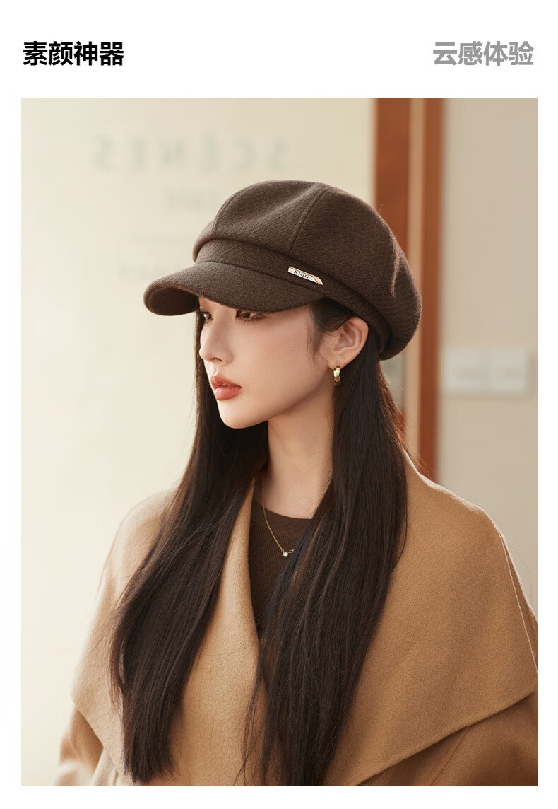 Jimmy Leaf Hat Women's Autumn and Winter New Style Elegant Thickened Woolen Octagonal Hat Korean Style Light Luxury Simple Beret Black