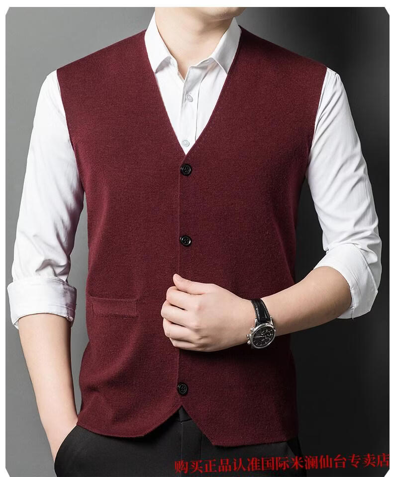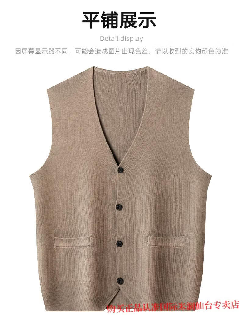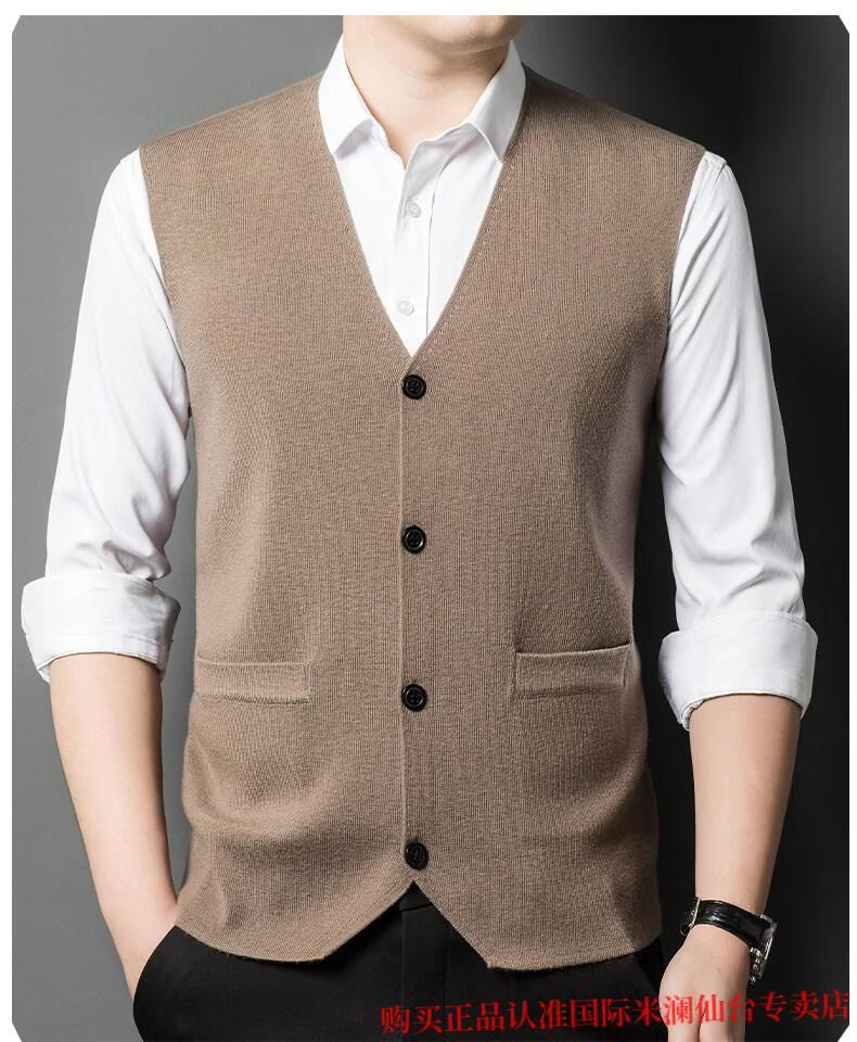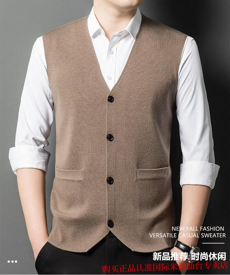 Международный мужской свитер из 100% шерсти производства города Милан Ордос, вязаный жилет-кардиган с V-образным вырезом, теплый однотонный жилет, овечья шерсть. Кашемировый свитер верблюжьего цвета, элитный премиум-класс, не скатывается, осень-зима 2025, новый стиль, размер XL 175 (рекомендуемый вес 140-160ЦзиньЦзин равен 0,5 кг)