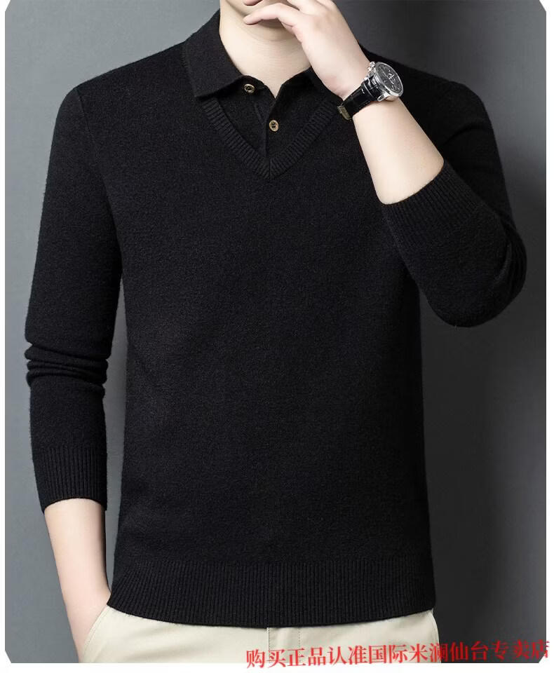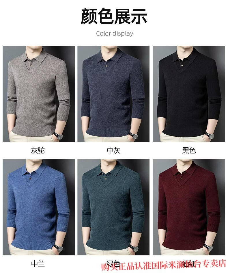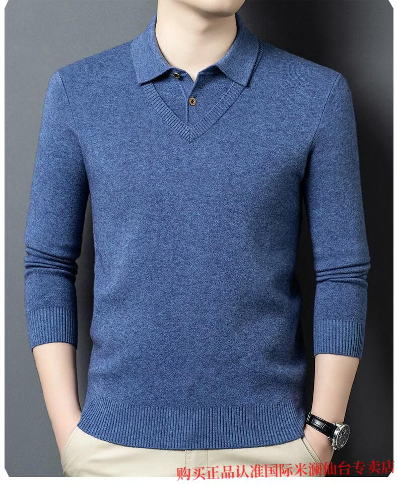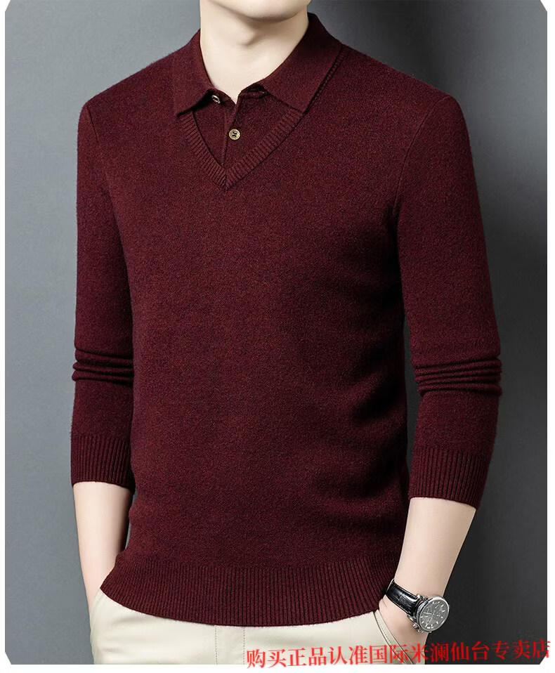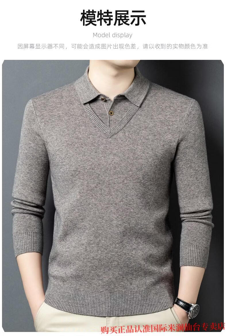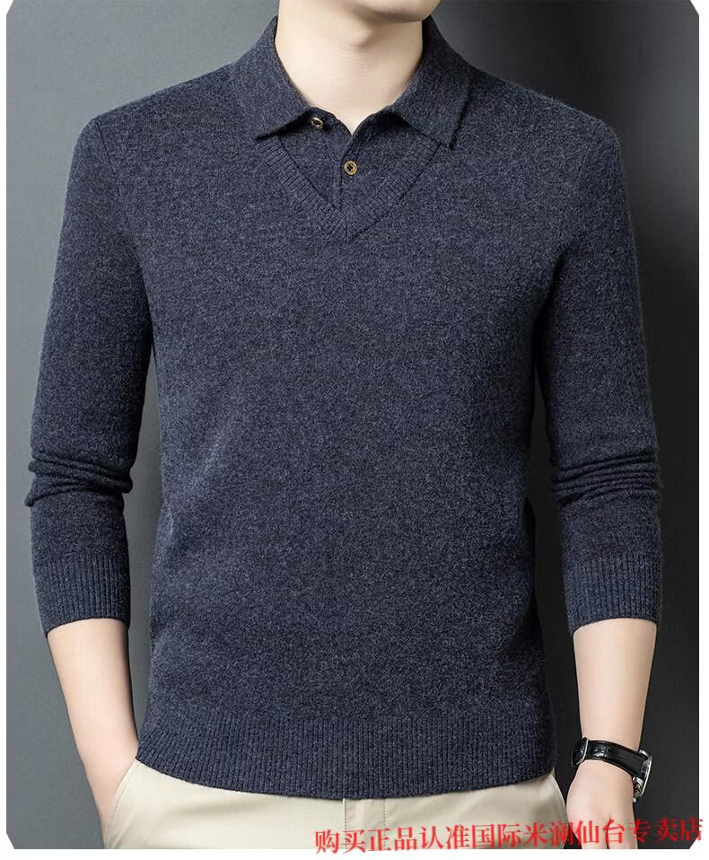International Milan Ordos city-produced 100% wool sweater for men, middle-aged and elderly father lapel fake two-piece sheep. Cashmere sweater, medium gray, high-end special grade, non-pilling, 2025 autumn and winter new style XL 175 (recommended weight 140-160 Jin Jin is equal to 0.5 kg)