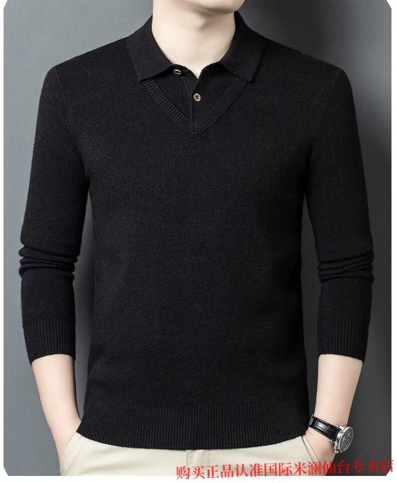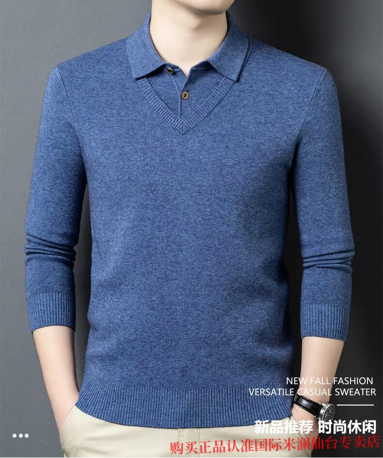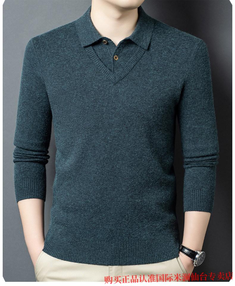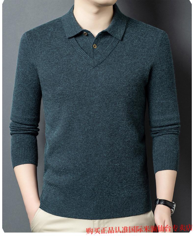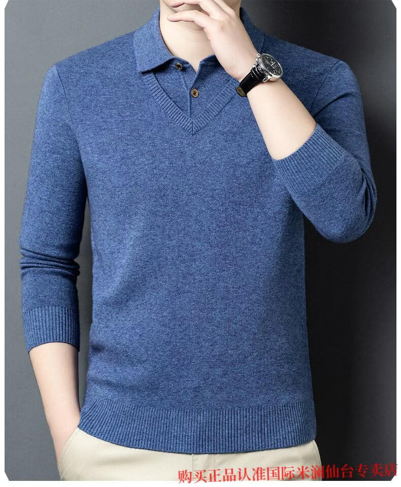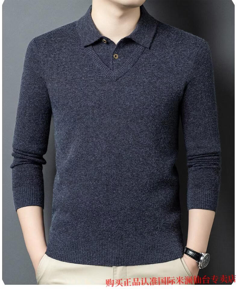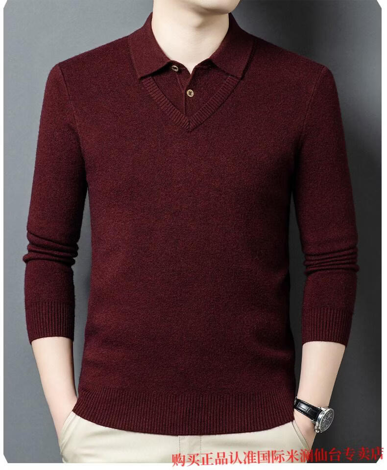 International Milan Ordos city-produced 100% wool sweater for men, middle-aged and elderly father lapel fake two-piece sheep. Cashmere sweater, medium gray, high-end special grade, non-pilling, 2025 autumn and winter new style XL 175 (recommended weight 140-160 Jin Jin is equal to 0.5 kg)