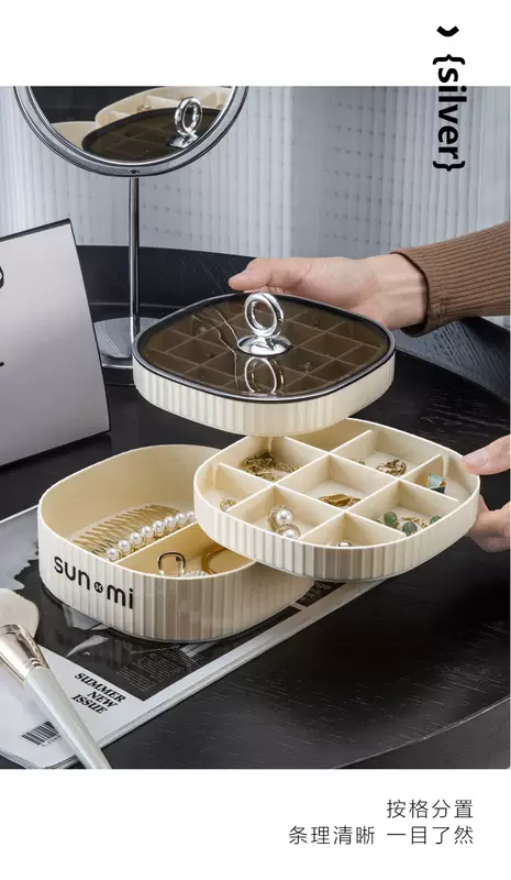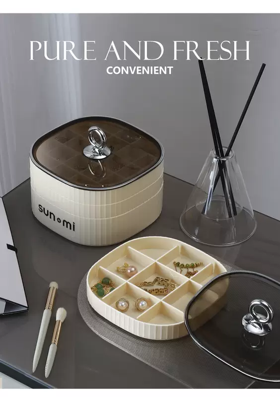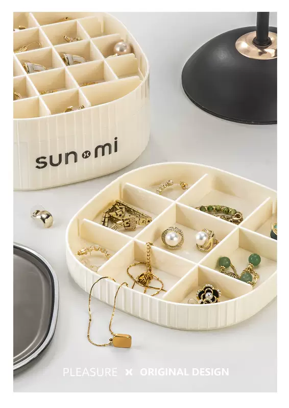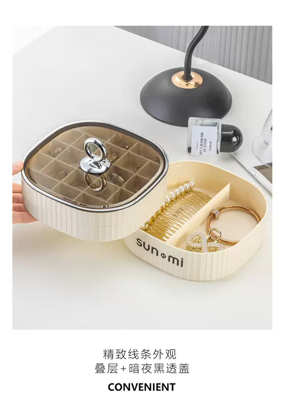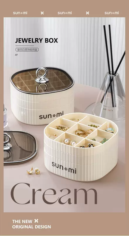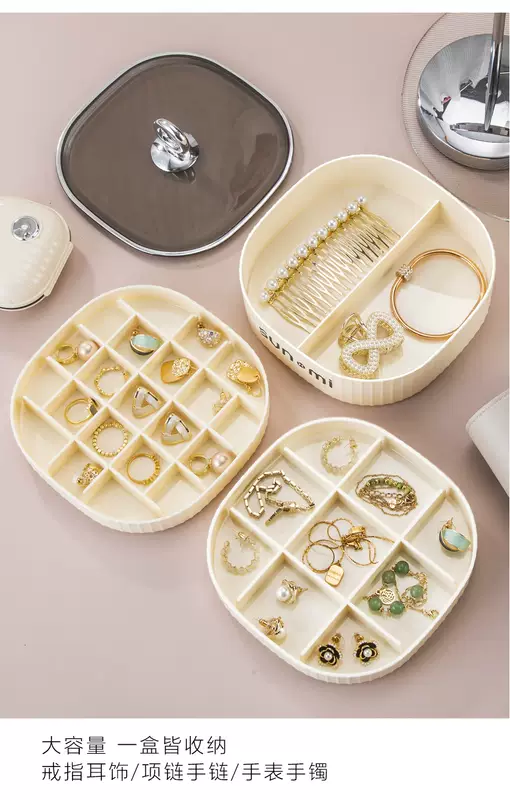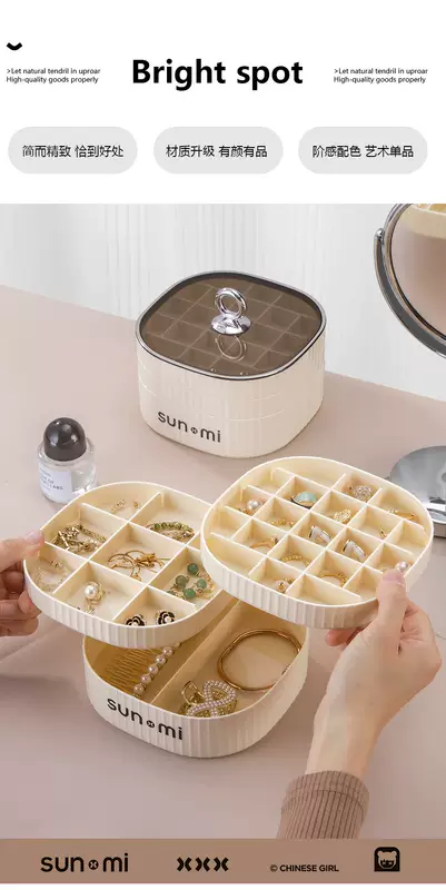 Yusenyi Jewelry Storage Box High-end Exquisite Jewelry Earrings Necklace Earrings Earrings Jewelry Gold 2024 New Style Minimalist Cream White (Three Layers and High Quality Selection)