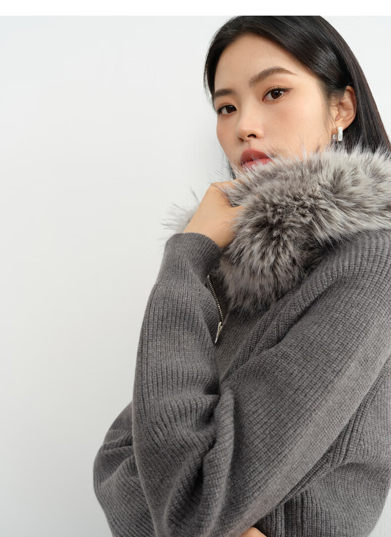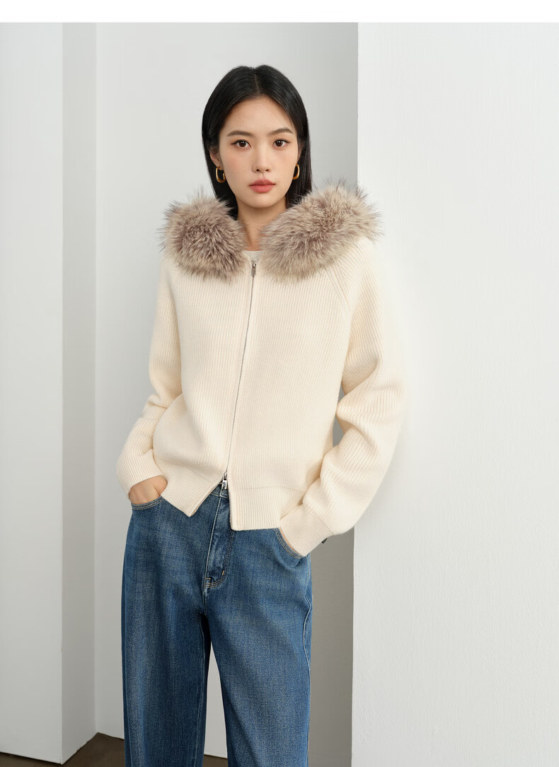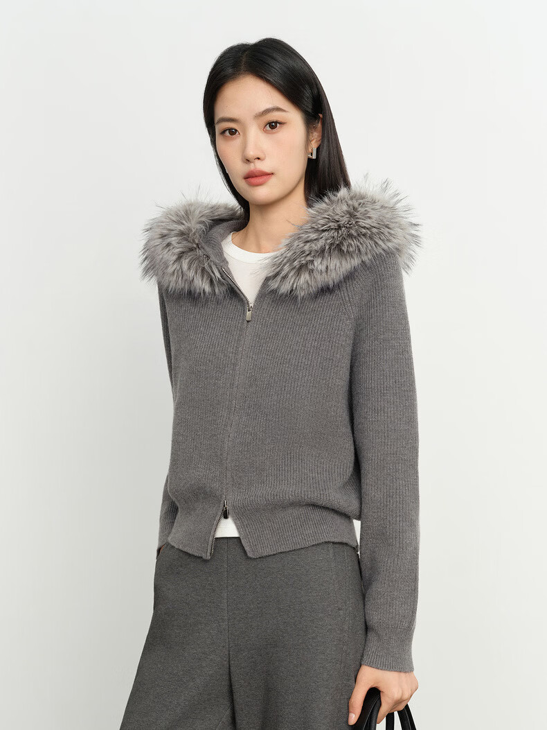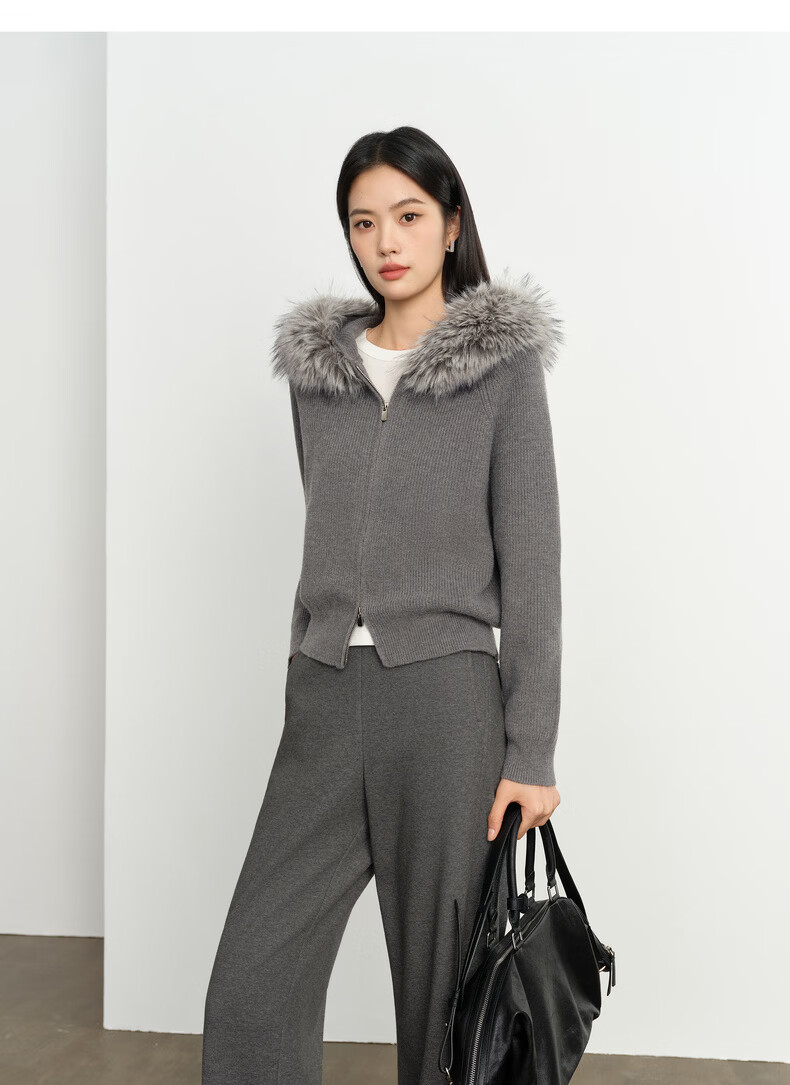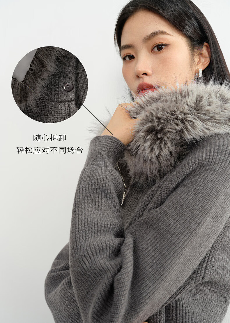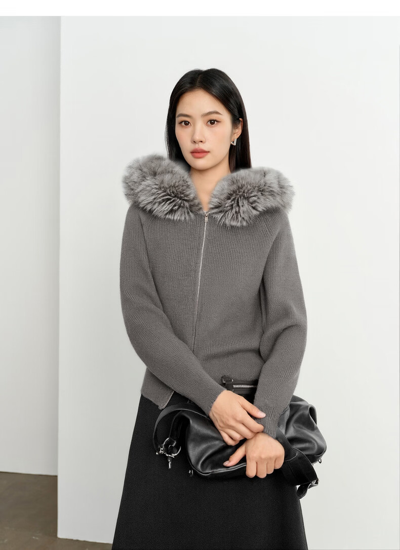 Eveli (eifini) Eveli fashionable detachable fur collar hooded knitted cardigan for women 2026 spring to continue the warmth and versatile sweater for women red M 105-115Jin Jin is equal to 0.5 kg