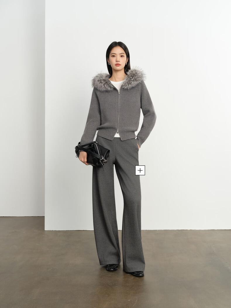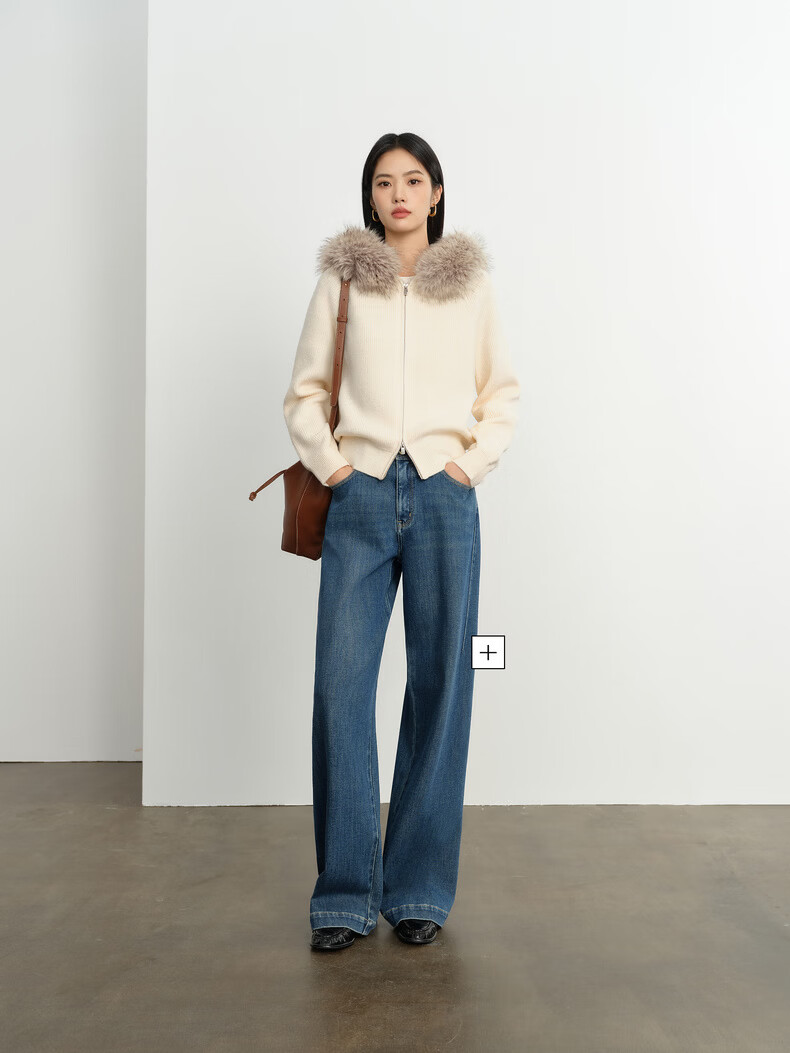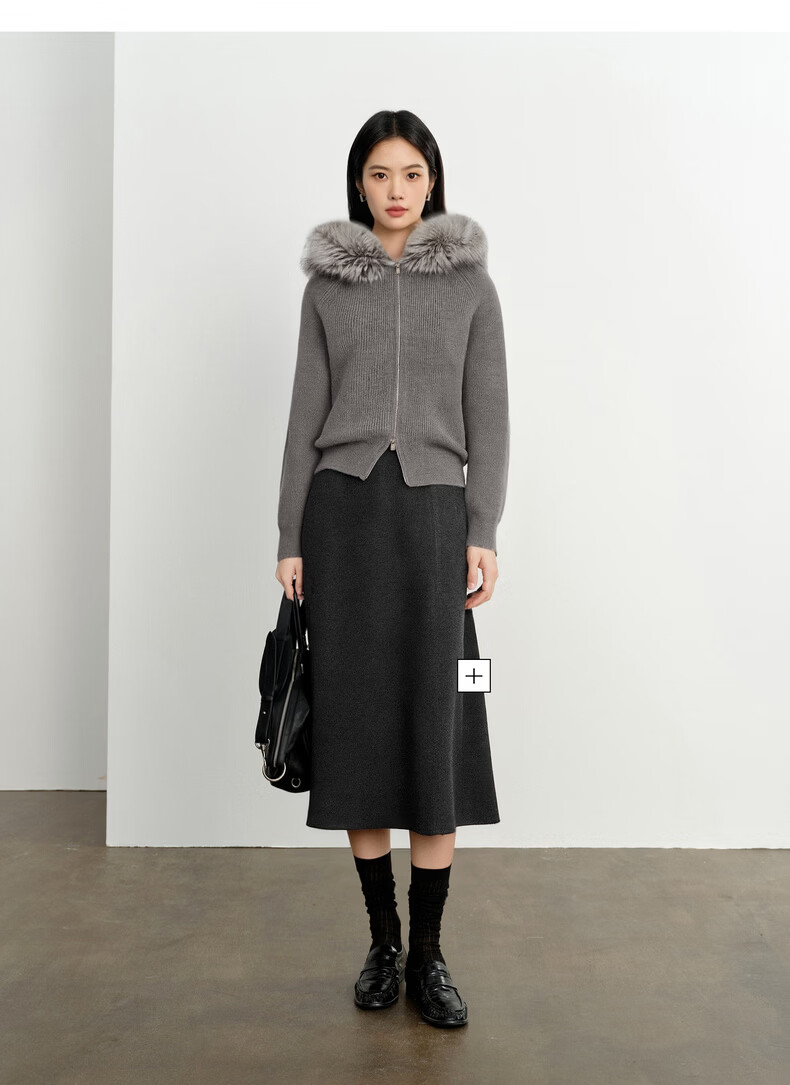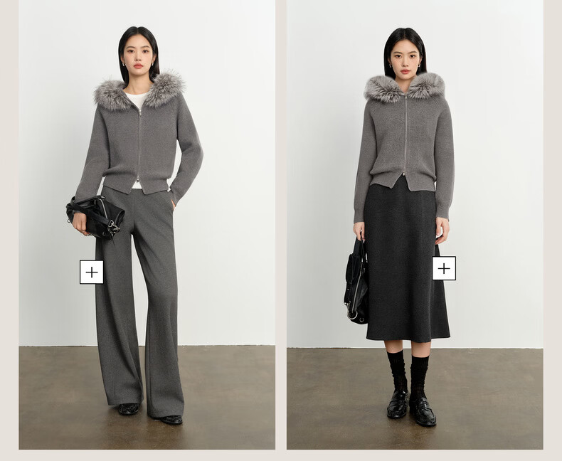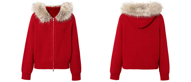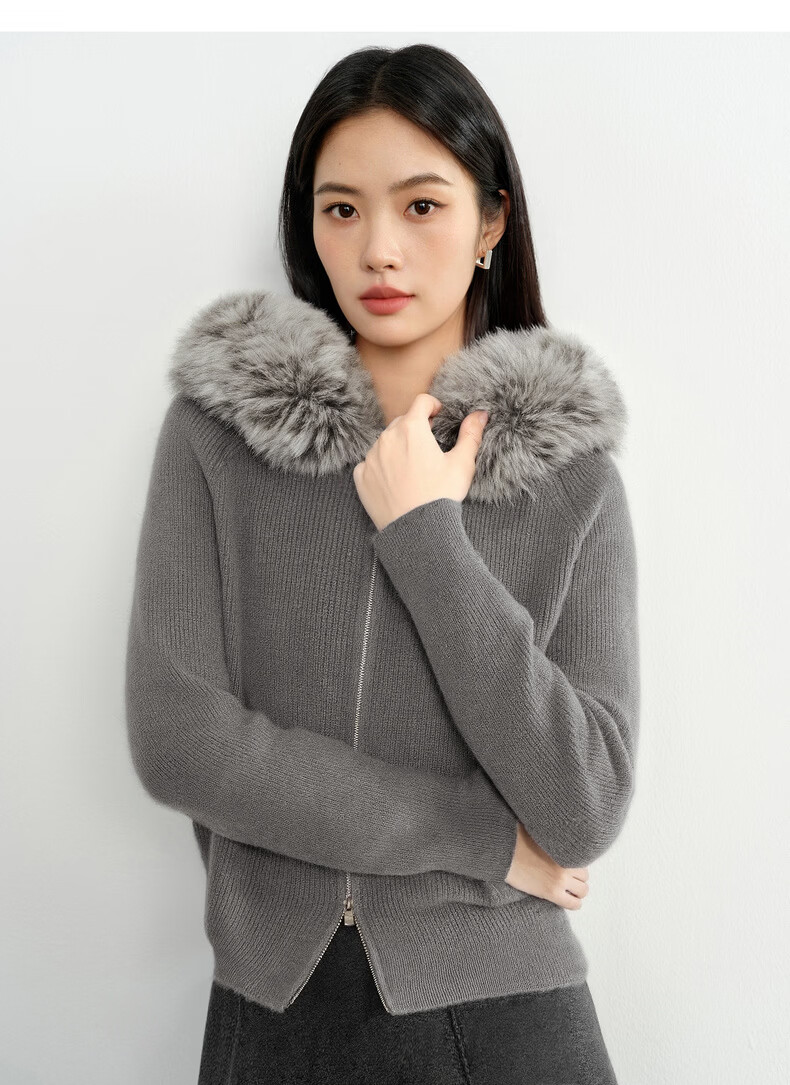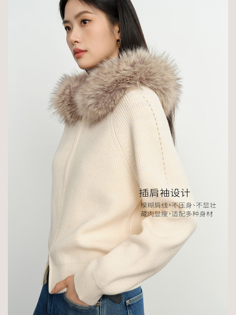 Eveli (eifini) Eveli fashionable detachable fur collar hooded knitted cardigan for women 2026 spring to continue the warmth and versatile sweater for women red M 105-115Jin Jin is equal to 0.5 kg