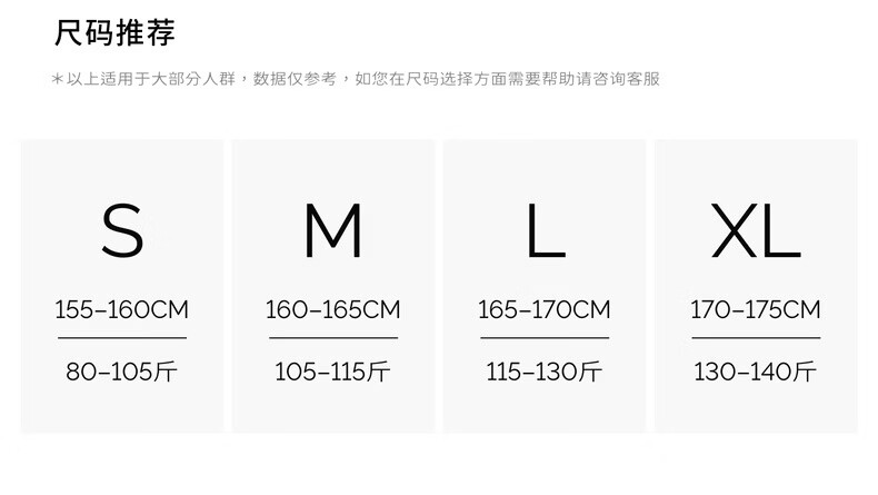 China (cm) 165 / 88-90 170 / 96-98 175 / 108-110 180 / 118-122 185 / 126-130