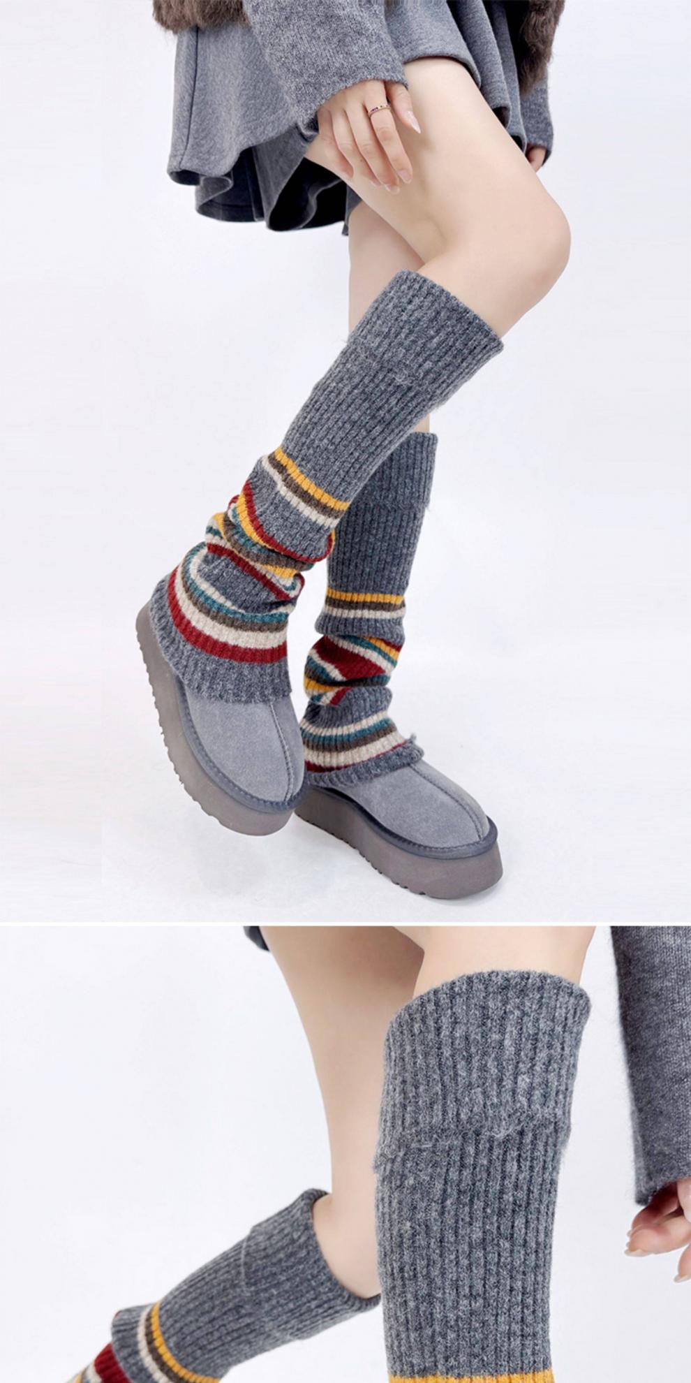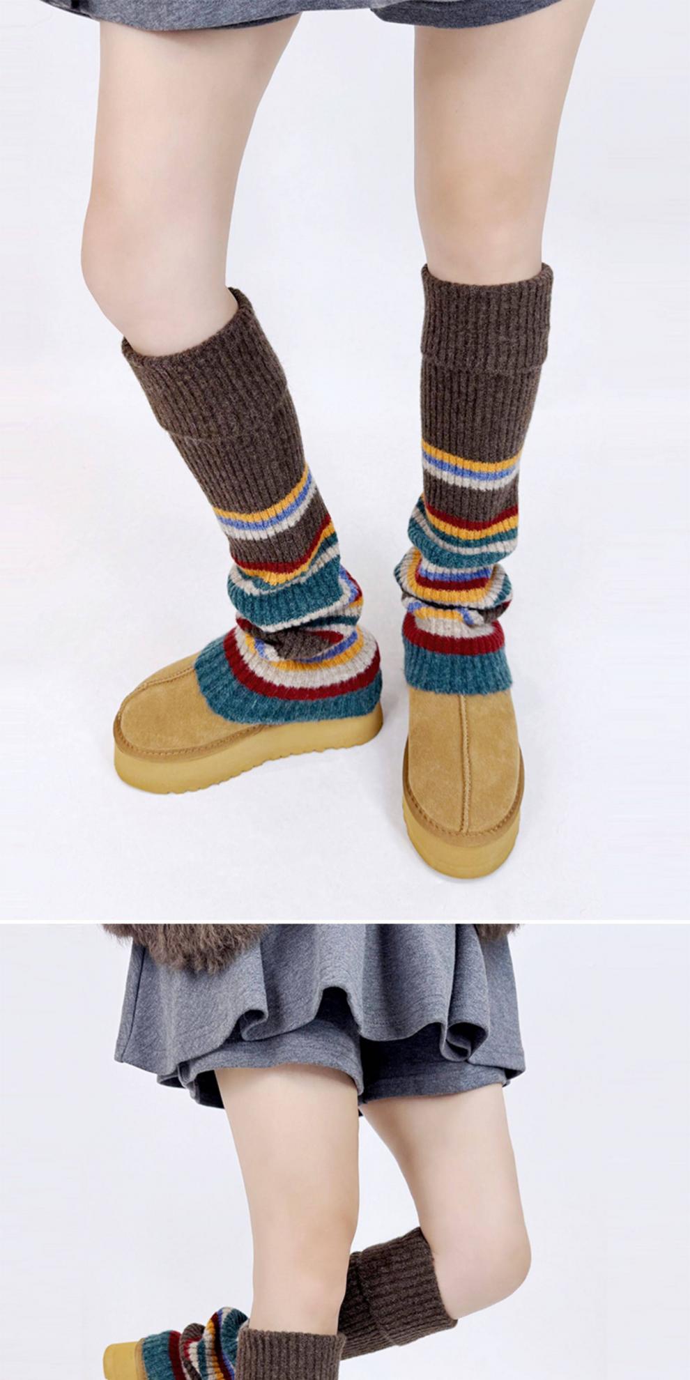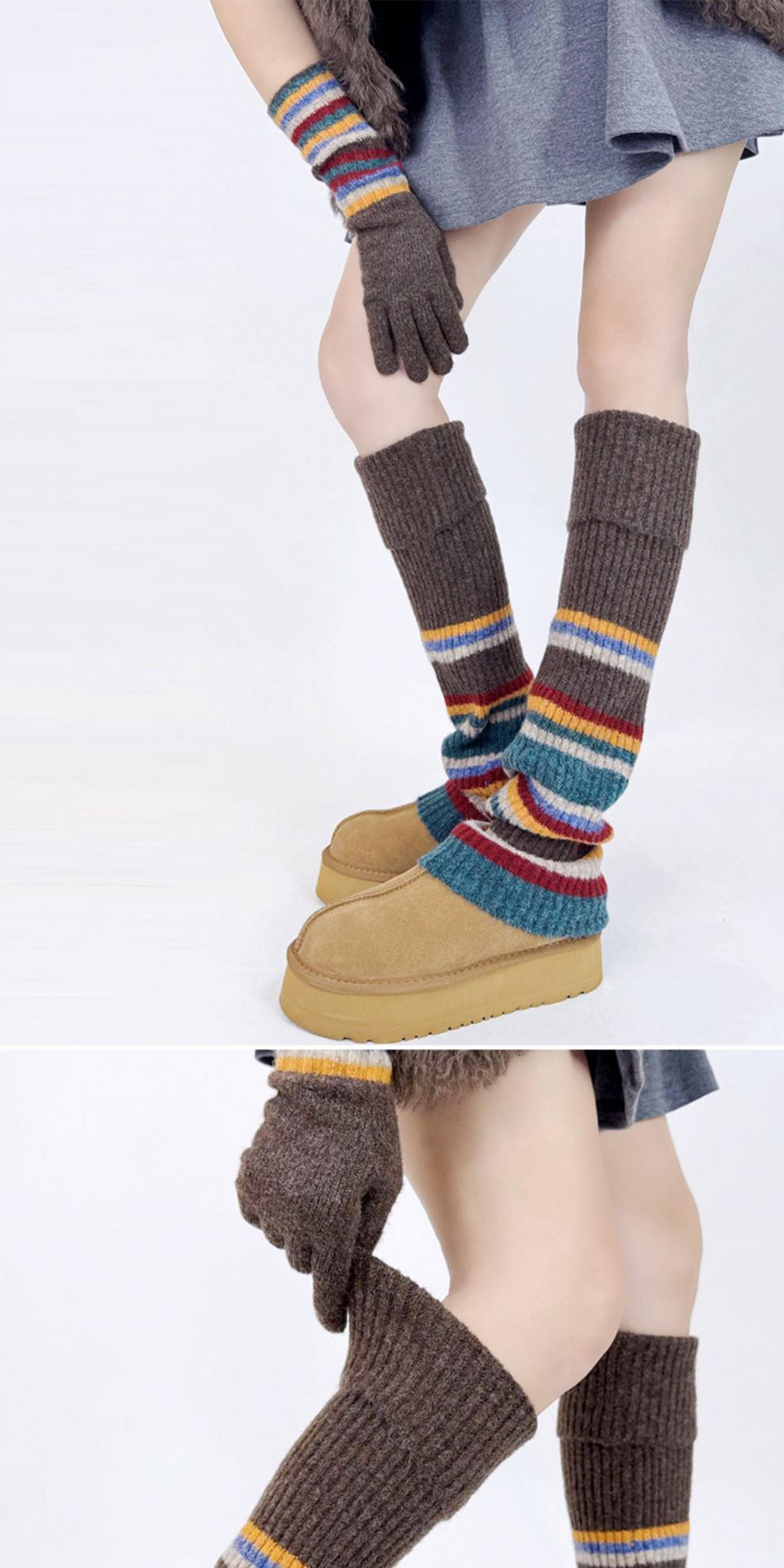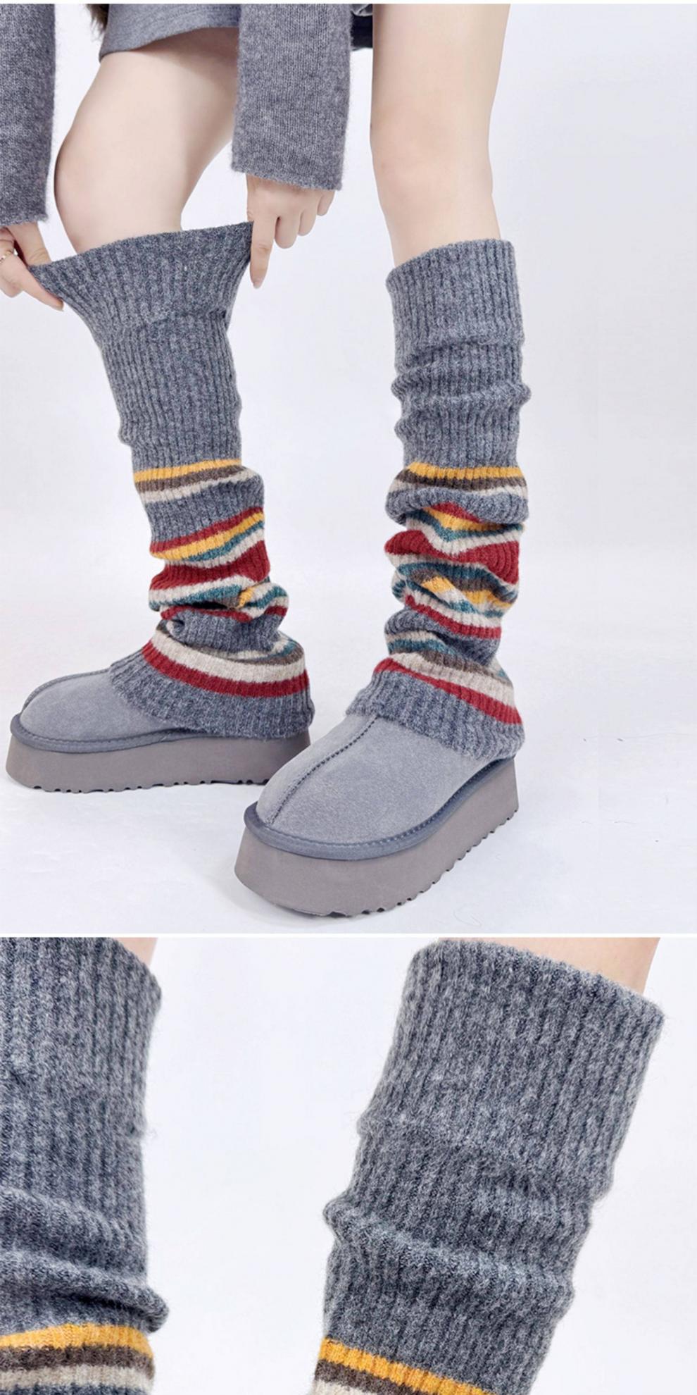 Kuiying (kuiying) Korean style autumn and winter warm wool socks for women long striped college style calf slimming pile socks ins trend gray color striped socks 1 pair one size