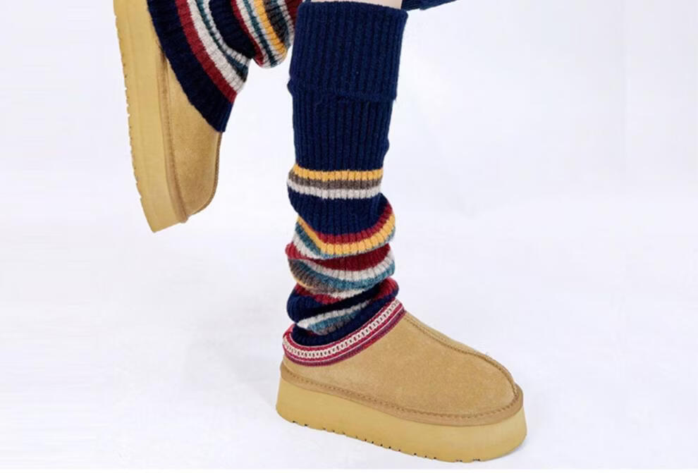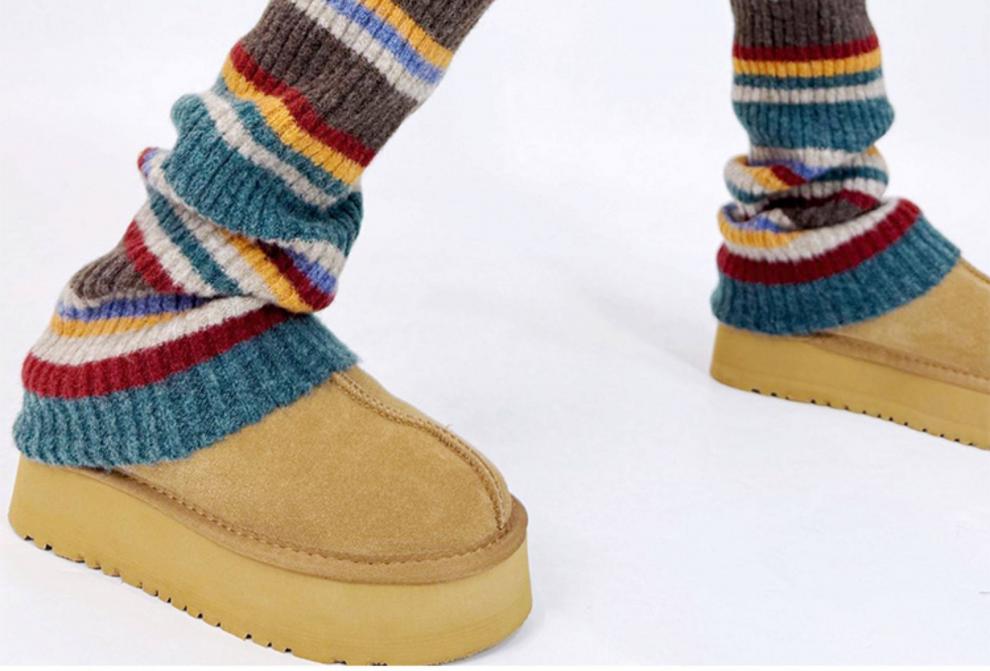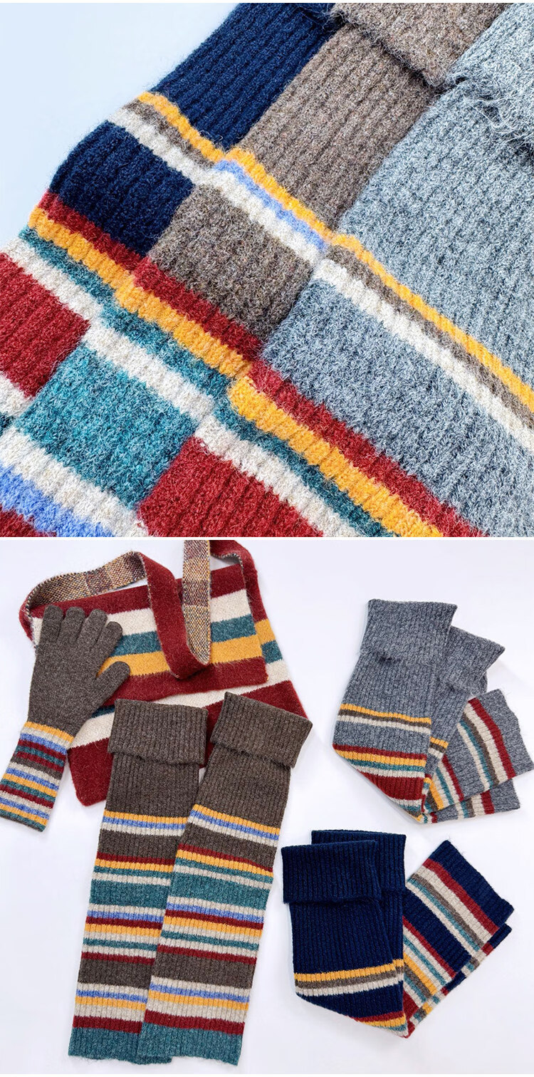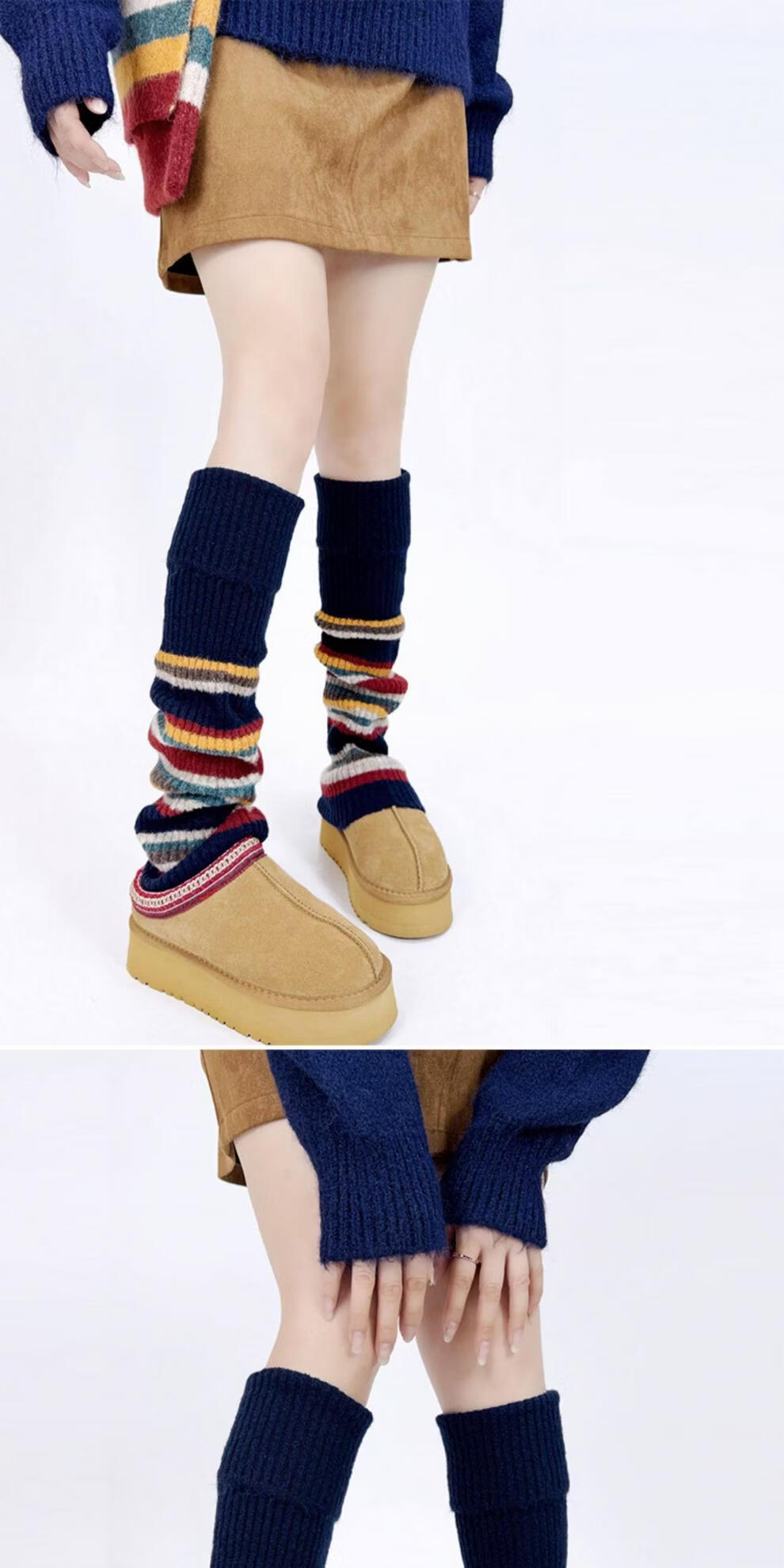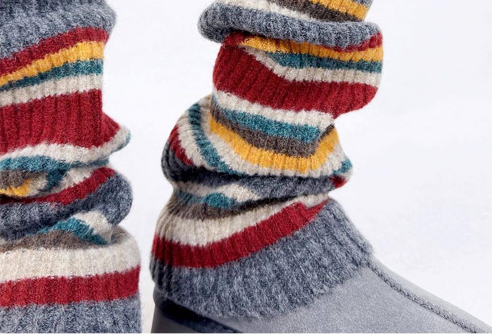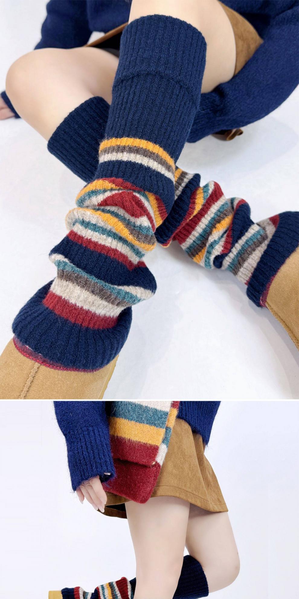 Kuiying (kuiying) Korean style autumn and winter warm wool socks for women long striped college style calf slimming pile socks ins trend gray color striped socks 1 pair one size
