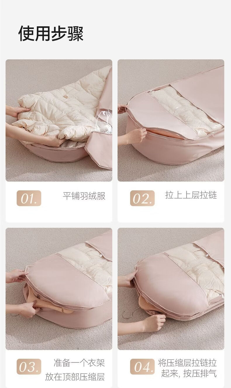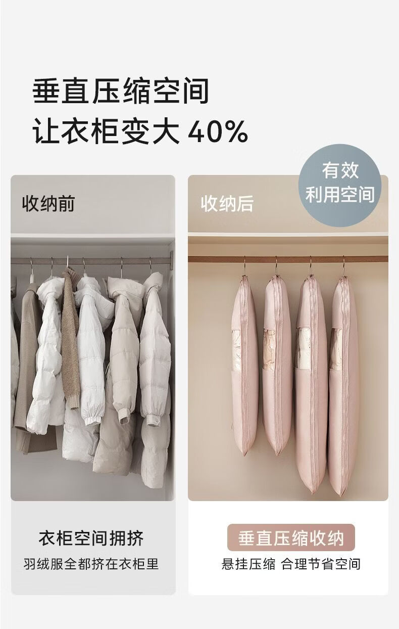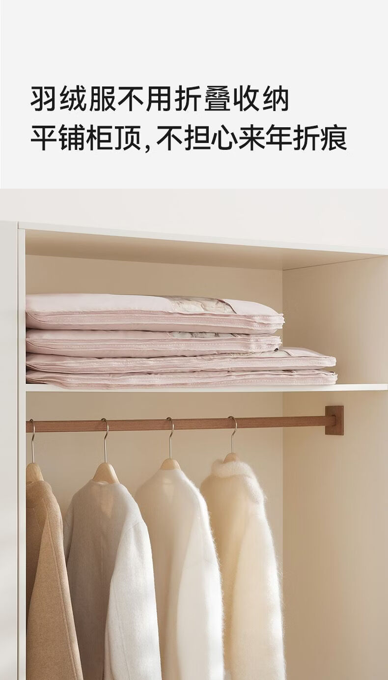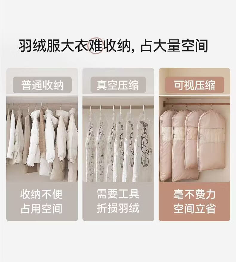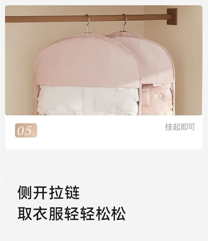 OIMG Japanese down jacket storage bag compressible clothes coat hanging dust cover home wardrobe transparent hanging clothes bag pearl beige short style - suitable for clothes within 90cm long