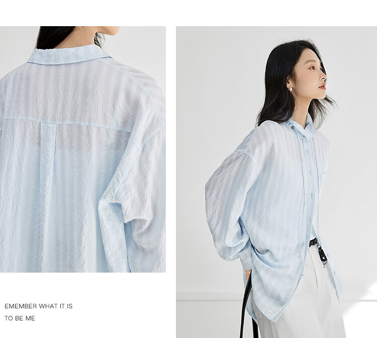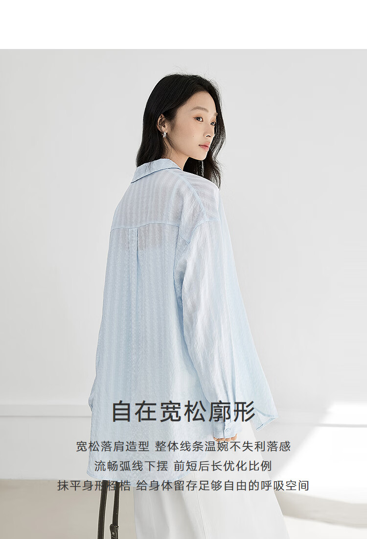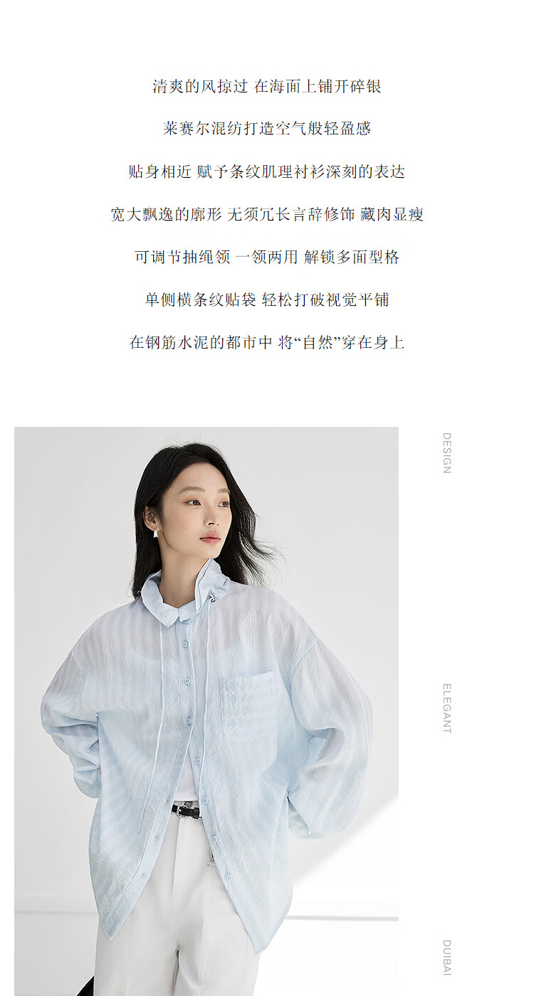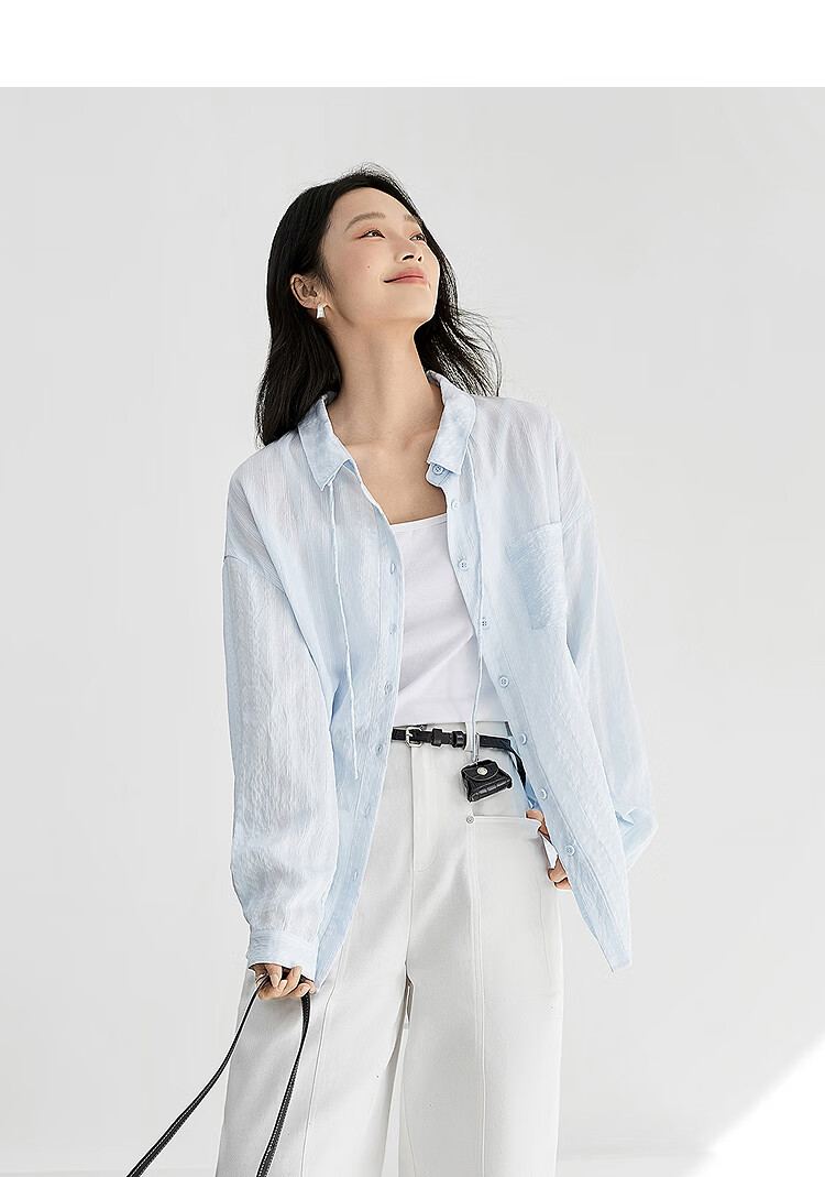 Dialogue (DUIBAI) Lyocell Loose Lace Blue Shirt Women's 2026 Spring New Textured Lightweight Long Sleeve Top Light Elegant Blue S