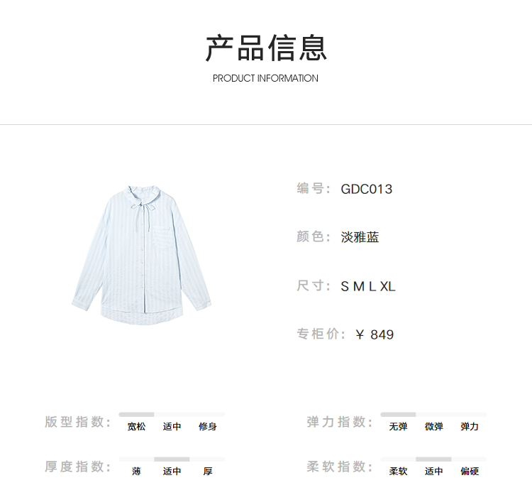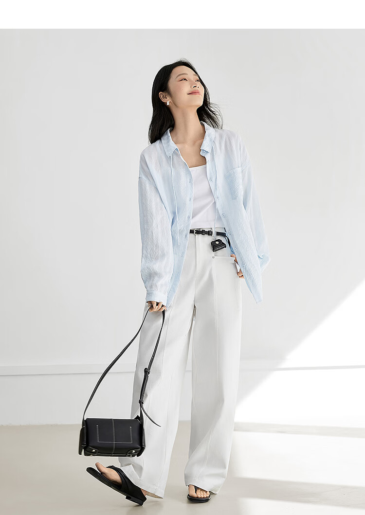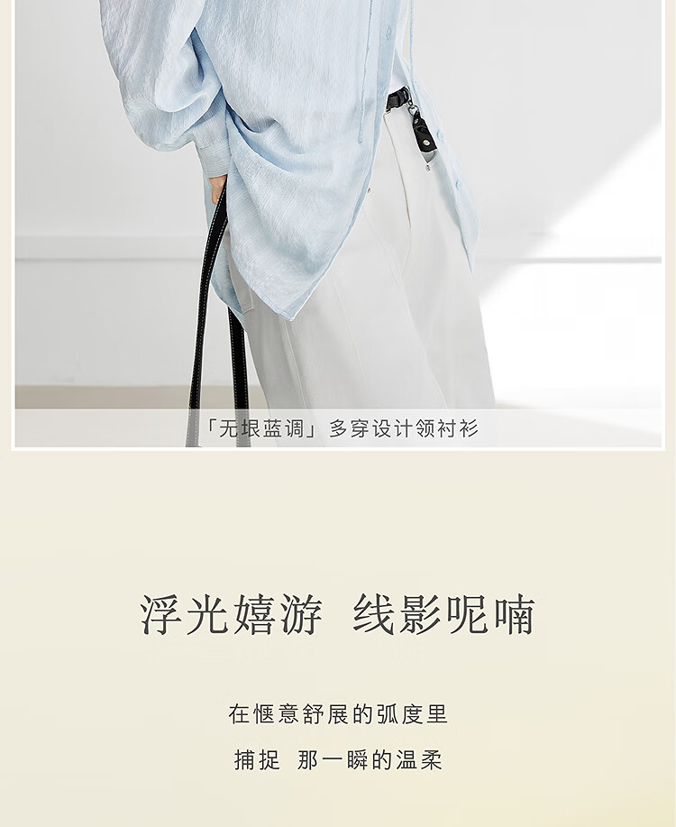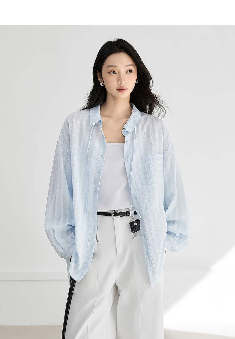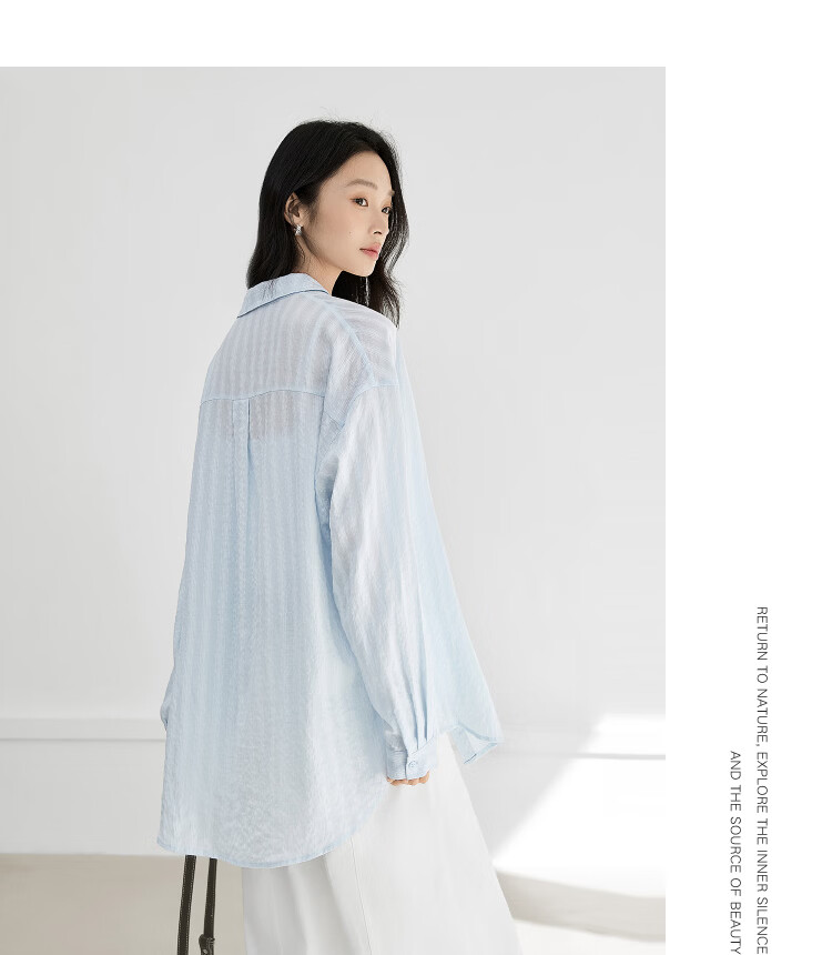 Dialogue (DUIBAI) Lyocell Loose Lace Blue Shirt Women's 2026 Spring New Textured Lightweight Long Sleeve Top Light Elegant Blue S