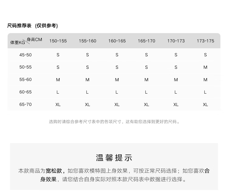 China (cm) 160-165/84-86 165-170 / 88-90 167-172 / 92-96 168-173 / 98-102 170-176 / 106-110