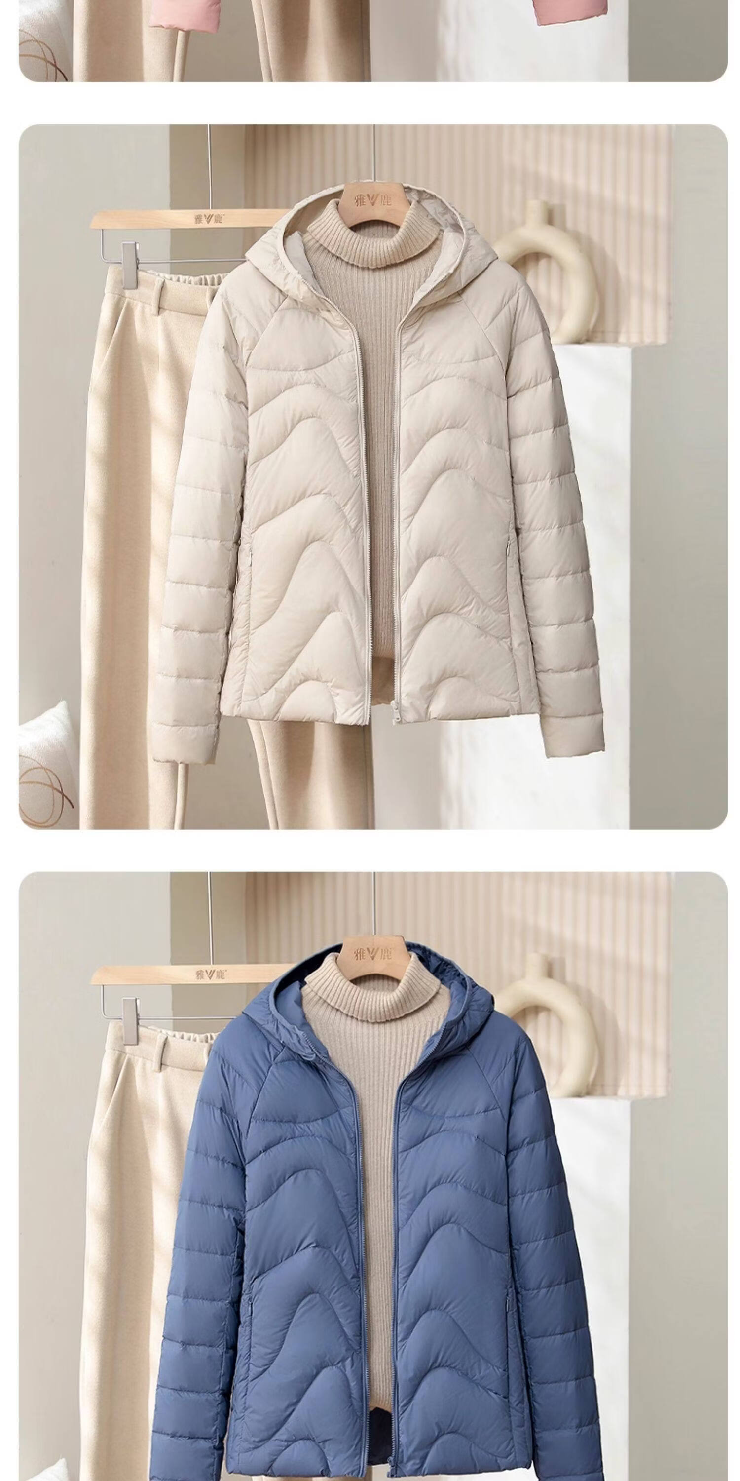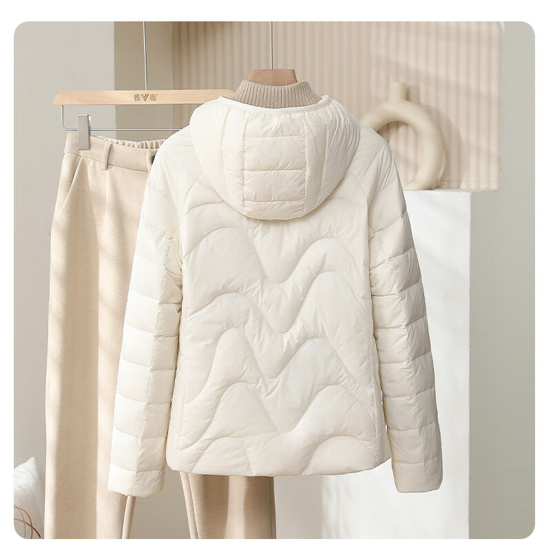 Yalu 2025 New Thin Down Jacket Women's Autumn and Winter Casual Simple Keep Warmth Portable Loose Slim Hooded Jacket Haze Blue M Recommended 90-100Jin Jin equals 0.5 kg