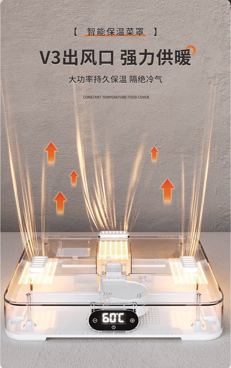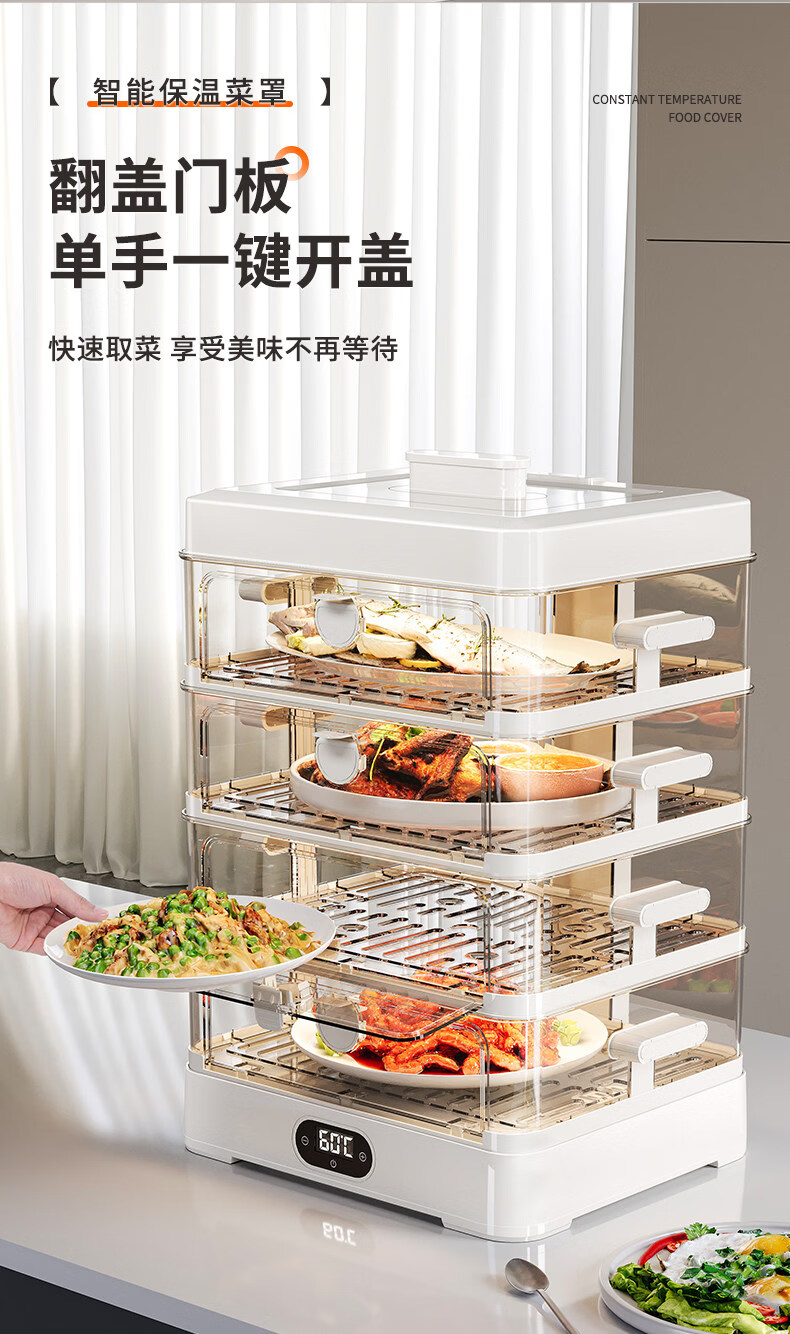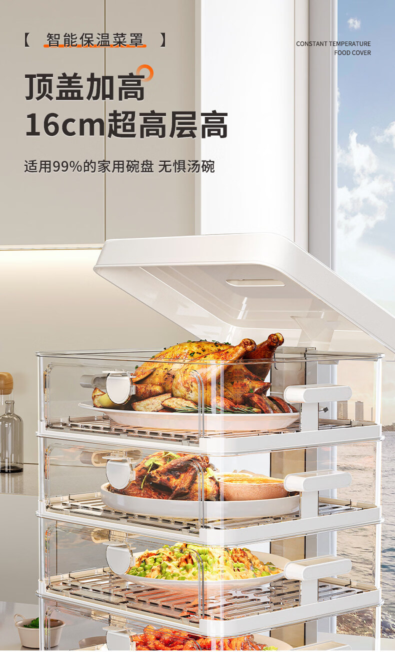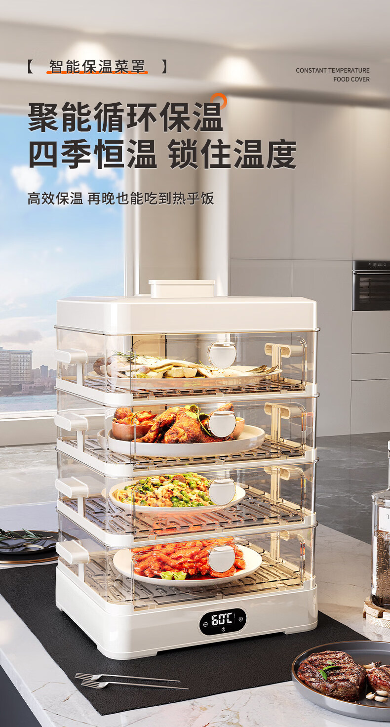SMVP Japanese insulated food artifact cover, dish cover, dining table food dust cover, household winter electric heating vegetable box 2025 new model, three layers - intelligent heating constant temperature model, three-speed temperature control_concentrated energy cycle