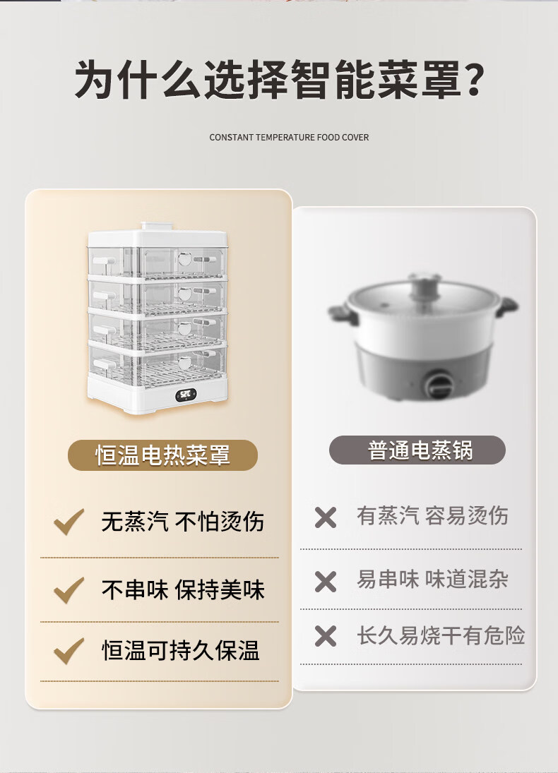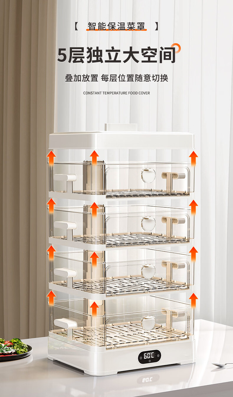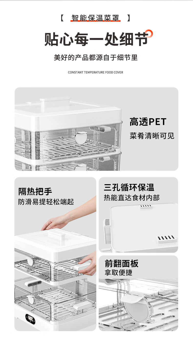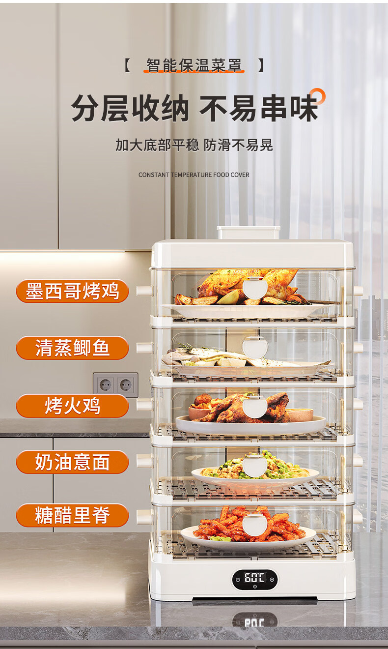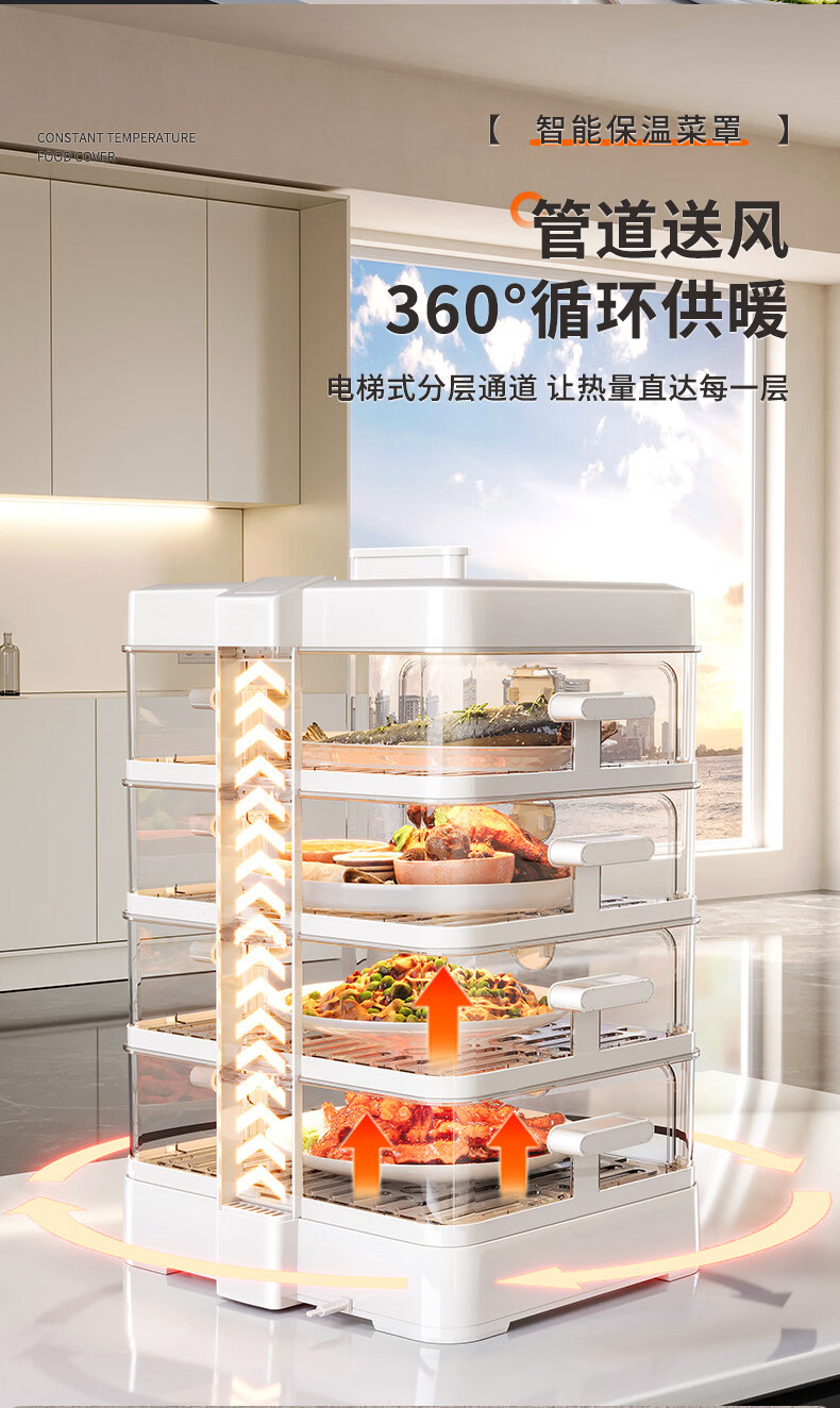 SMVP Japanese insulated food artifact cover, dish cover, dining table food dust cover, household winter electric heating vegetable box 2025 new model, three layers - intelligent heating constant temperature model, three-speed temperature control_concentrated energy cycle