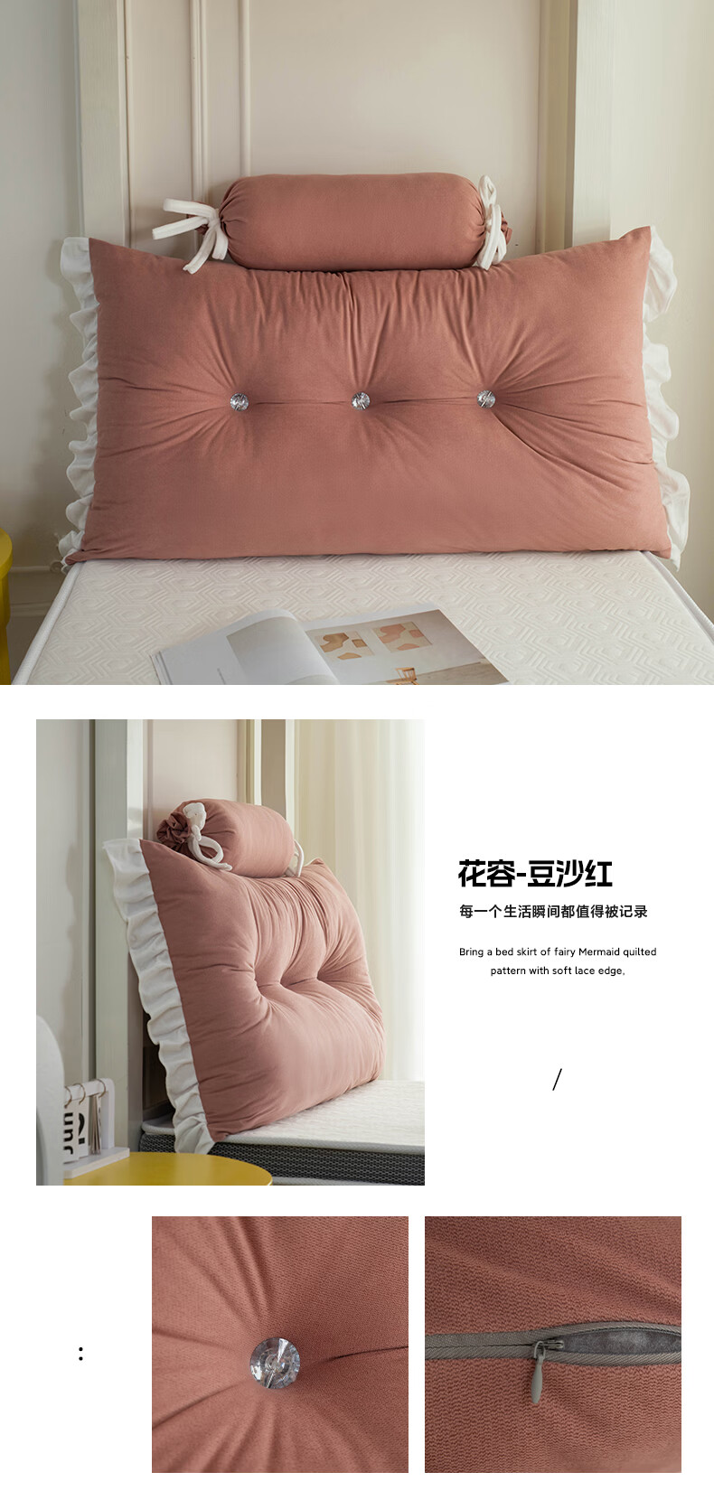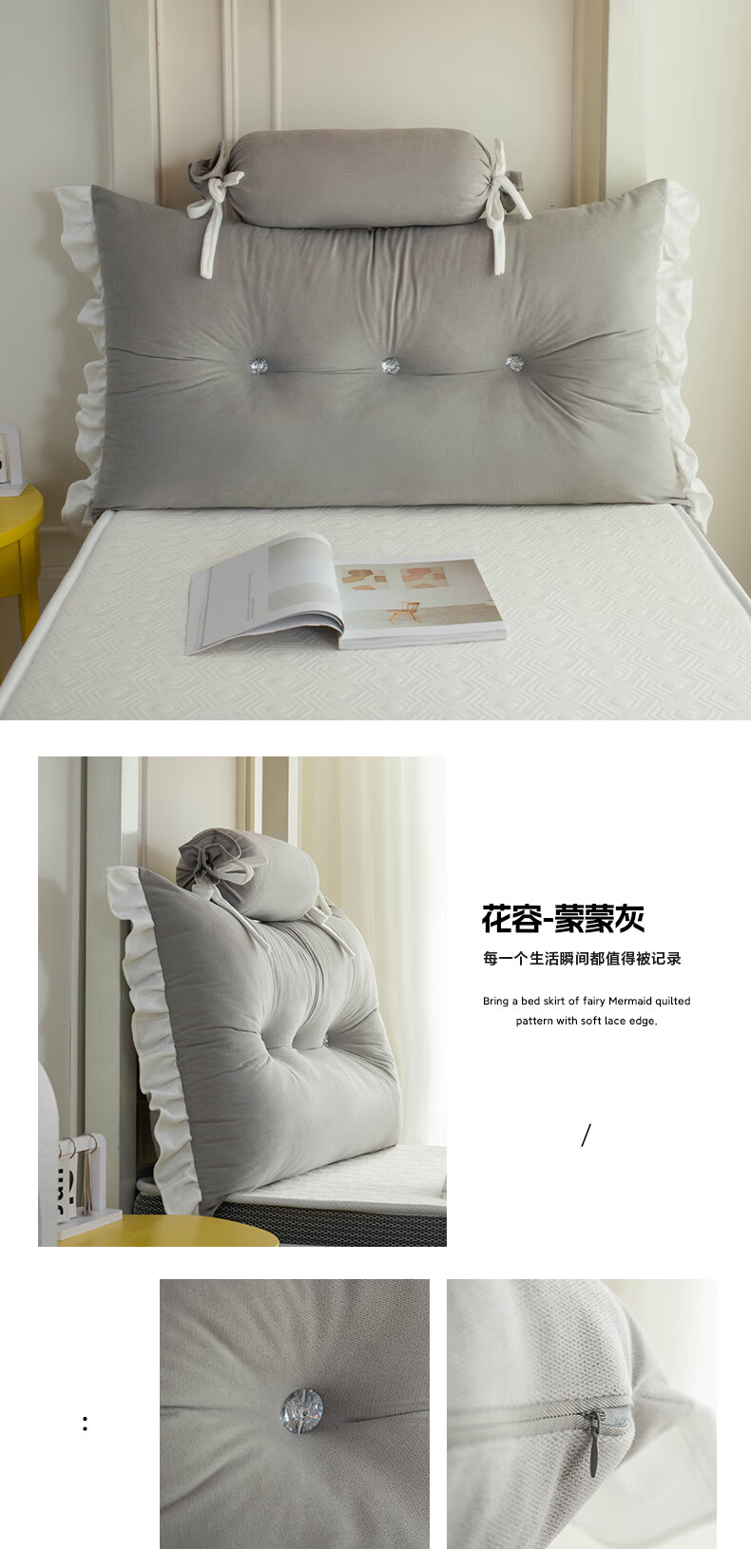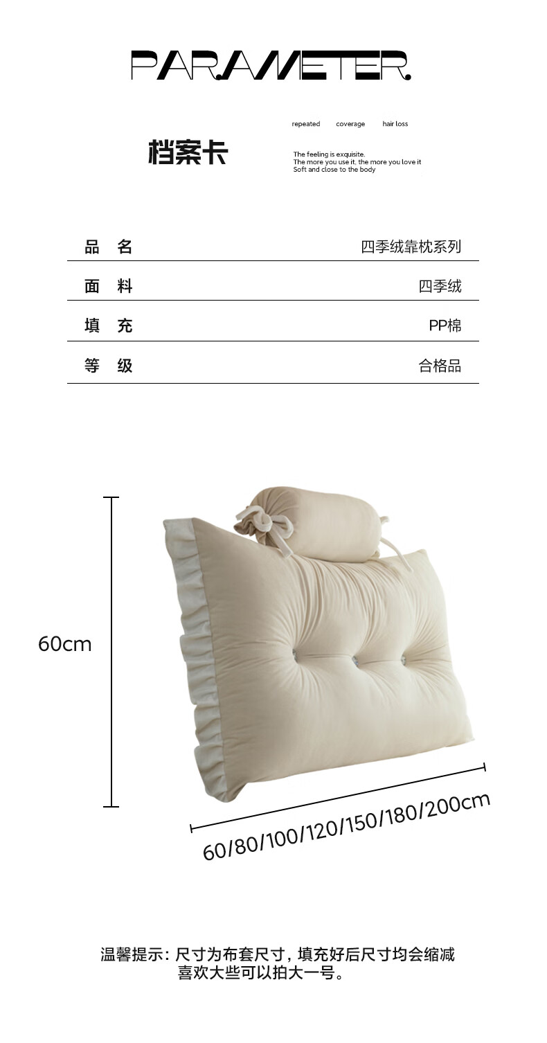 La Chapelle's new bedside cushion student bed guardrail bedside soft bag anti-collision cushion dormitory bed backrest lumbar pillow Huarong - light Yami including pillow core length 180 height 50 thickness 20 cm two headrests