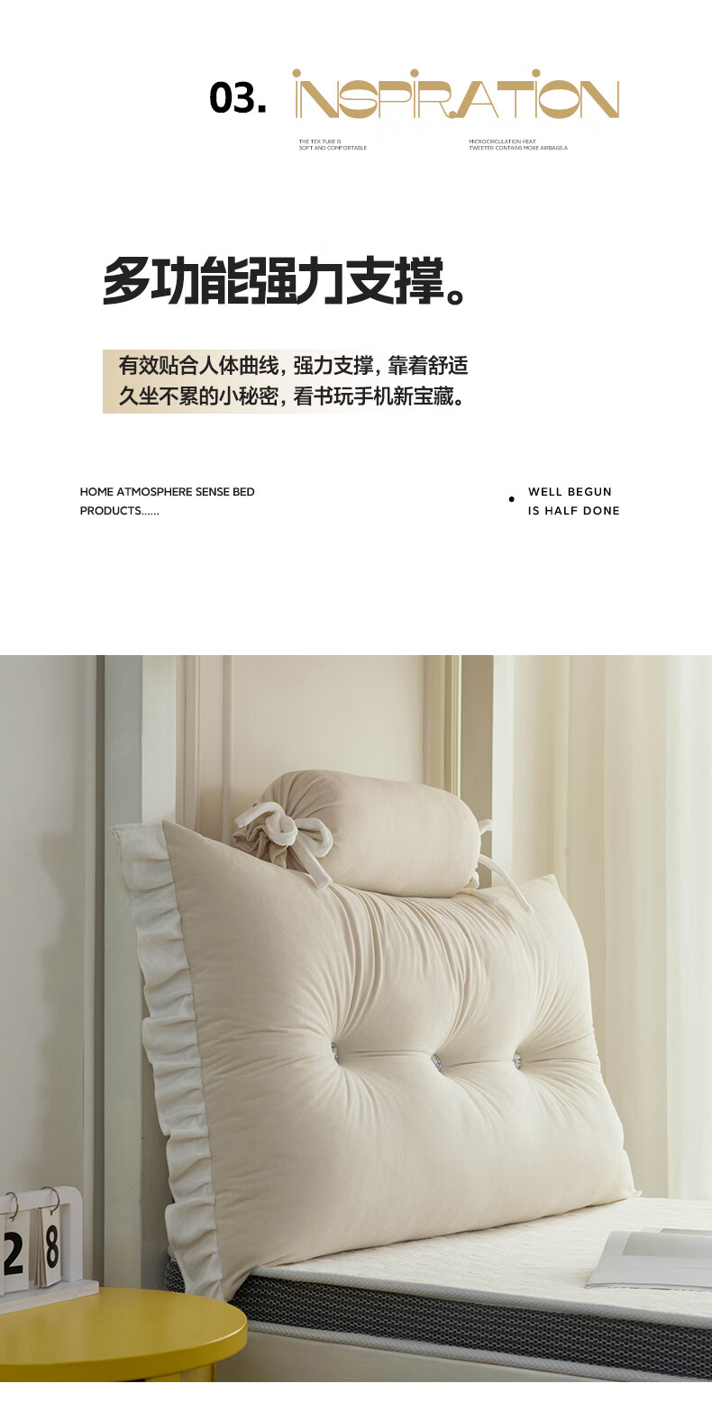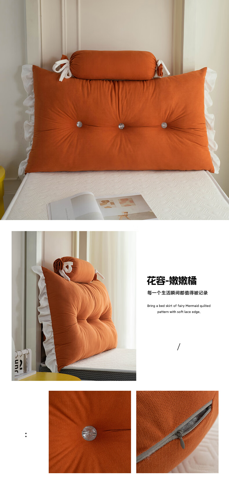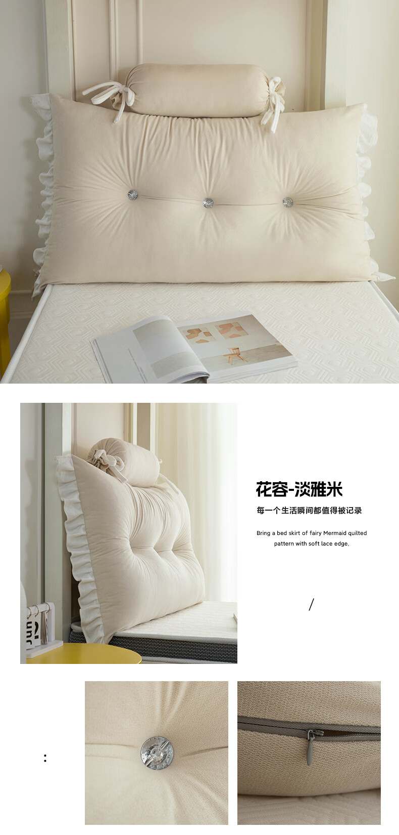La Chapelle's new bedside cushion student bed guardrail bedside soft bag anti-collision cushion dormitory bed backrest lumbar pillow Huarong - light Yami including pillow core length 180 height 50 thickness 20 cm two headrests