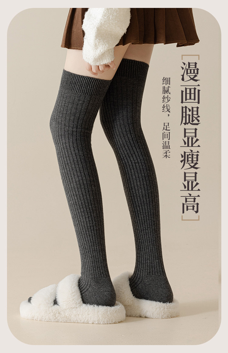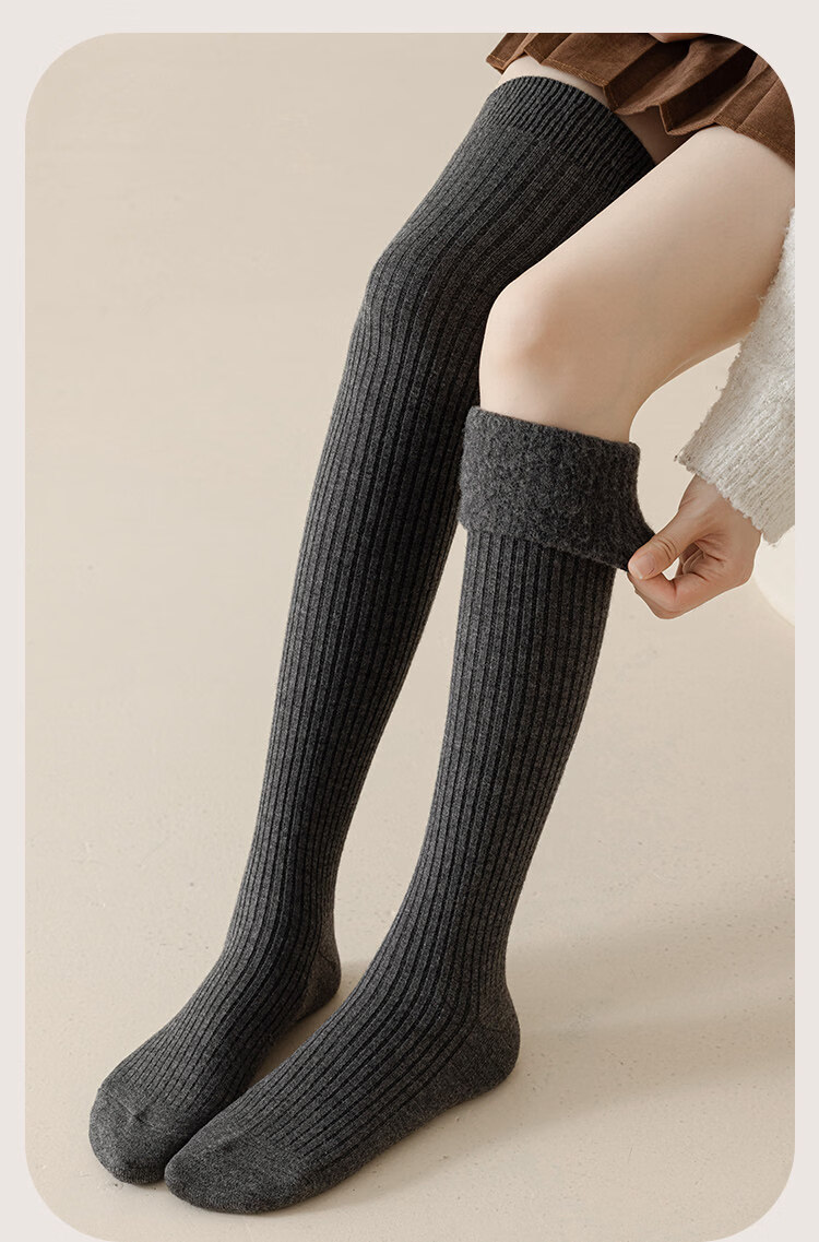 Perfect over-the-knee socks for women, plus velvet and thickened, warm stockings, winter lengthened non-slip thigh socks, slim wool knee socks, black_package 1 pair M average size 35-40_sock length about 58c