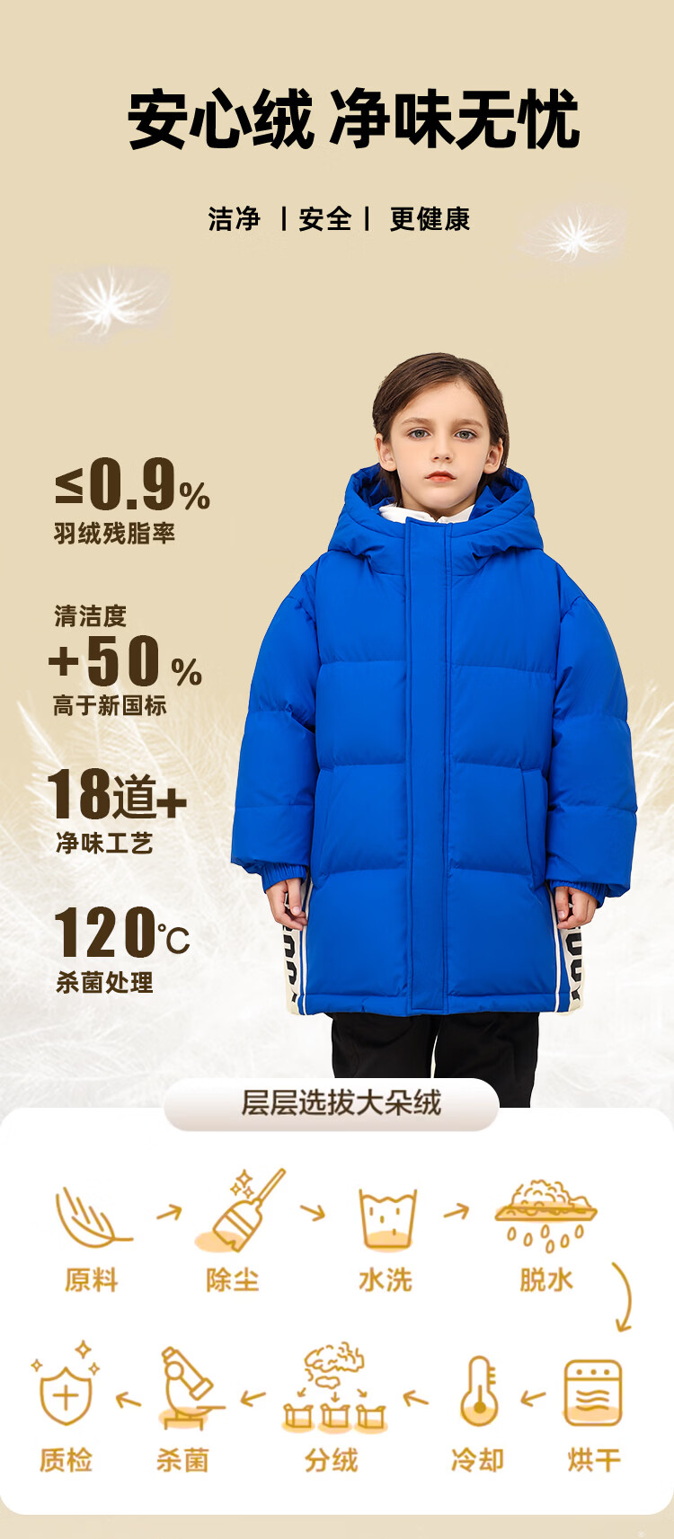 Kangbo children's down jacket boys' medium and long thickened new style loose and stylish winter jacket for middle and large children and teenagers yellow 1130 150