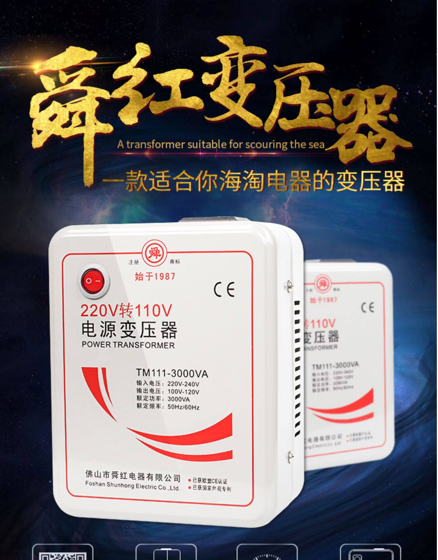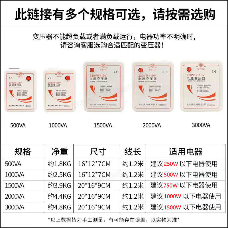 Shunhong 500W1000W2000W3000W transformer 220V to 110V power voltage converter for overseas use 1000VA (Chinese electrical appliances for overseas use) 110V to 22