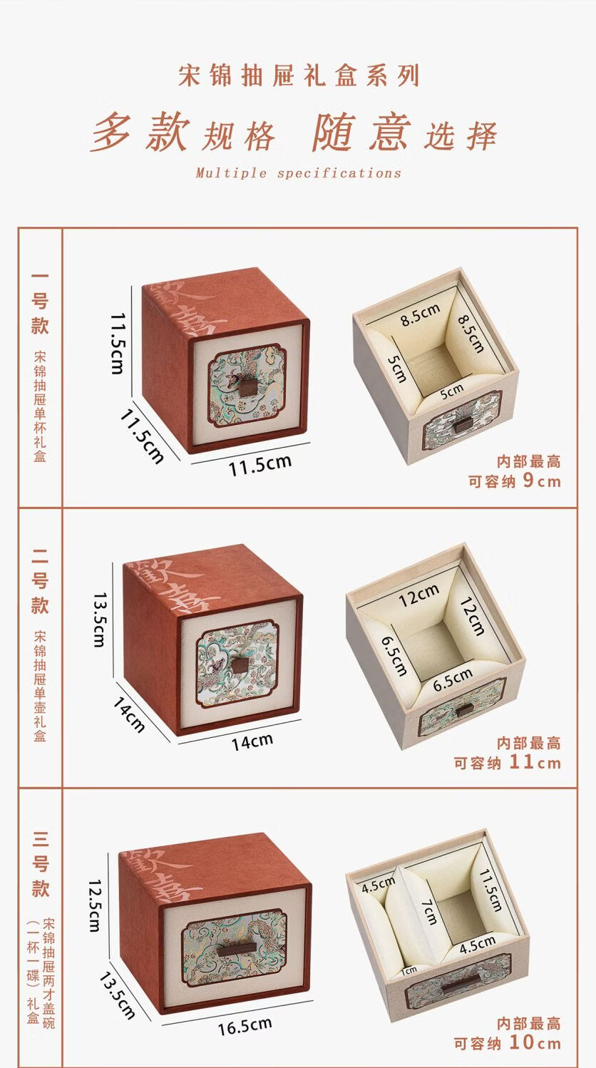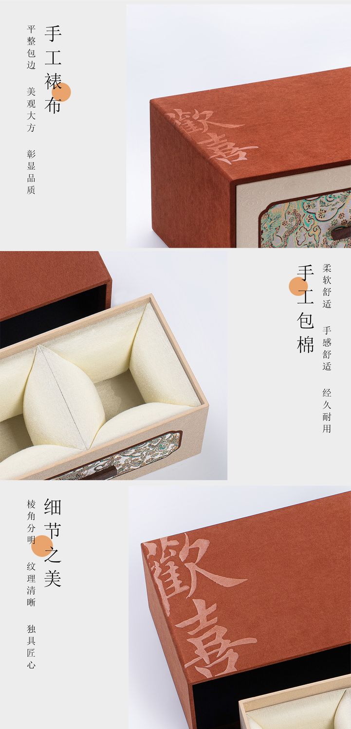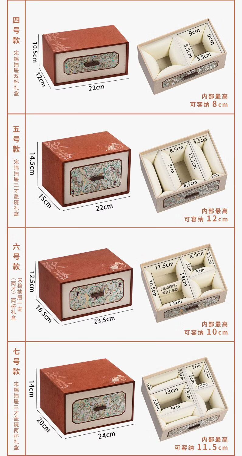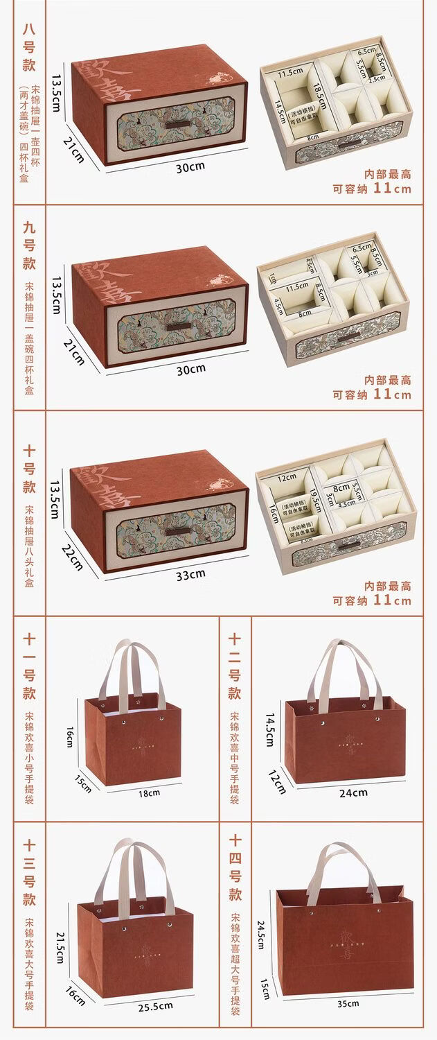 Fantasy ancient style drawer joy tea set packaging box single cup purple clay teapot gift box empty box porcelain three-cup covered bowl velvet brocade box No. 11 joy small handbag 18x15x16