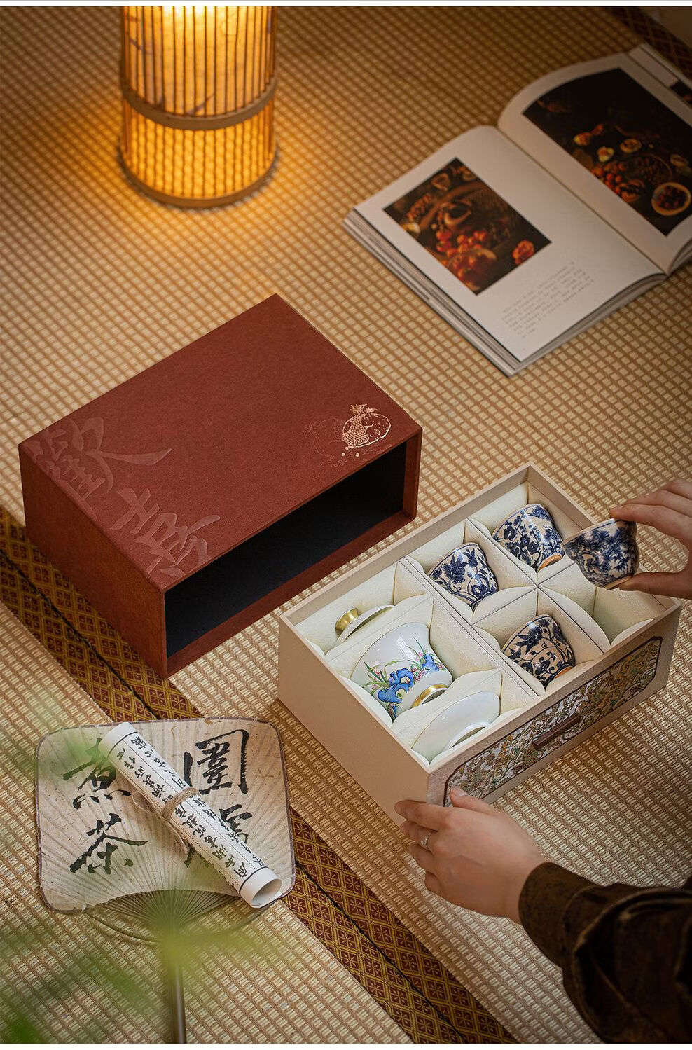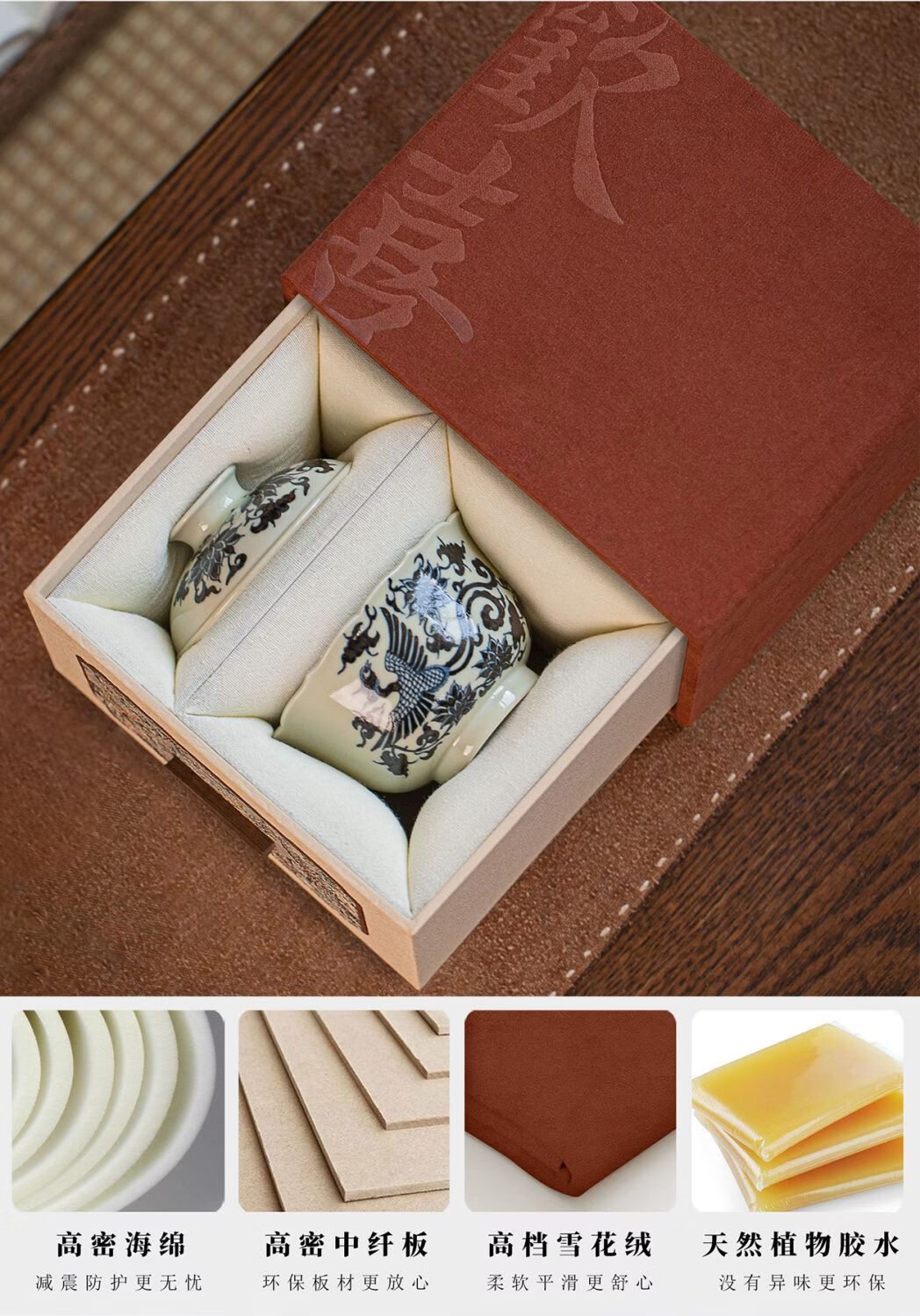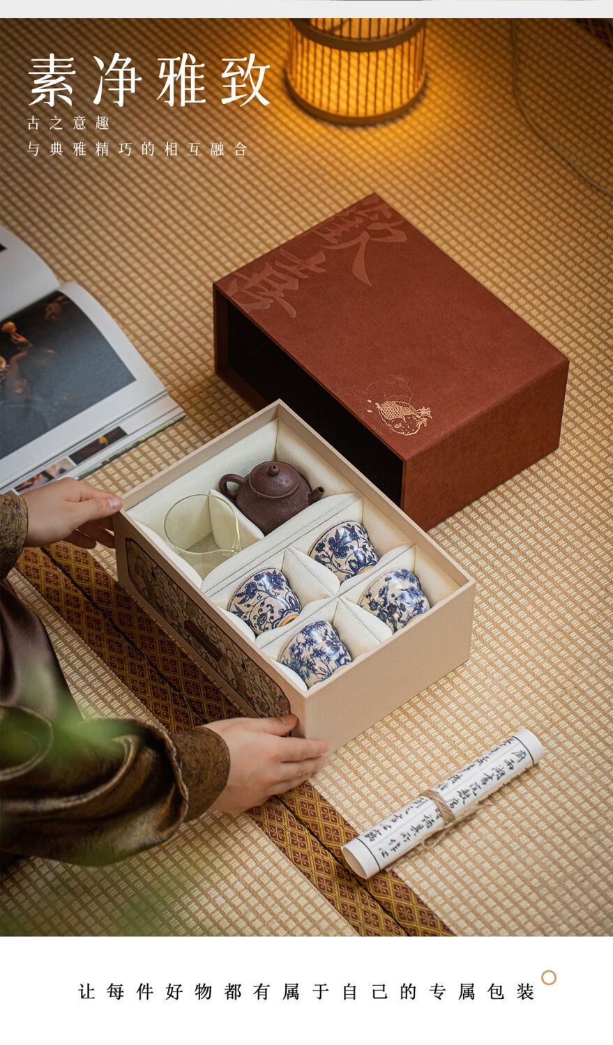 Fantasy ancient style drawer joy tea set packaging box single cup purple clay teapot gift box empty box porcelain three-cup covered bowl velvet brocade box No. 11 joy small handbag 18x15x16