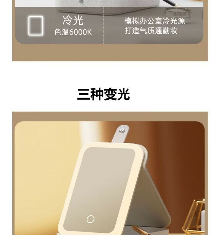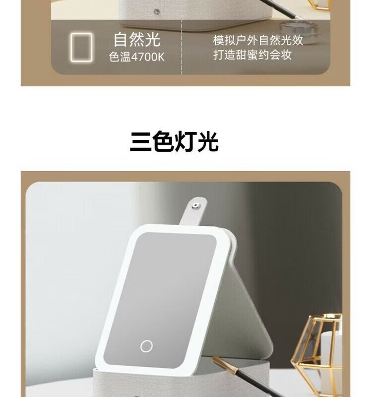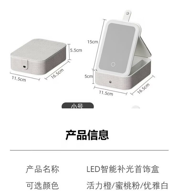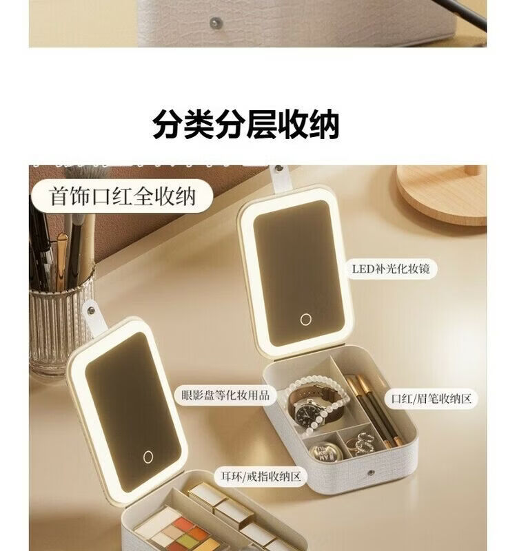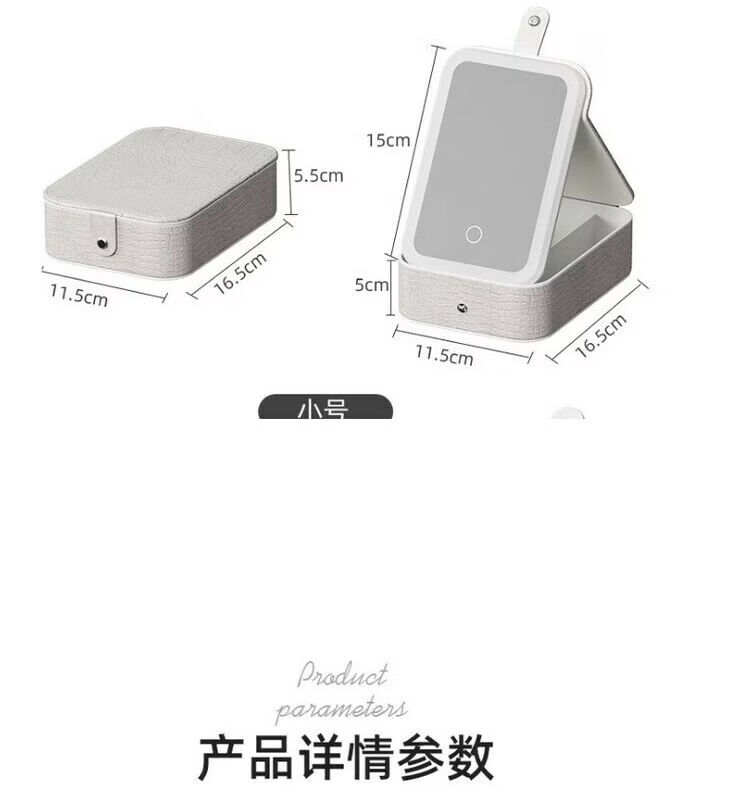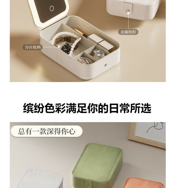 Jewelry storage box, high-end LED beauty mirror, jewelry box, portable light-filling mirror, folding cosmetics storage box, beauty box, pearl white + touch three-color light