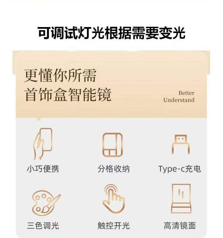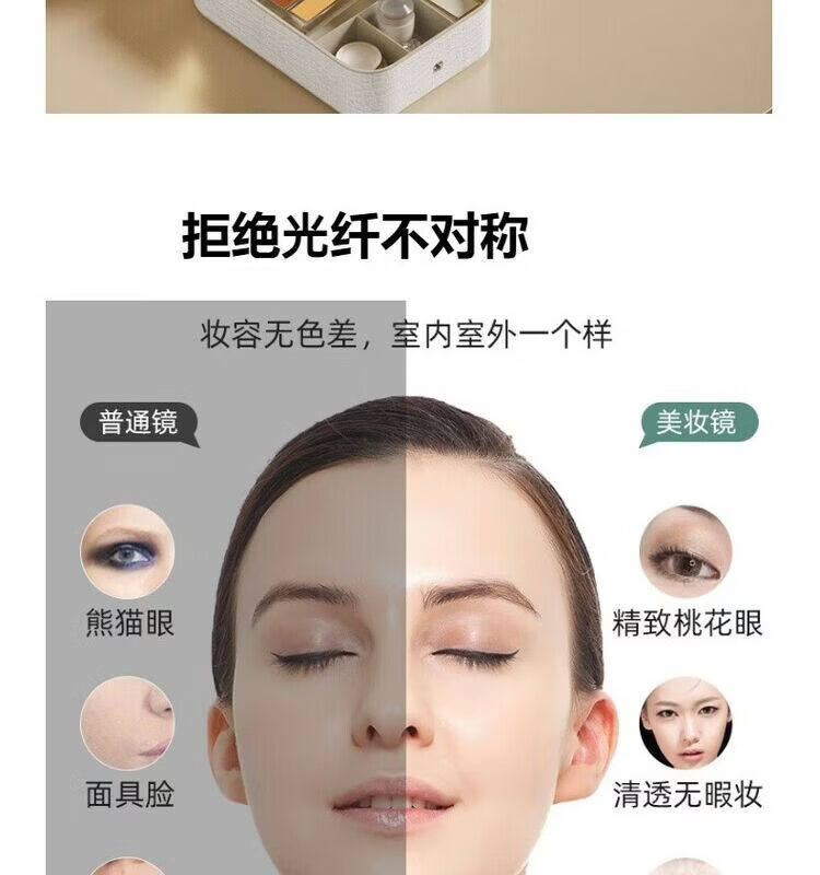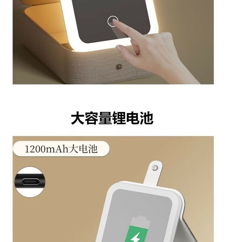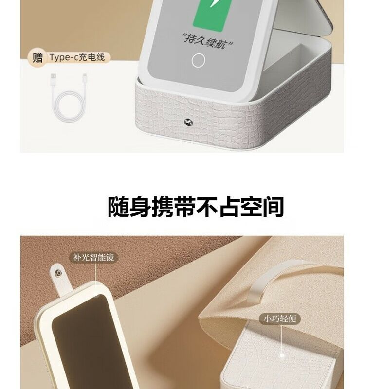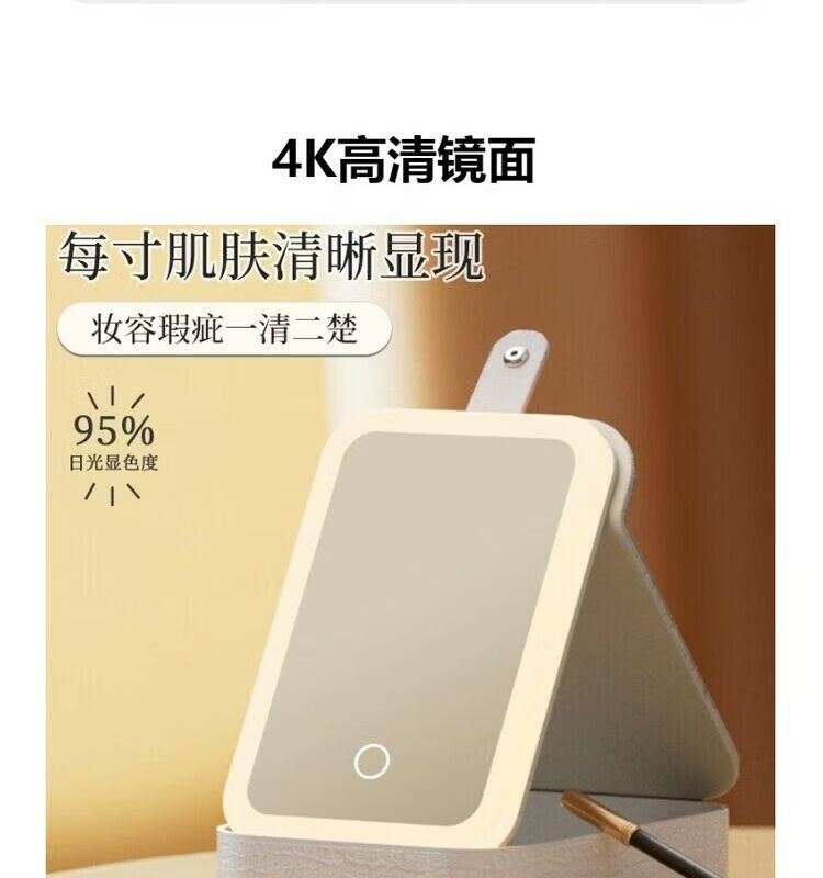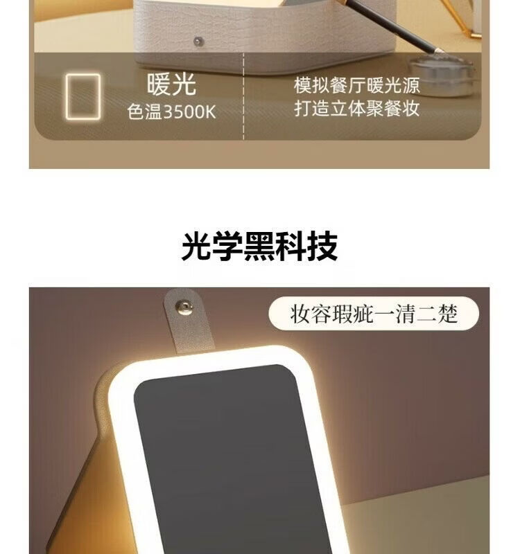 Jewelry storage box, high-end LED beauty mirror, jewelry box, portable light-filling mirror, folding cosmetics storage box, beauty box, pearl white + touch three-color light