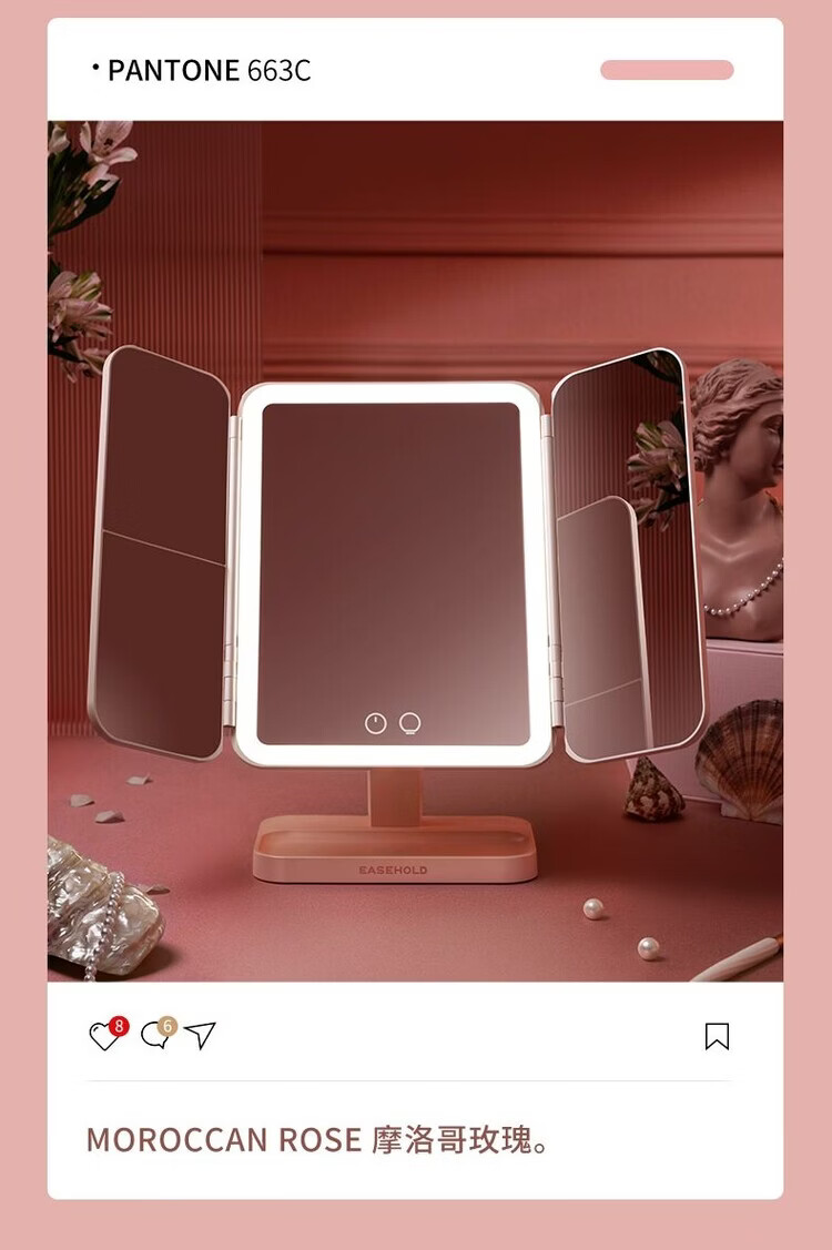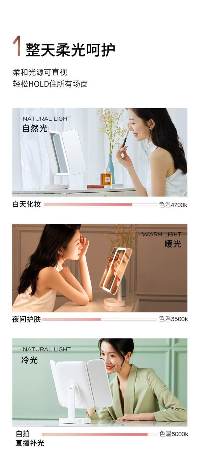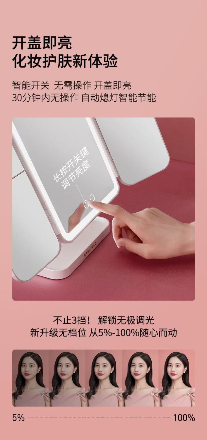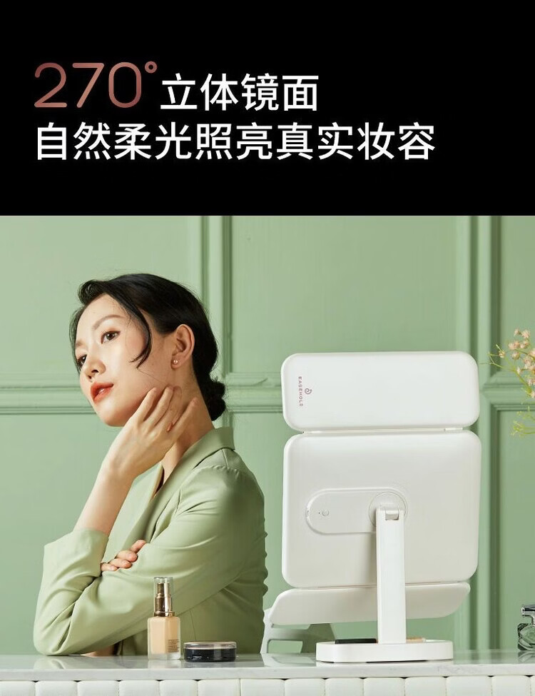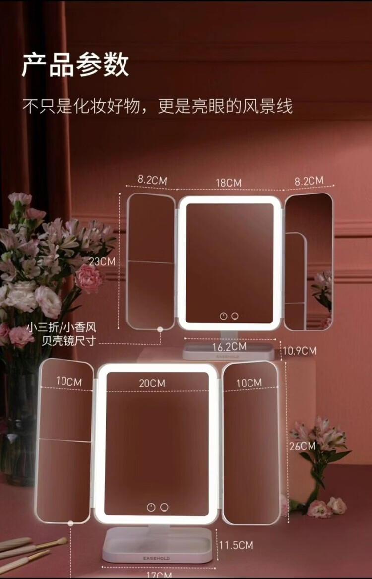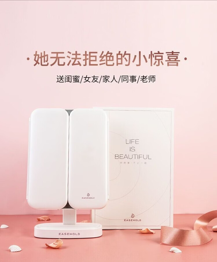 EASEHOLD Rechargeable Foldable Portable Makeup Mirror Ins Style Desktop Beauty Mirror with LED Light Minimalist White - Small 30% off 2000 mAh Tricolor Light