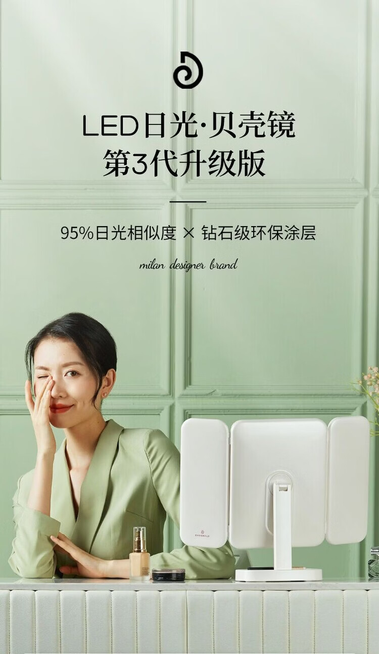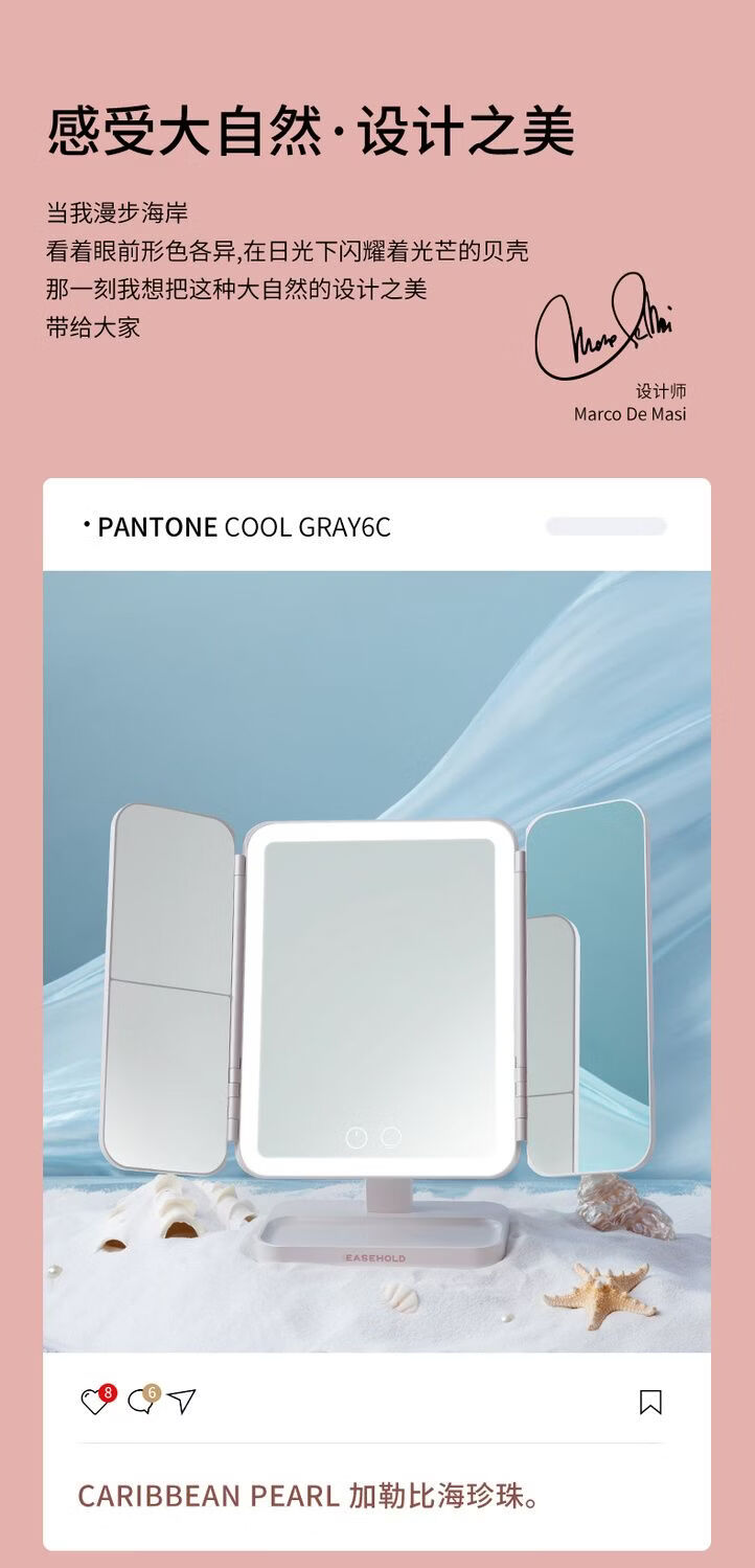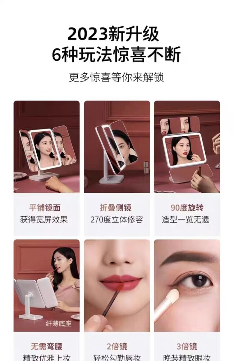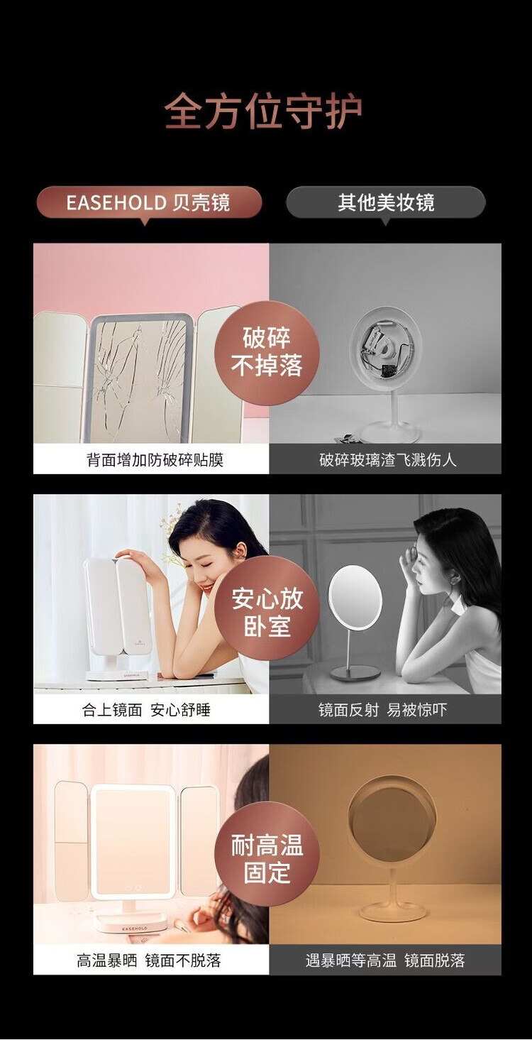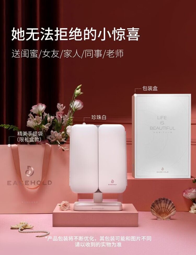 EASEHOLD Rechargeable Foldable Portable Makeup Mirror Ins Style Desktop Beauty Mirror with LED Light Minimalist White - Small 30% off 2000 mAh Tricolor Light