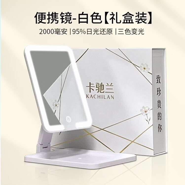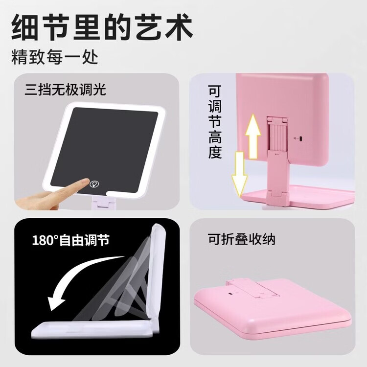 Portable Makeup Mirror Portable Desktop LED Folding Makeup Mirror with Lights Birthday Gift for Women White HD Folding Mirror/Adjustable Height HD Mirror 95% Daylight Reduction