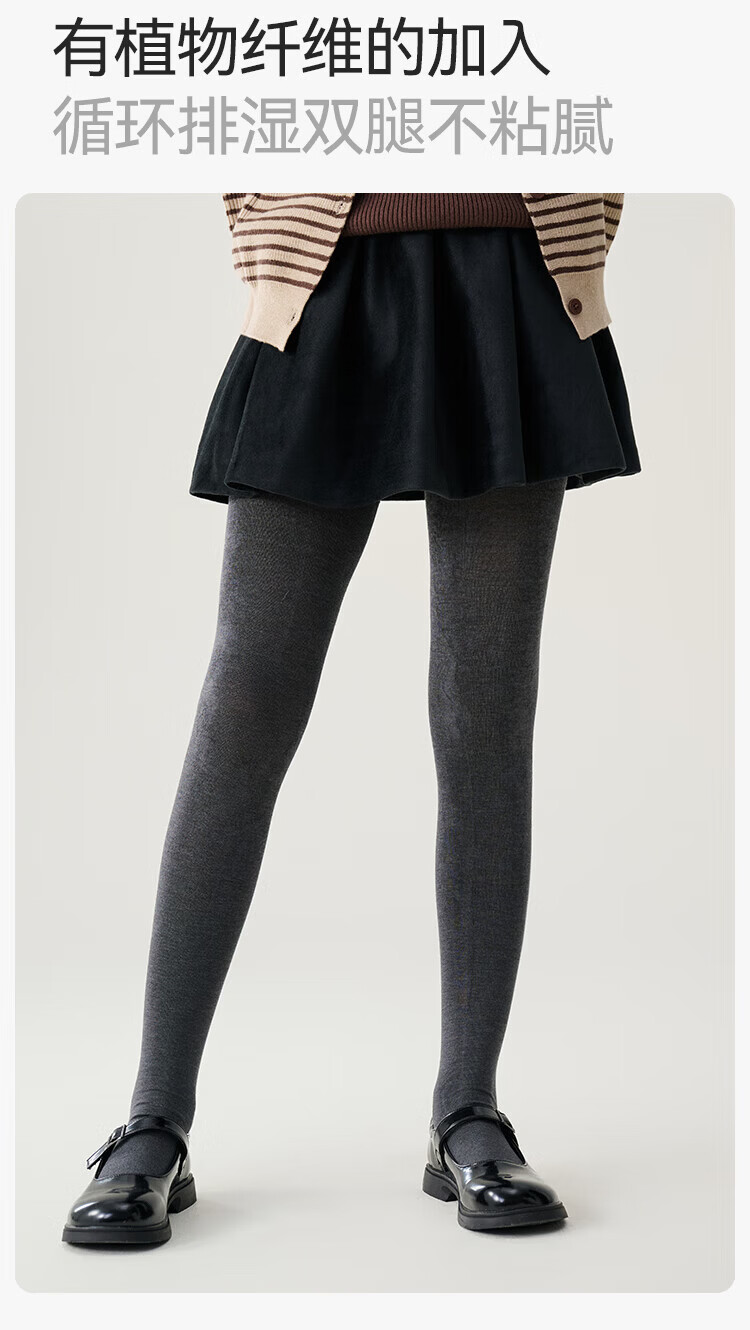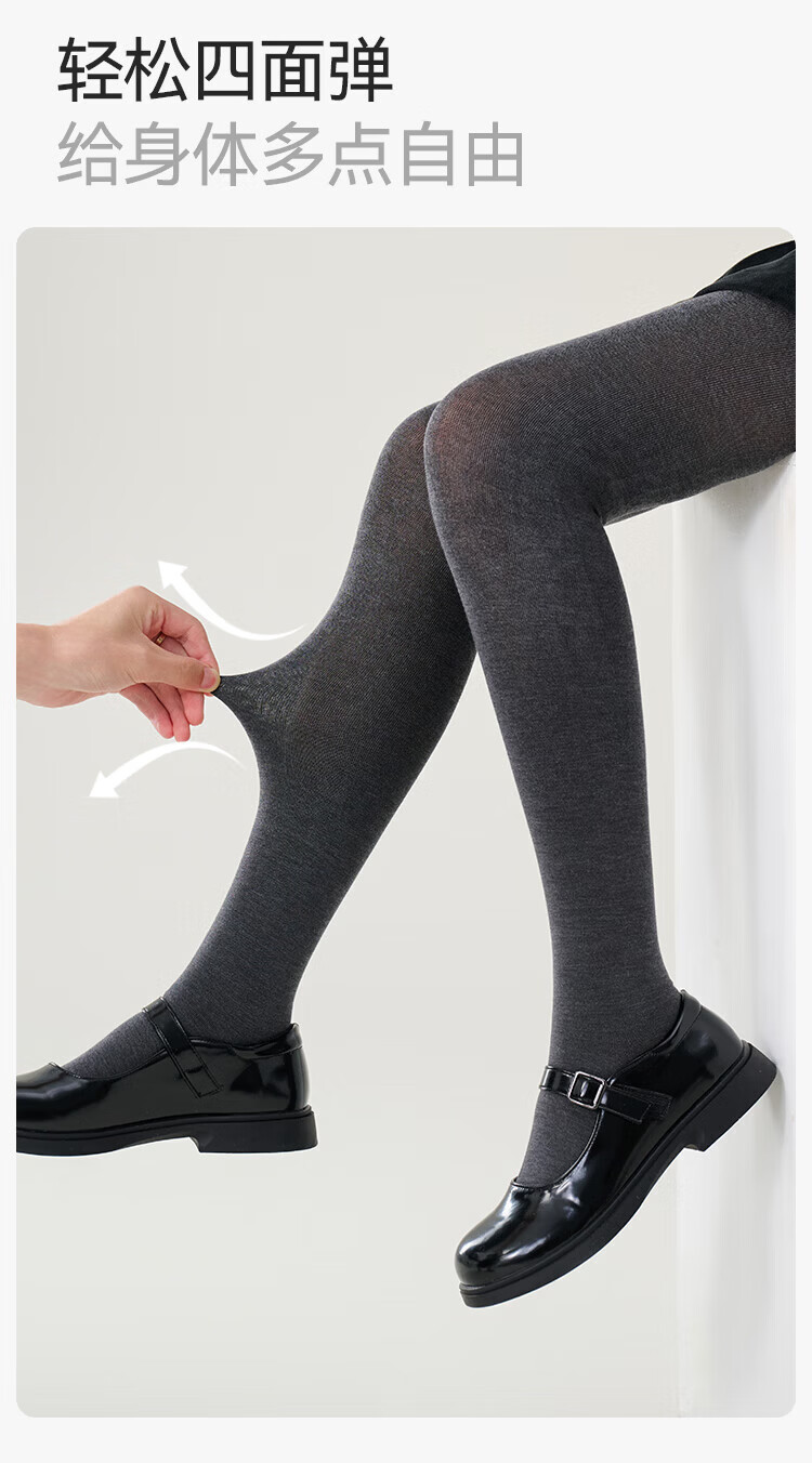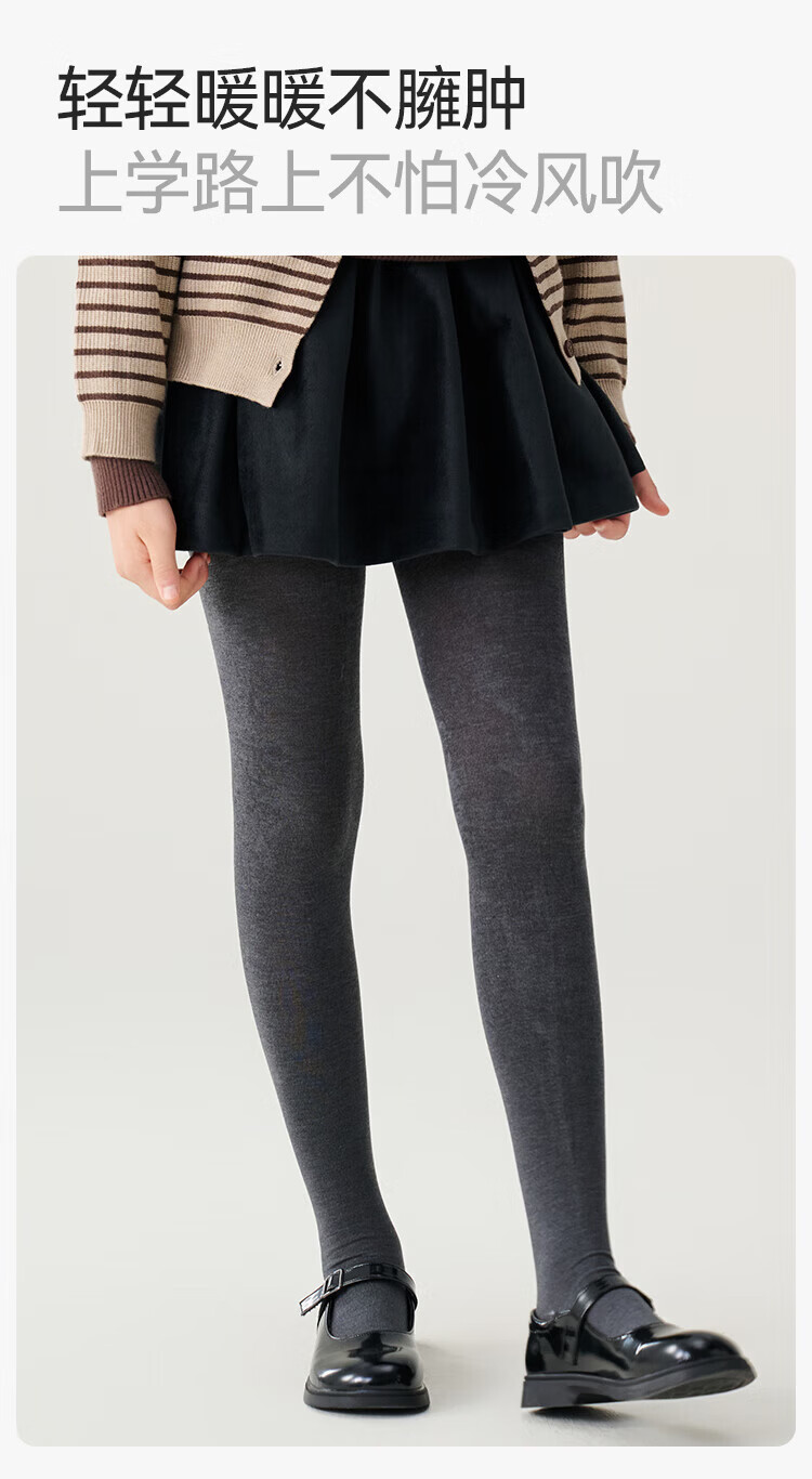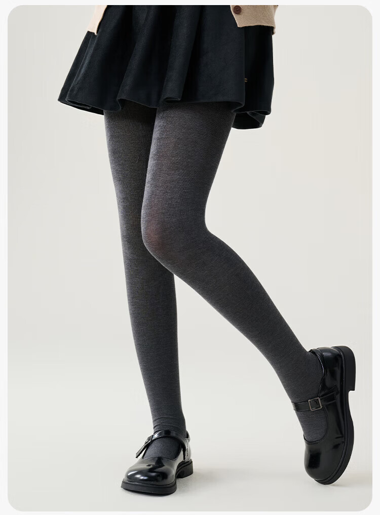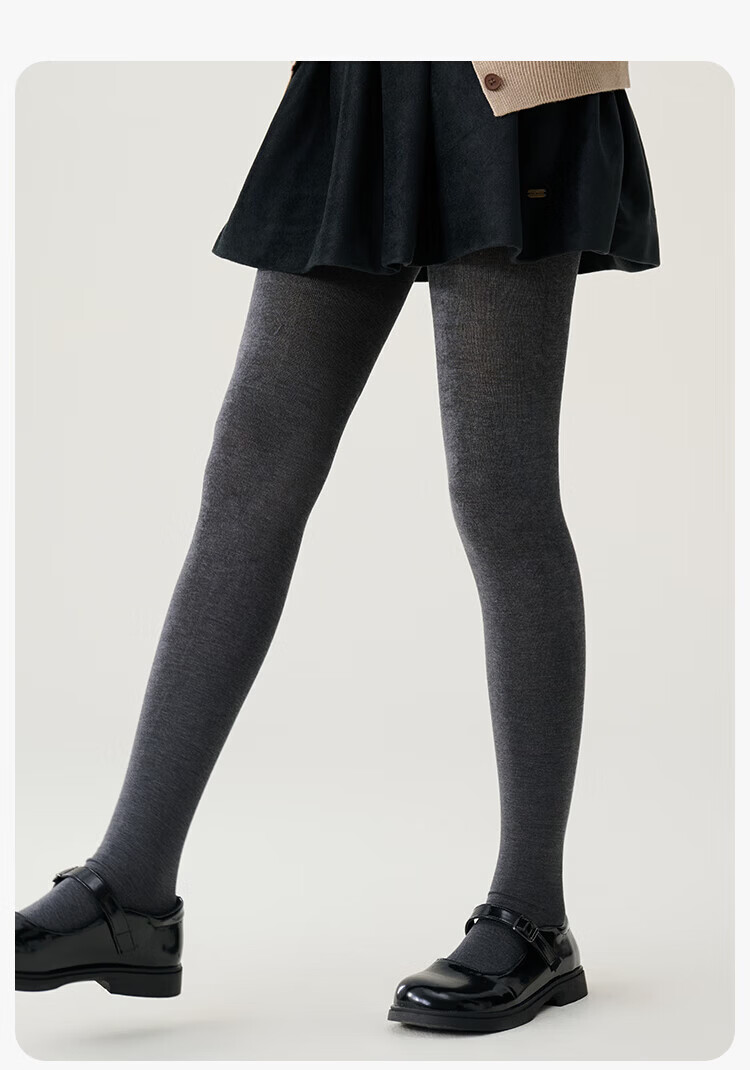 YEEHOO Teenagers Autumn Pantyhose Merino Wool Soft Warm High-Elastic High-Waist Wool Leggings Black Feather Gray 14 Years Old and Over F