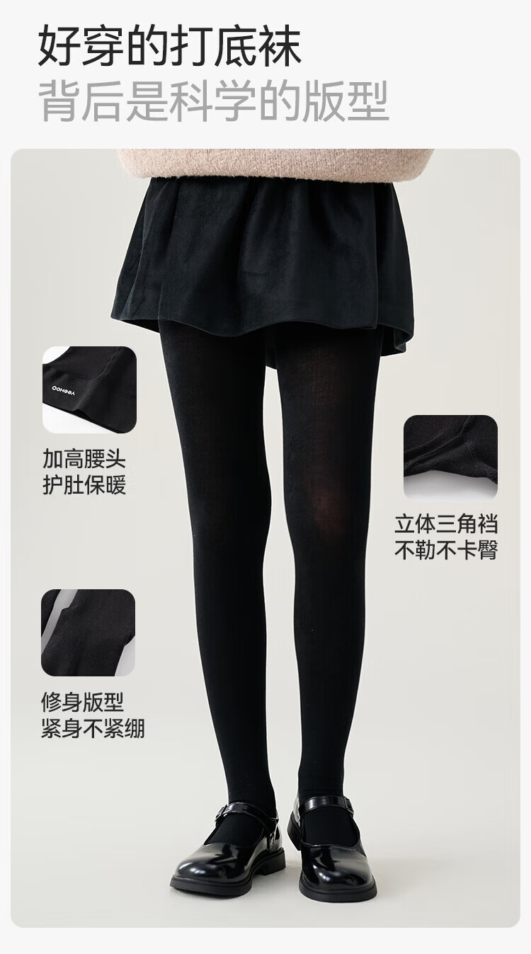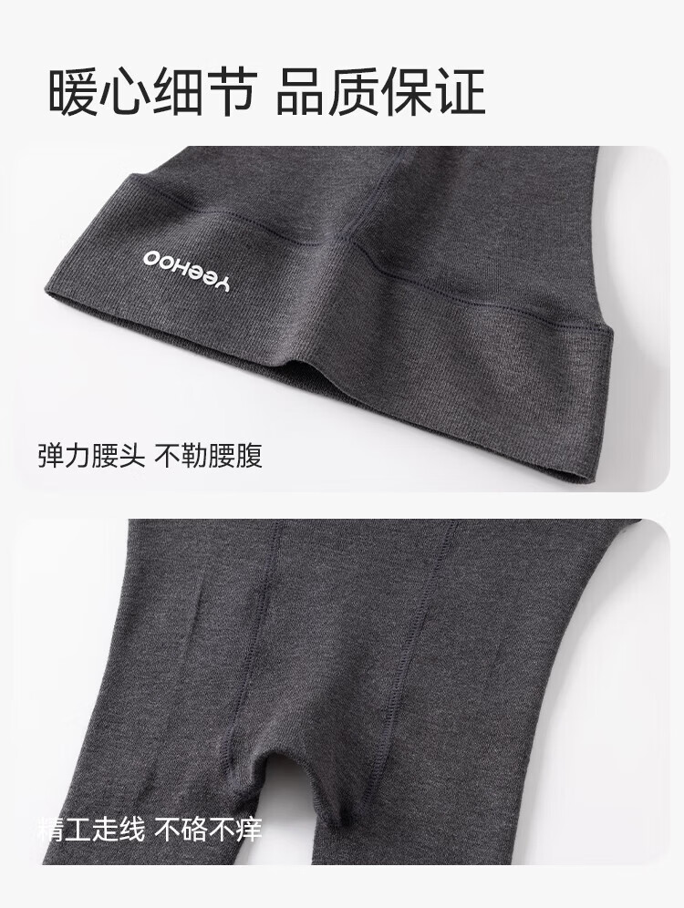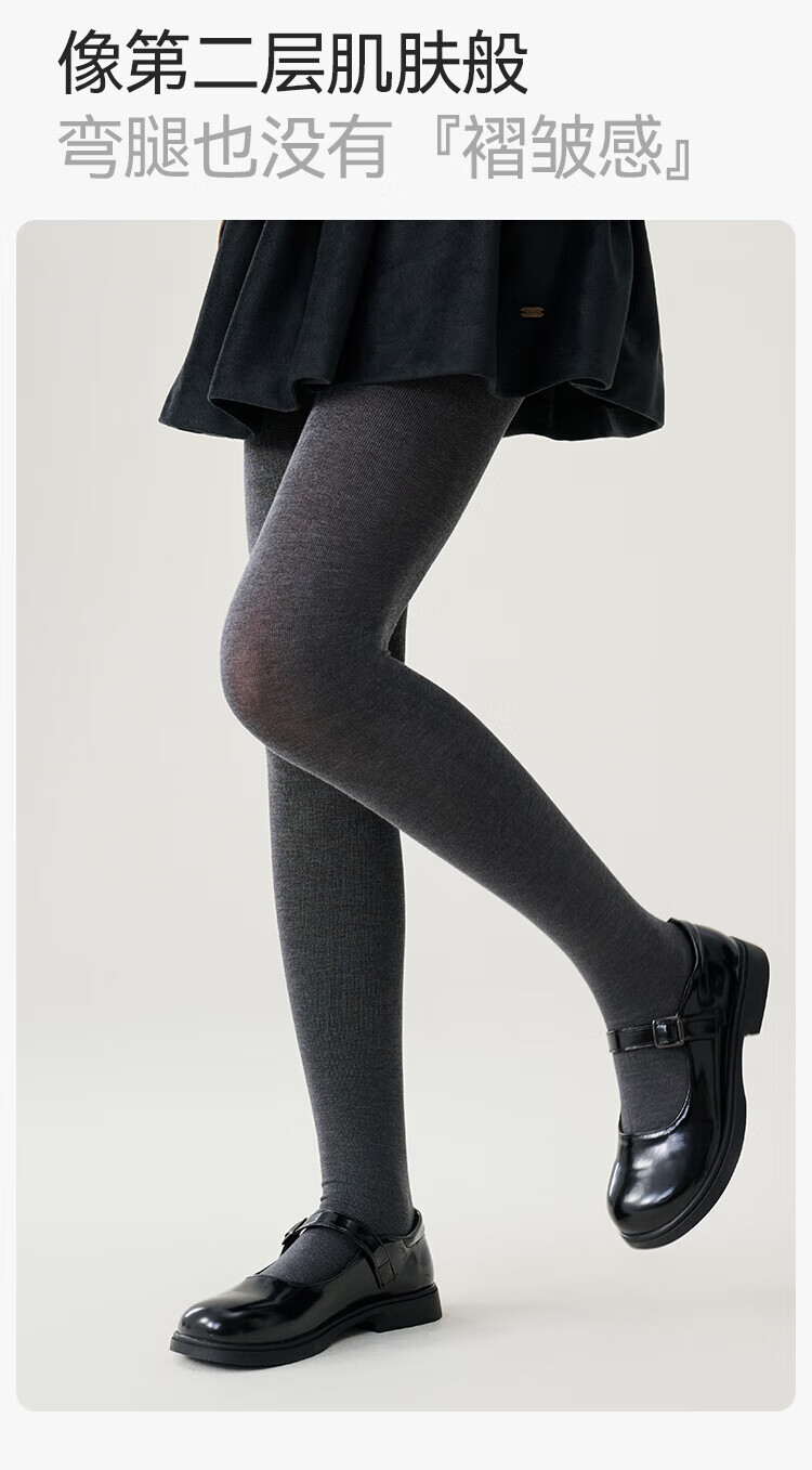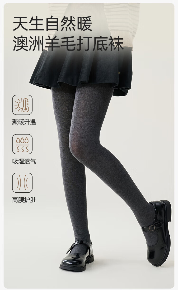 YEEHOO Teenagers Autumn Pantyhose Merino Wool Soft Warm High-Elastic High-Waist Wool Leggings Black Feather Gray 14 Years Old and Over F