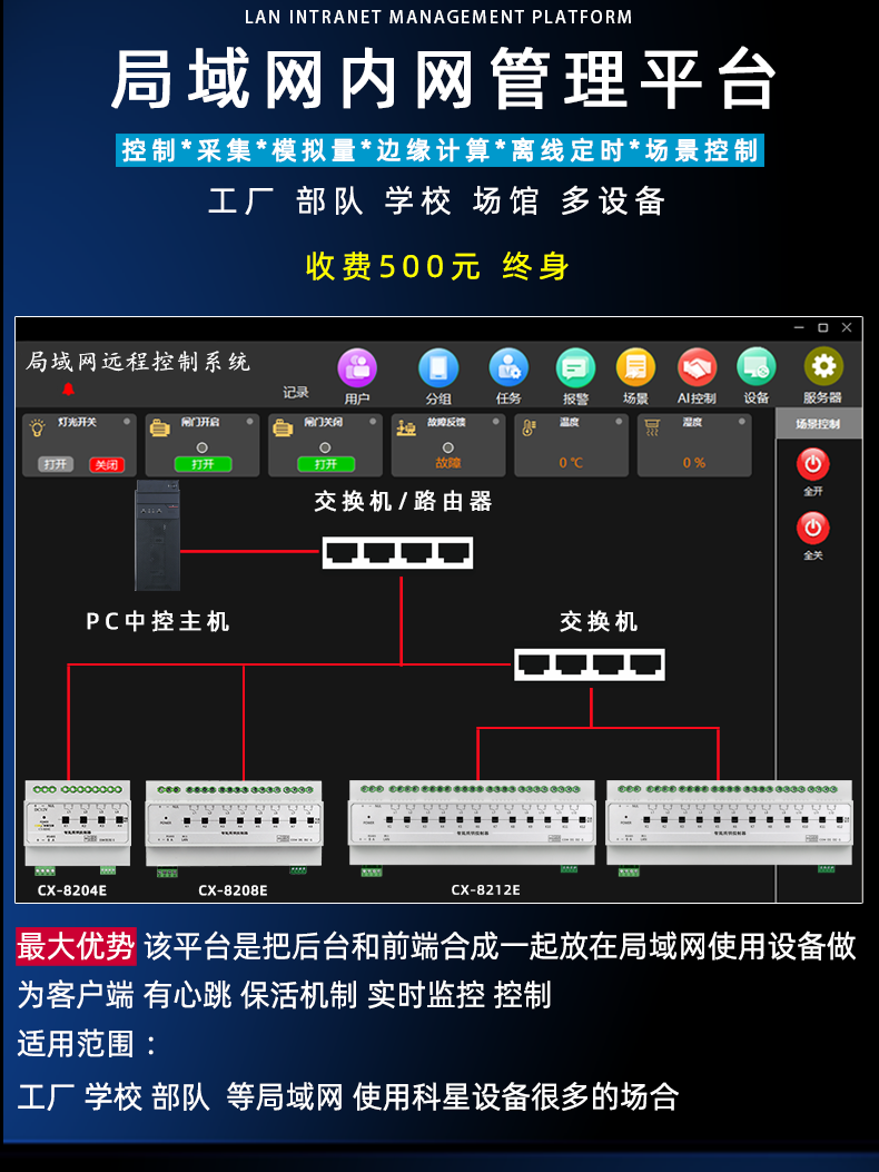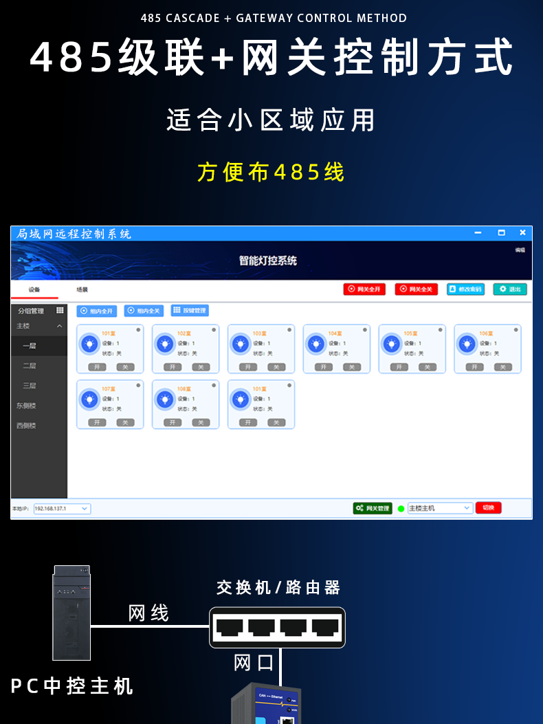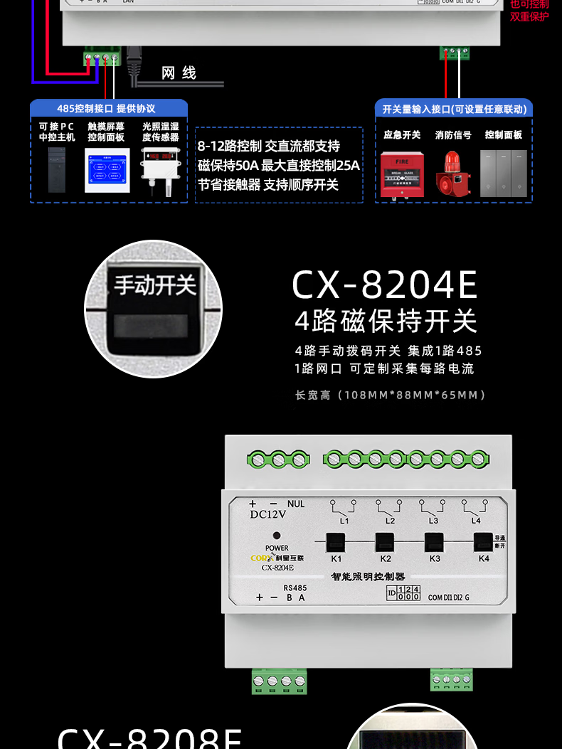 50A high current network port 485 light control timing light control intelligent lighting module switch led light 12/6 channels CX-8102L-MQTT docking (4G-2 channels magnetic hold open