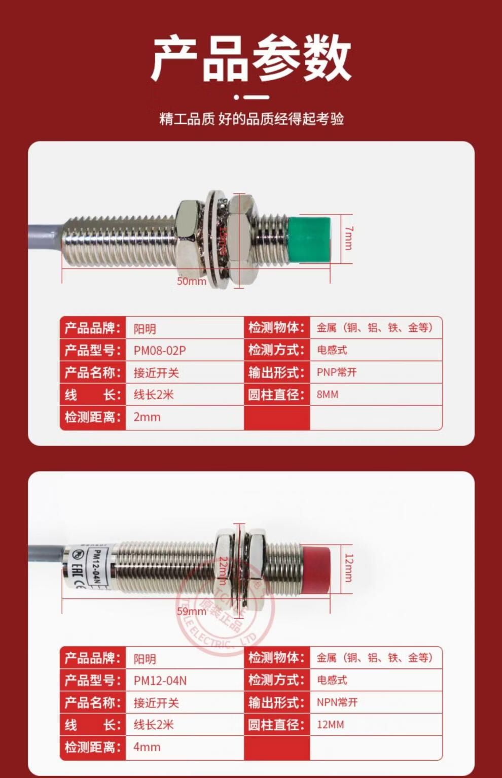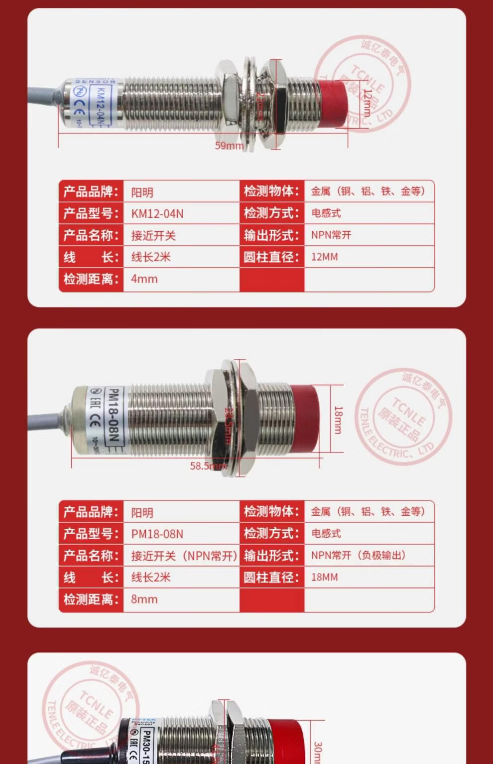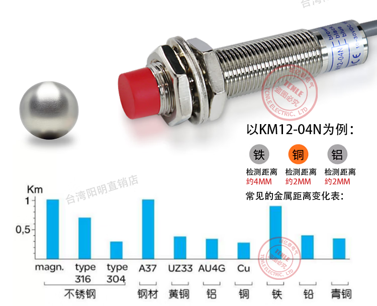 Yangming proximity switch KM12-04N/04P KM12-04NB/04PB three-wire NPN normally open/PNP normally open KM12-04N