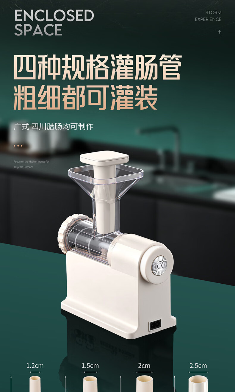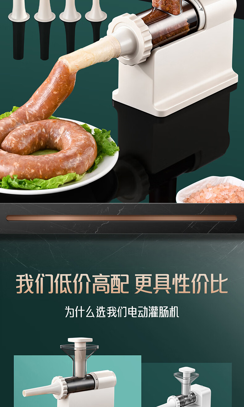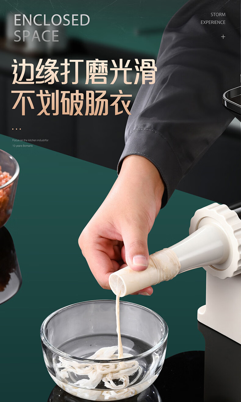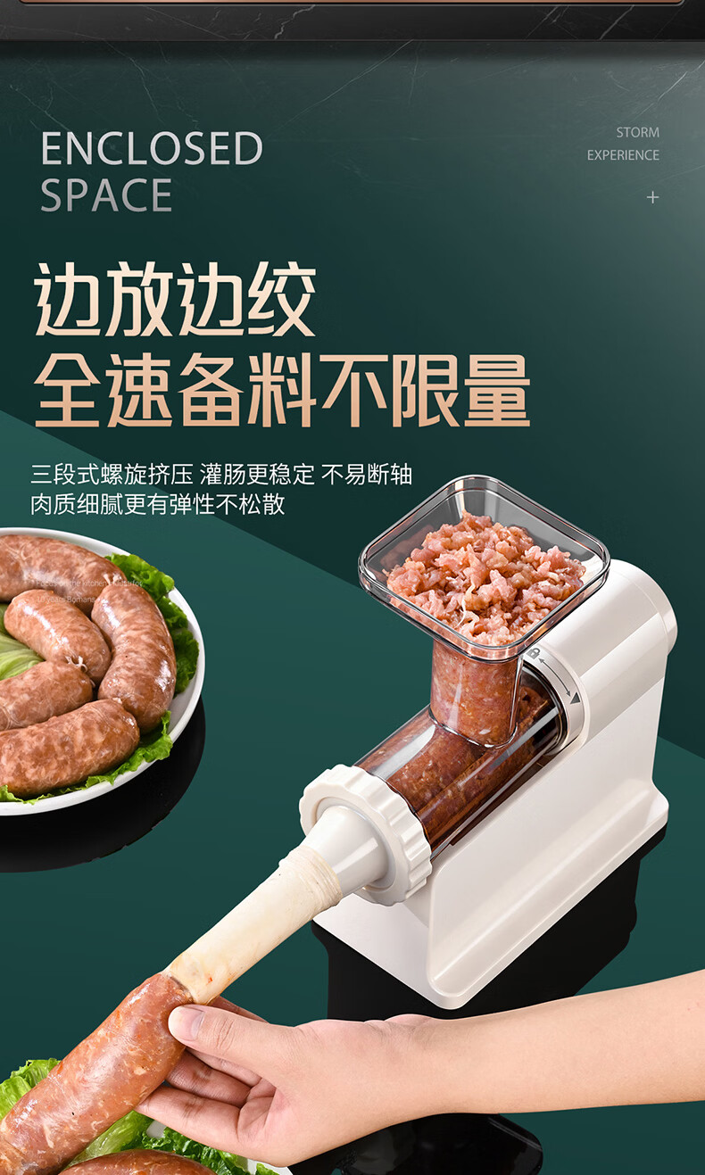 Tangxitang fully automatic electric enema machine hand-cranked household can sausage sausage tool casing sausage filling artifact hand-cranked model-milk white free 4 enema tubes + meat stick
