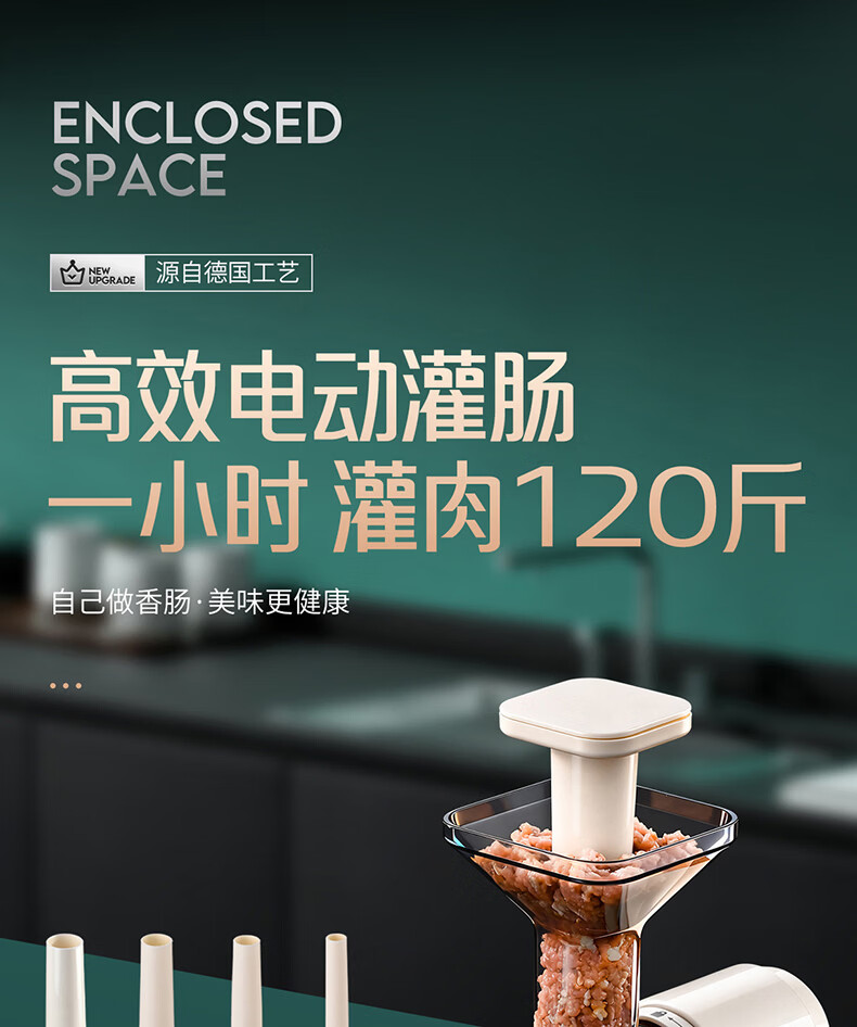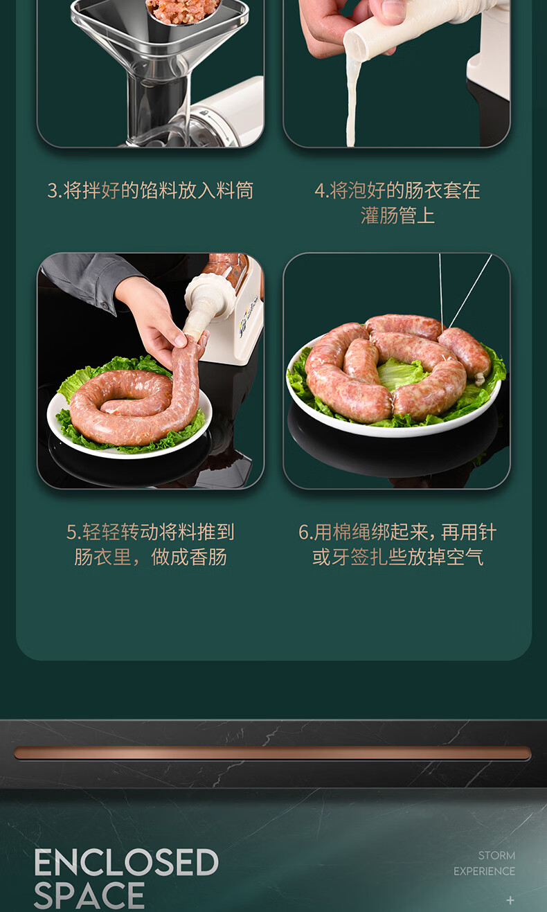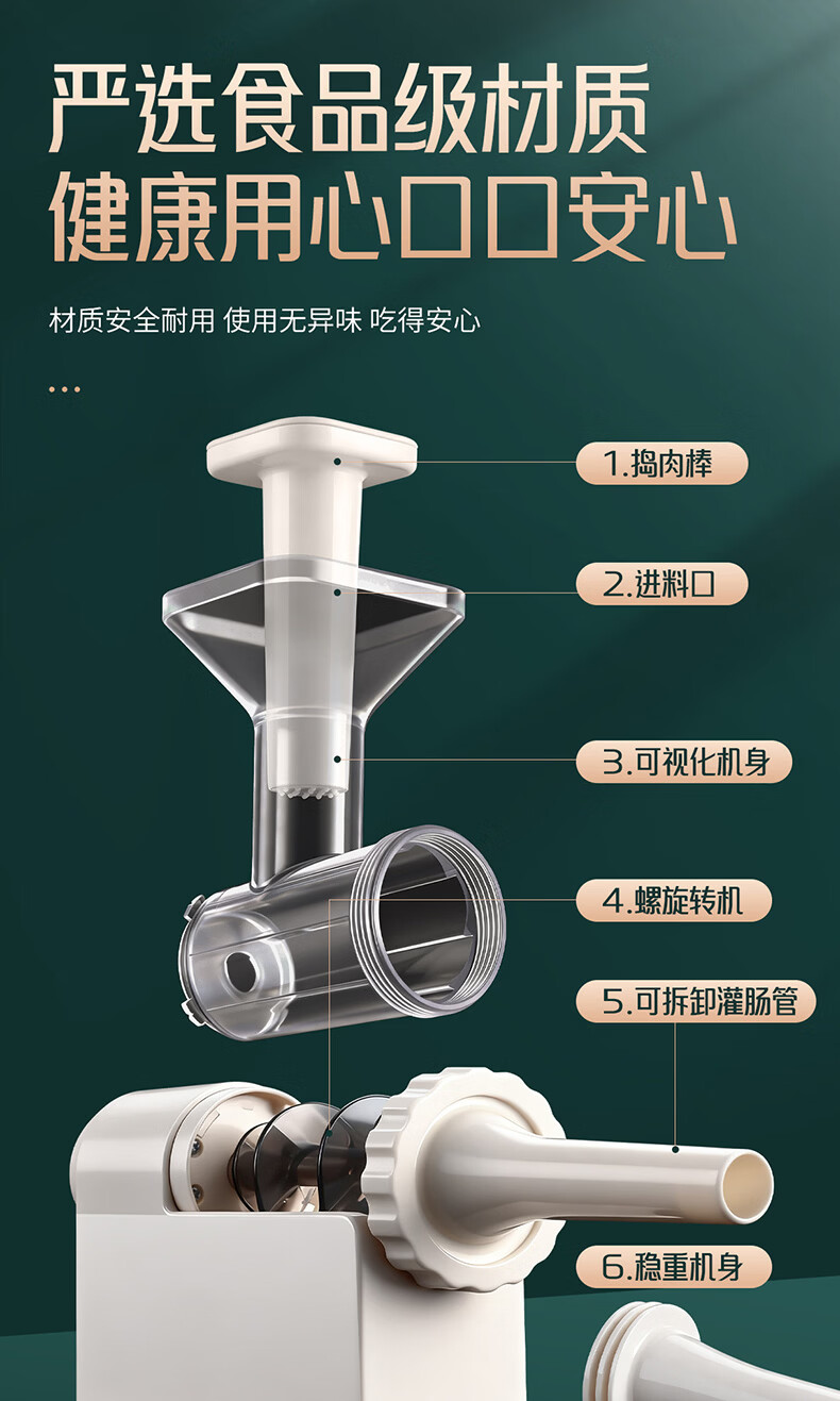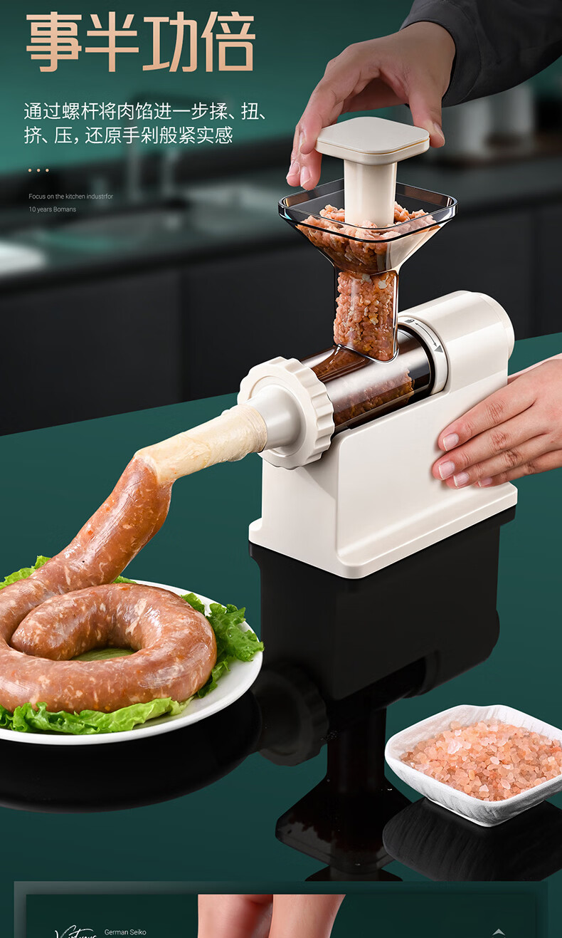 Tangxitang fully automatic electric enema machine hand-cranked household can sausage sausage tool casing sausage filling artifact hand-cranked model-milk white free 4 enema tubes + meat stick