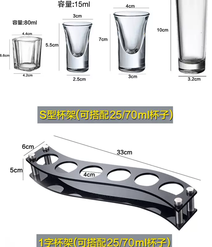 Yusenyi acrylic bullet cup holder bar KTV beer cup holder B52 liquor cup shots one cup holder wonton cup holder bullet cup 250ml (pack of 6
