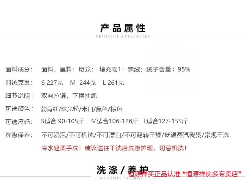 Hengyuanxiang Super Soft 95 White Goose Down Down Jacket Women's Winter Small Red Short Style 2026 New High-end Thickened Goose Down Jacket Pearlescent Pink 95 Large Down Jacket S 90-115Jin Jin is equal to 0.5 kg