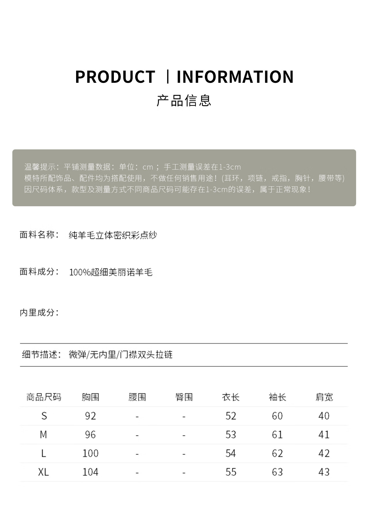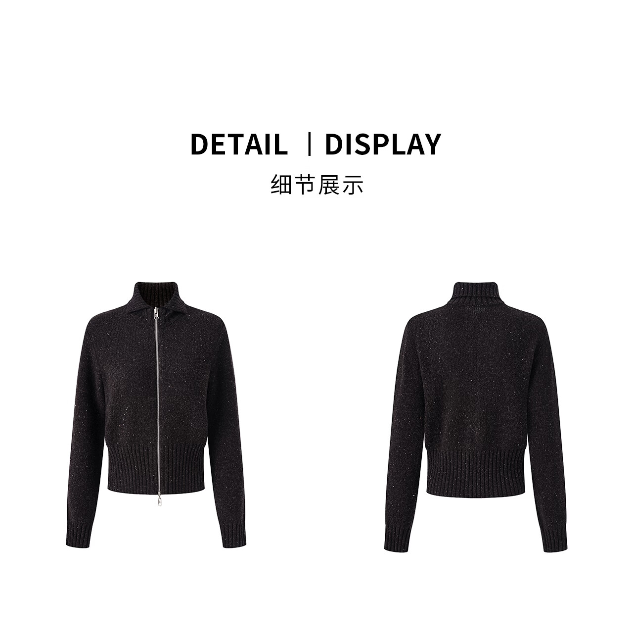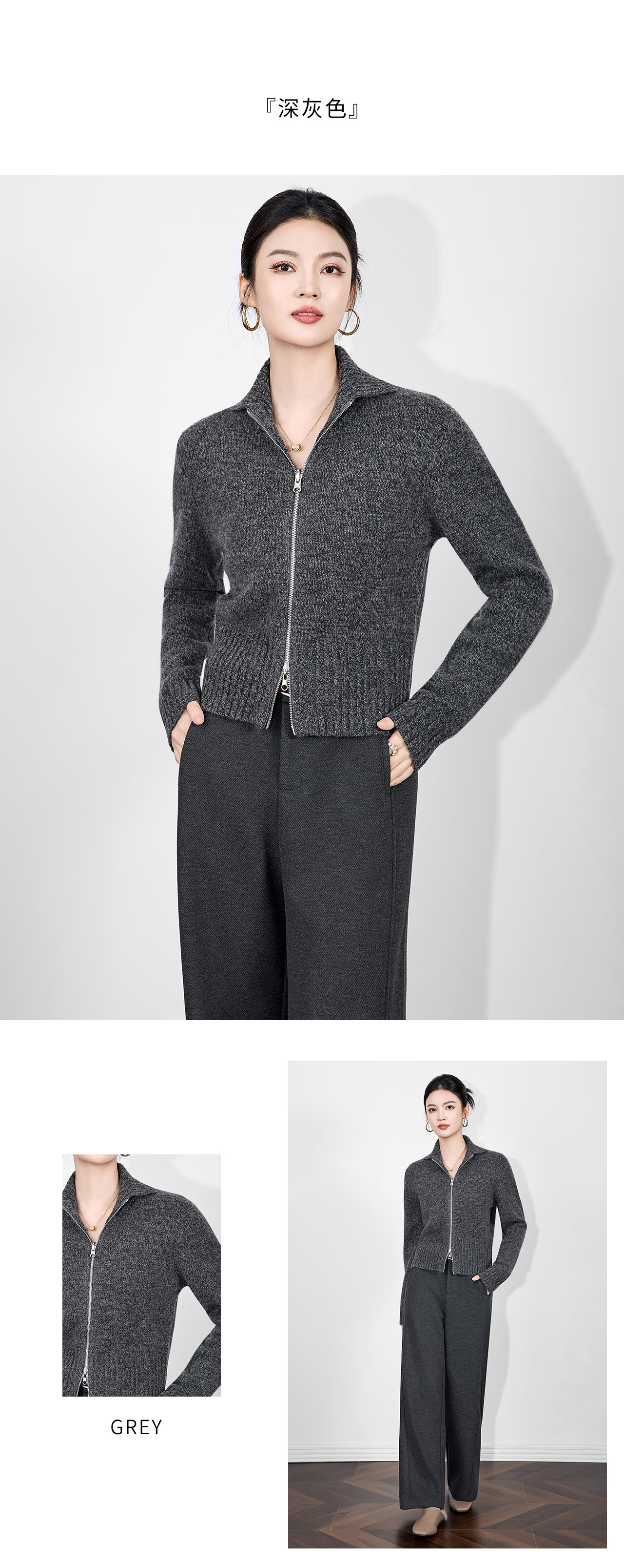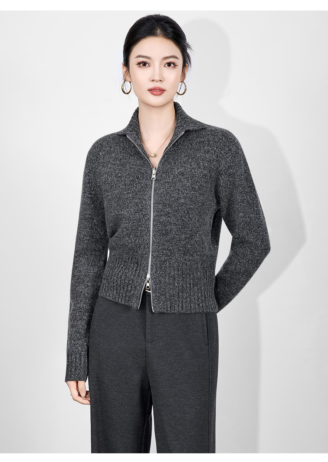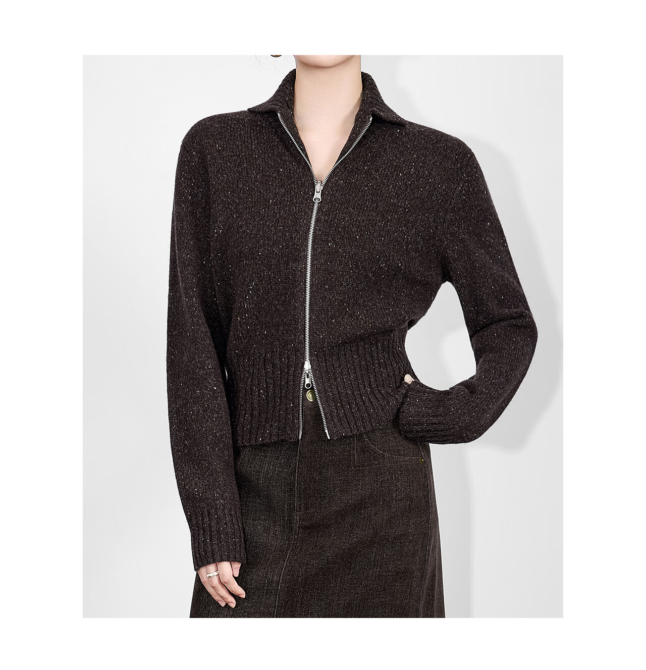 Pure wool three-dimensional densely woven colorful dot yarn lapel double zipper sweater jacket minimalist women's autumn and winter style dark gray S