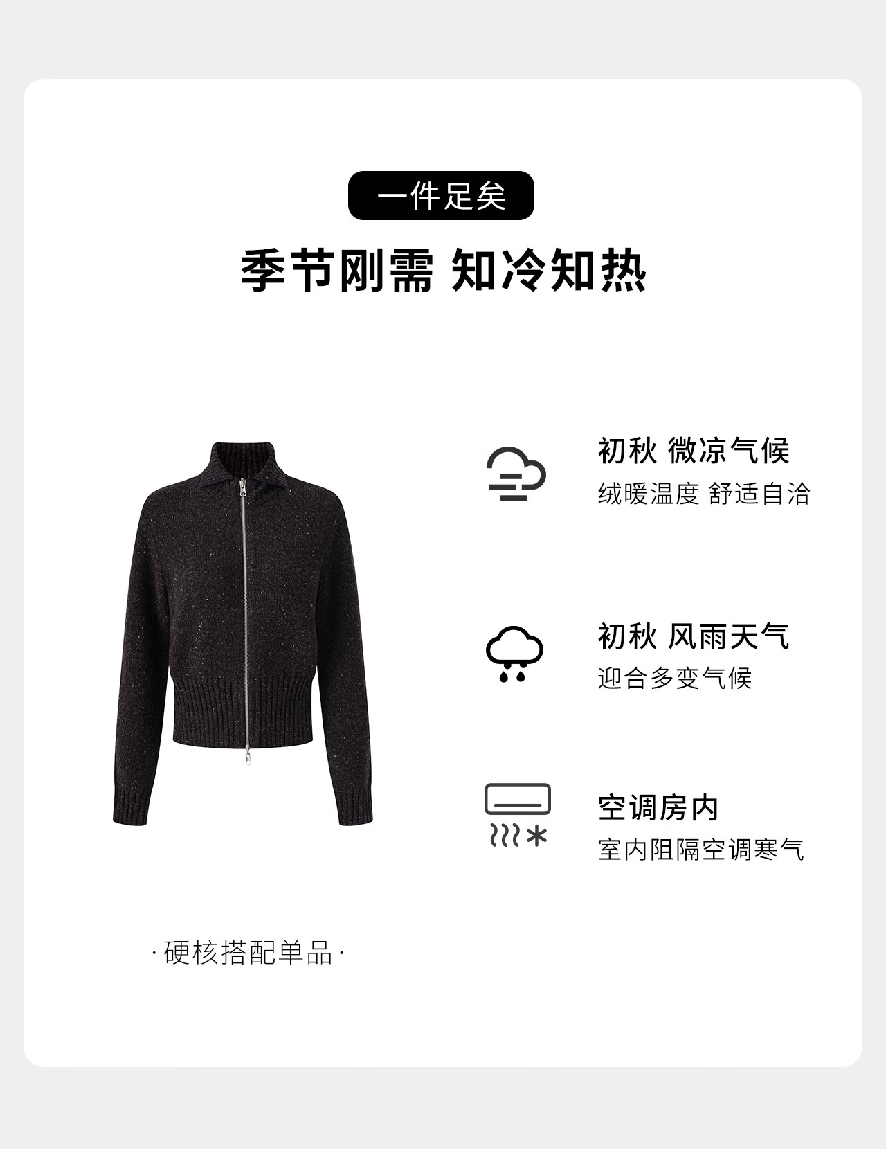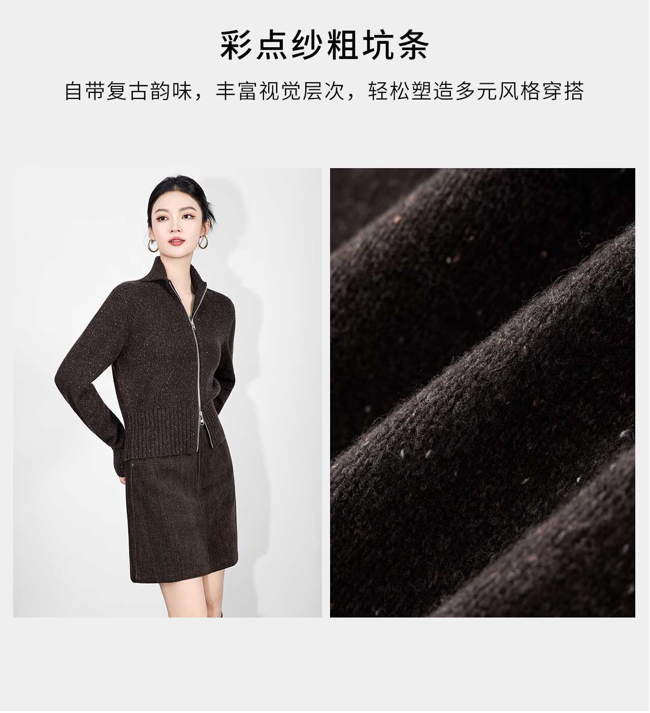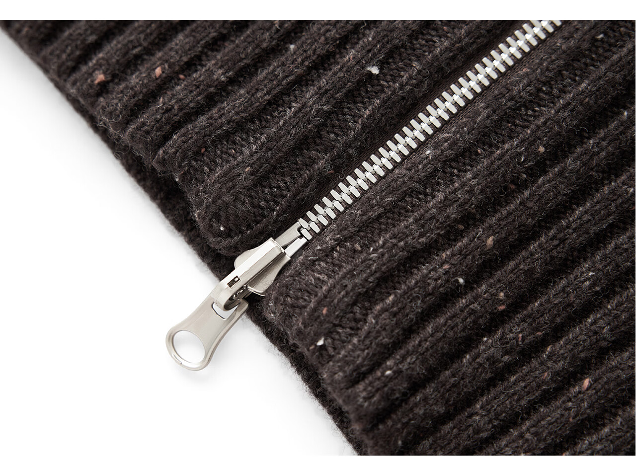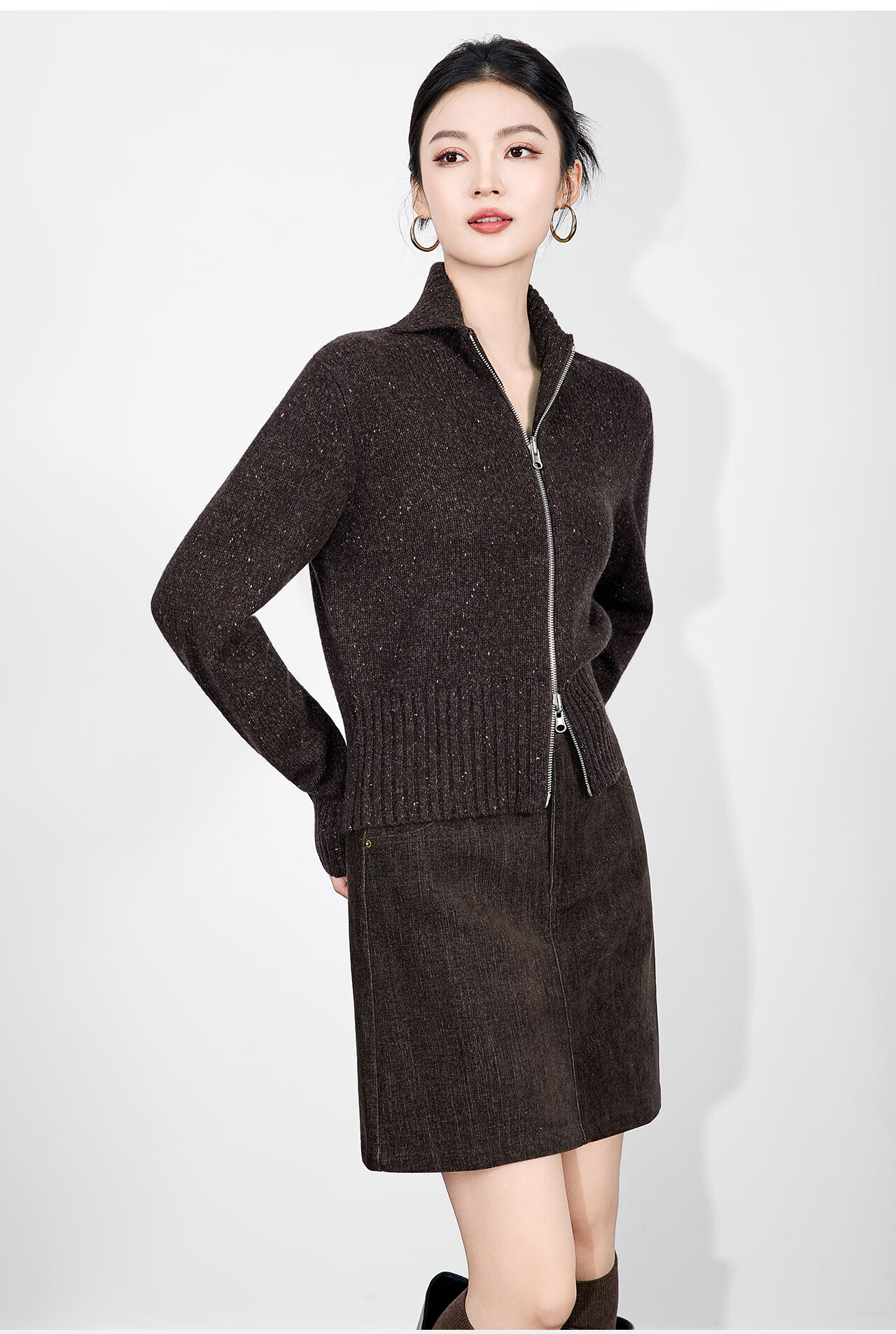 Pure wool three-dimensional densely woven colorful dot yarn lapel double zipper sweater jacket minimalist women's autumn and winter style dark gray S