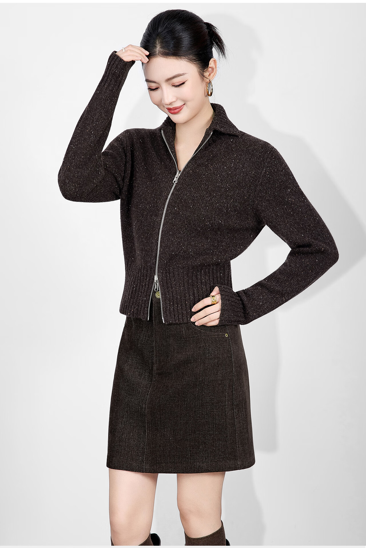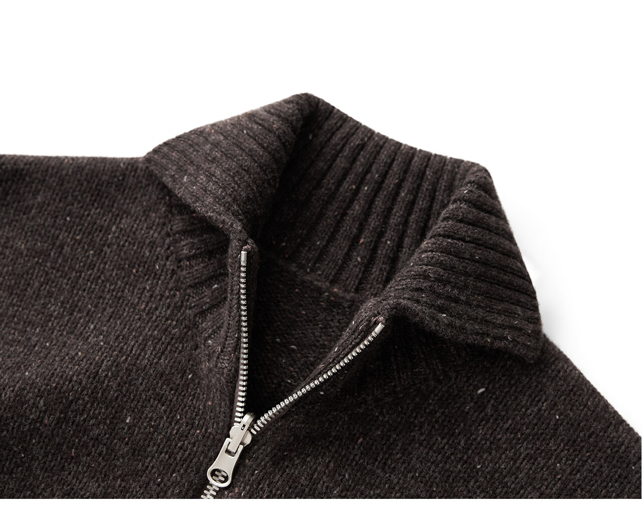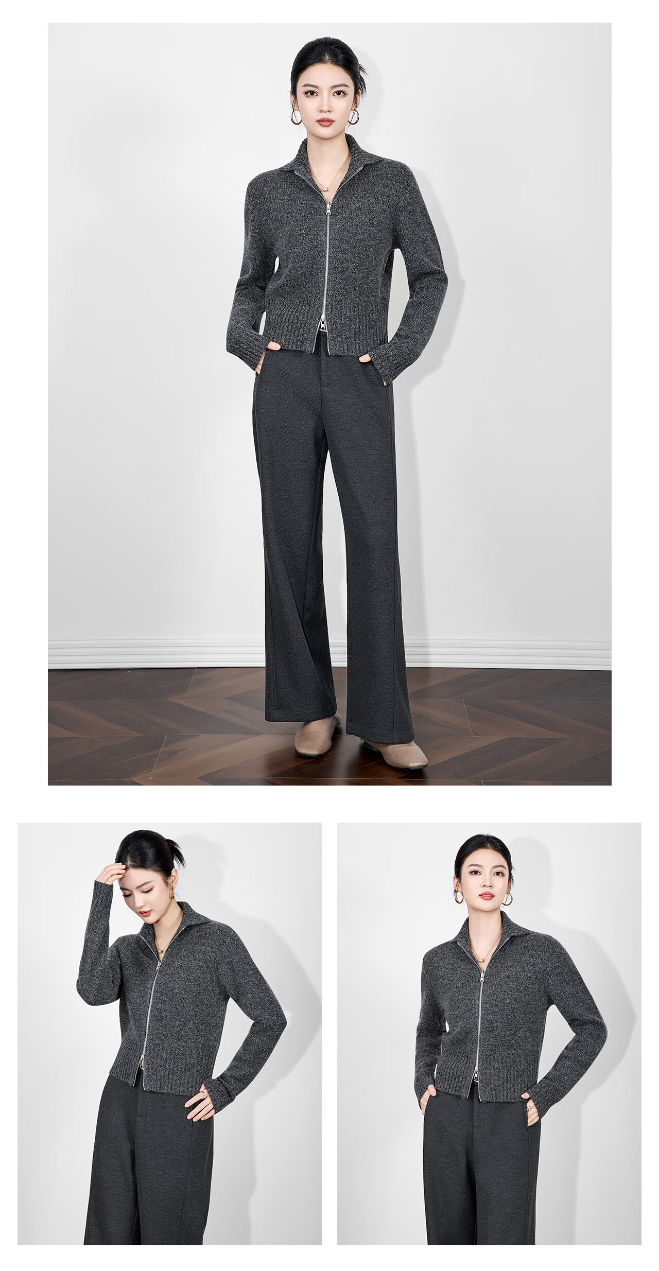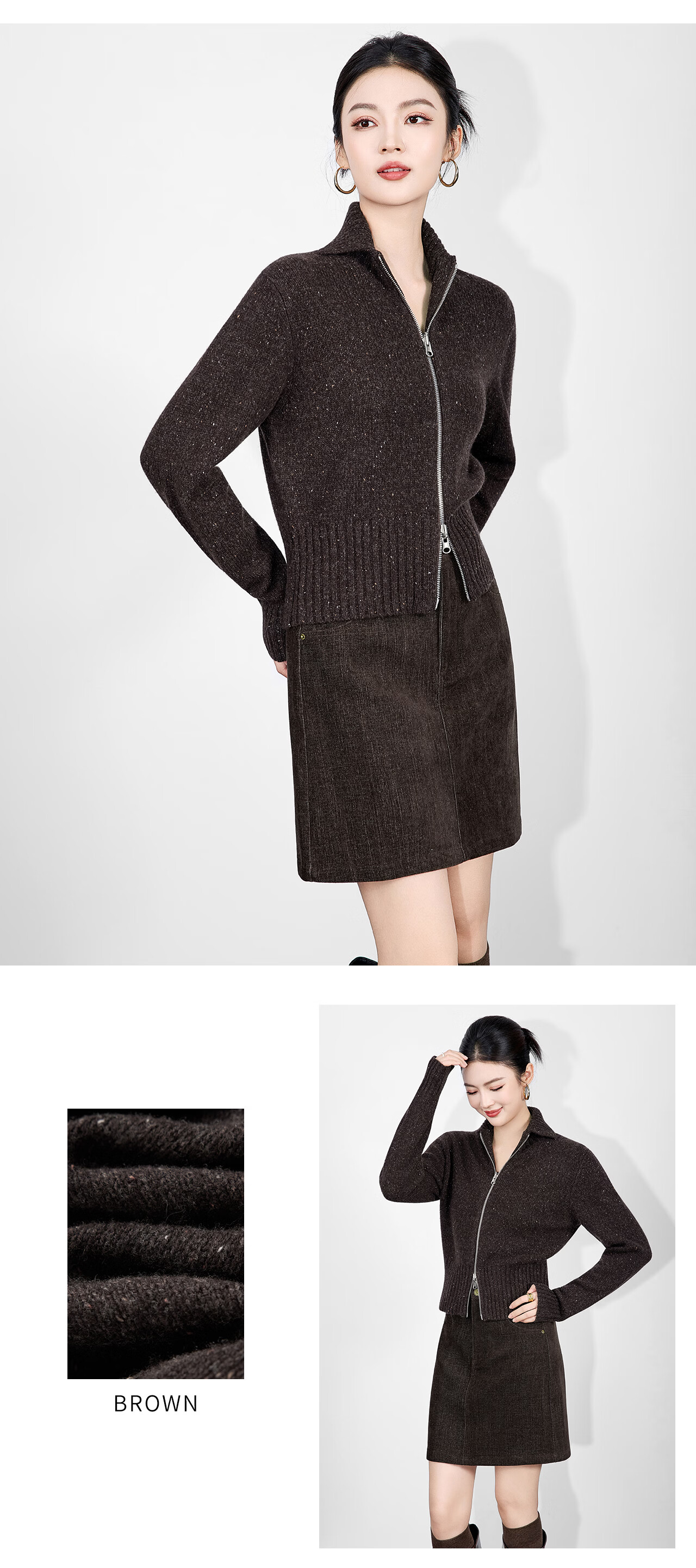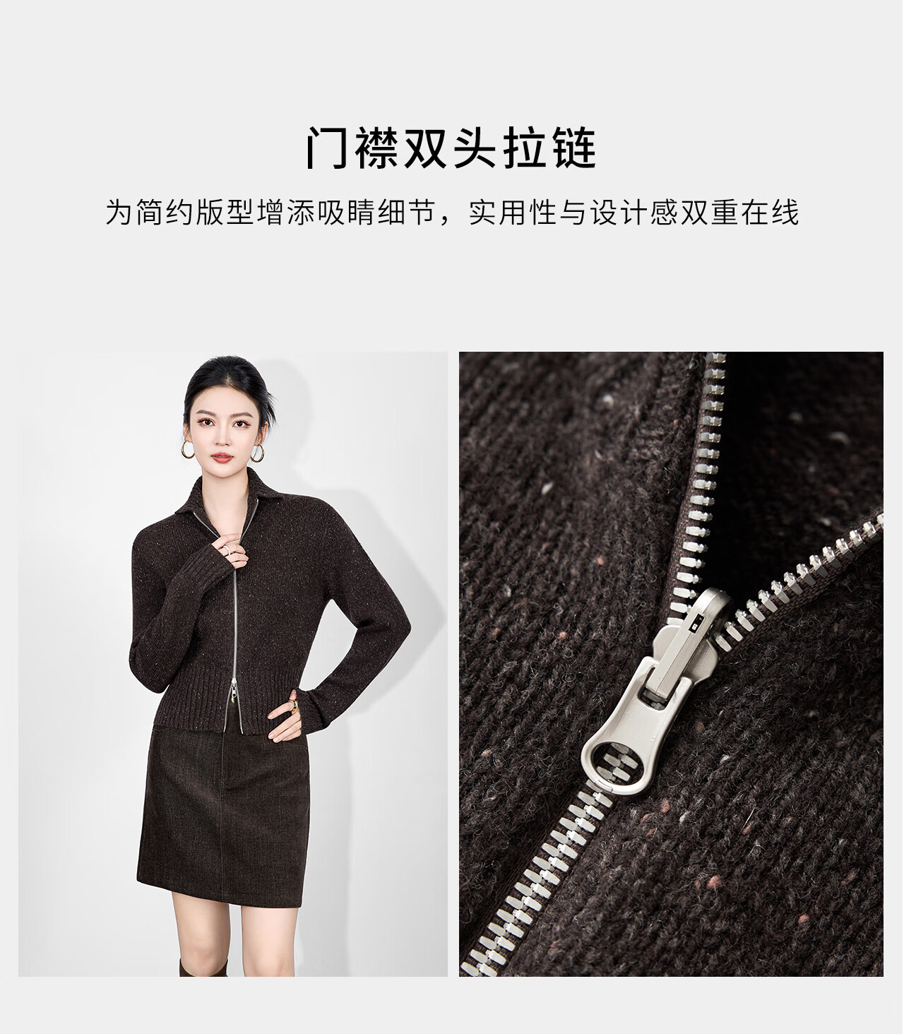 Pure wool three-dimensional densely woven colorful dot yarn lapel double zipper sweater jacket minimalist women's autumn and winter style dark gray S