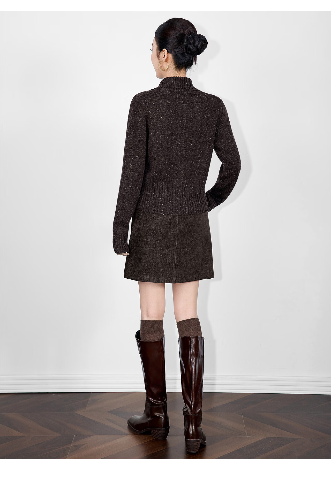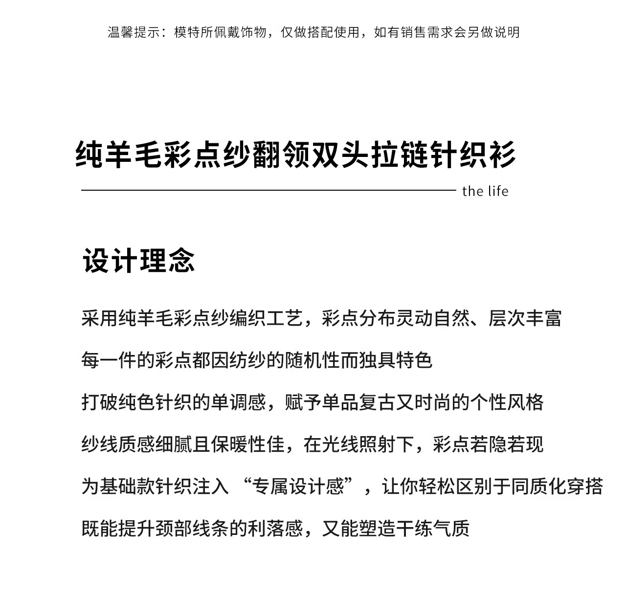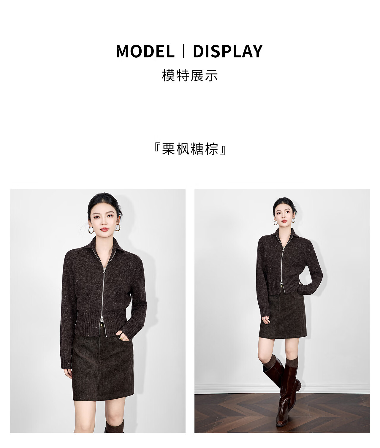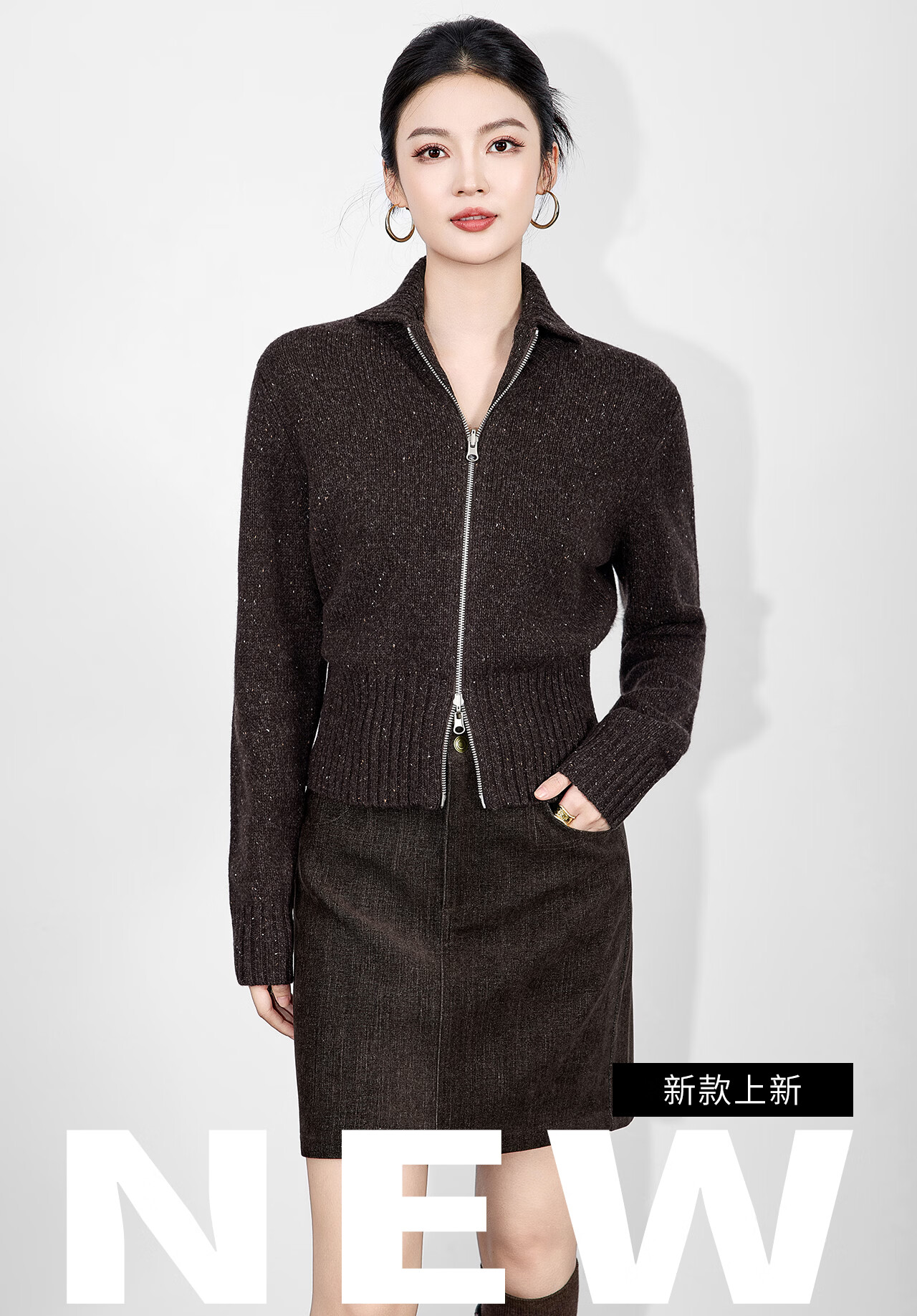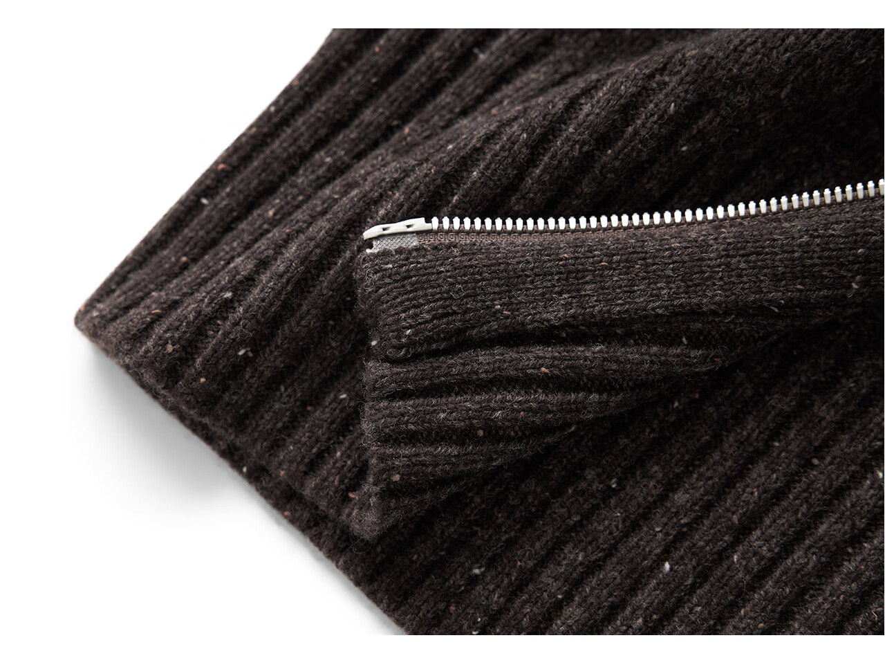 Pure wool three-dimensional densely woven colorful dot yarn lapel double zipper sweater jacket minimalist women's autumn and winter style dark gray S