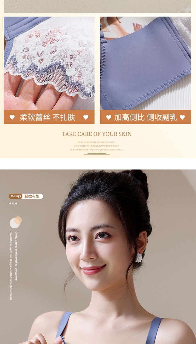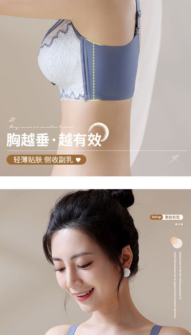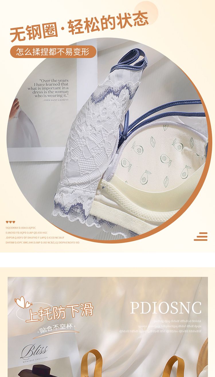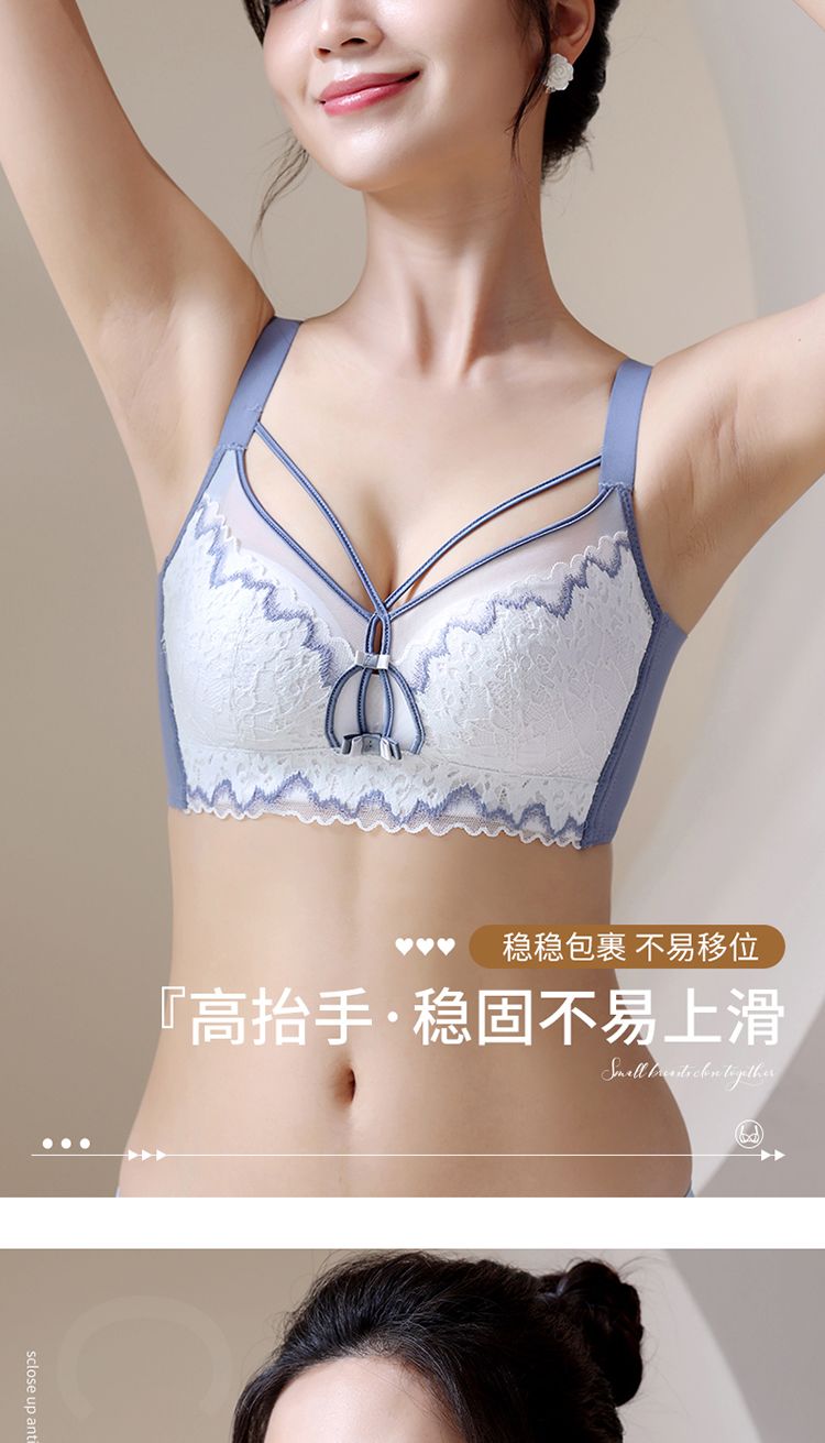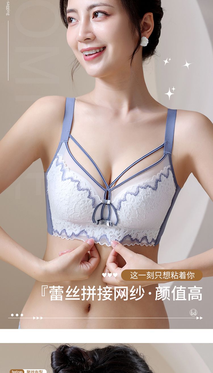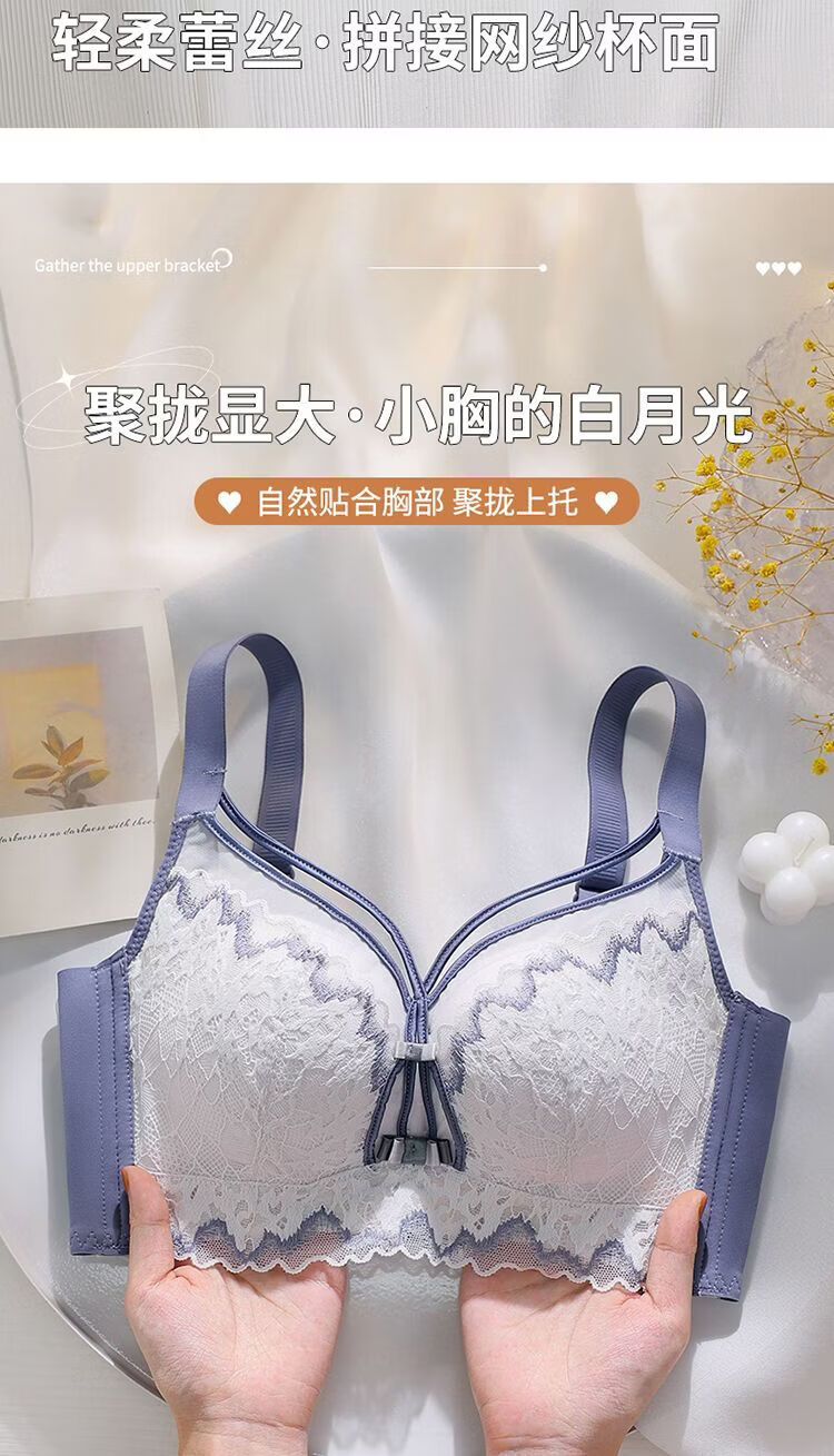 LangSha high-end underwear for women with small breasts, push-up and auxiliary breast adjustment bra, anti-sagging, no empty cup, top support, no wire bra, Magic Blue 70A 32-medium thick cup